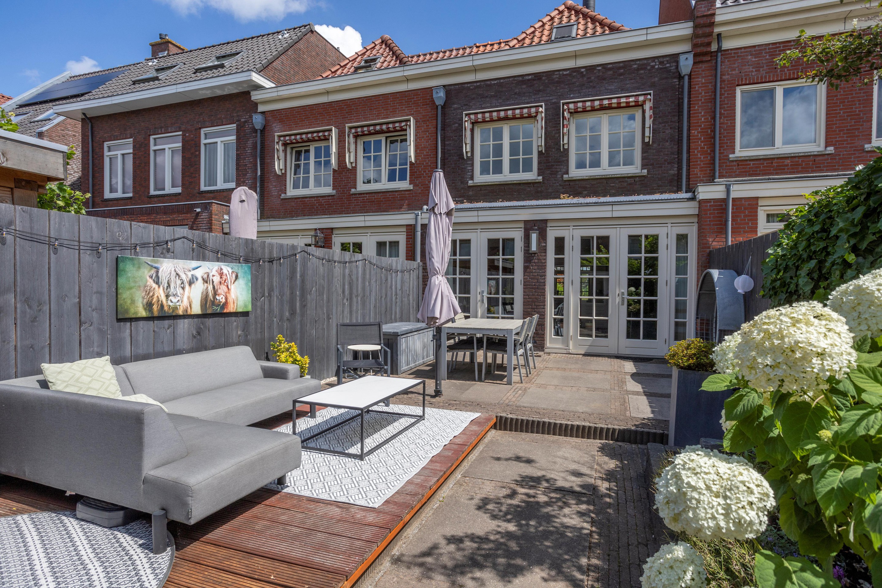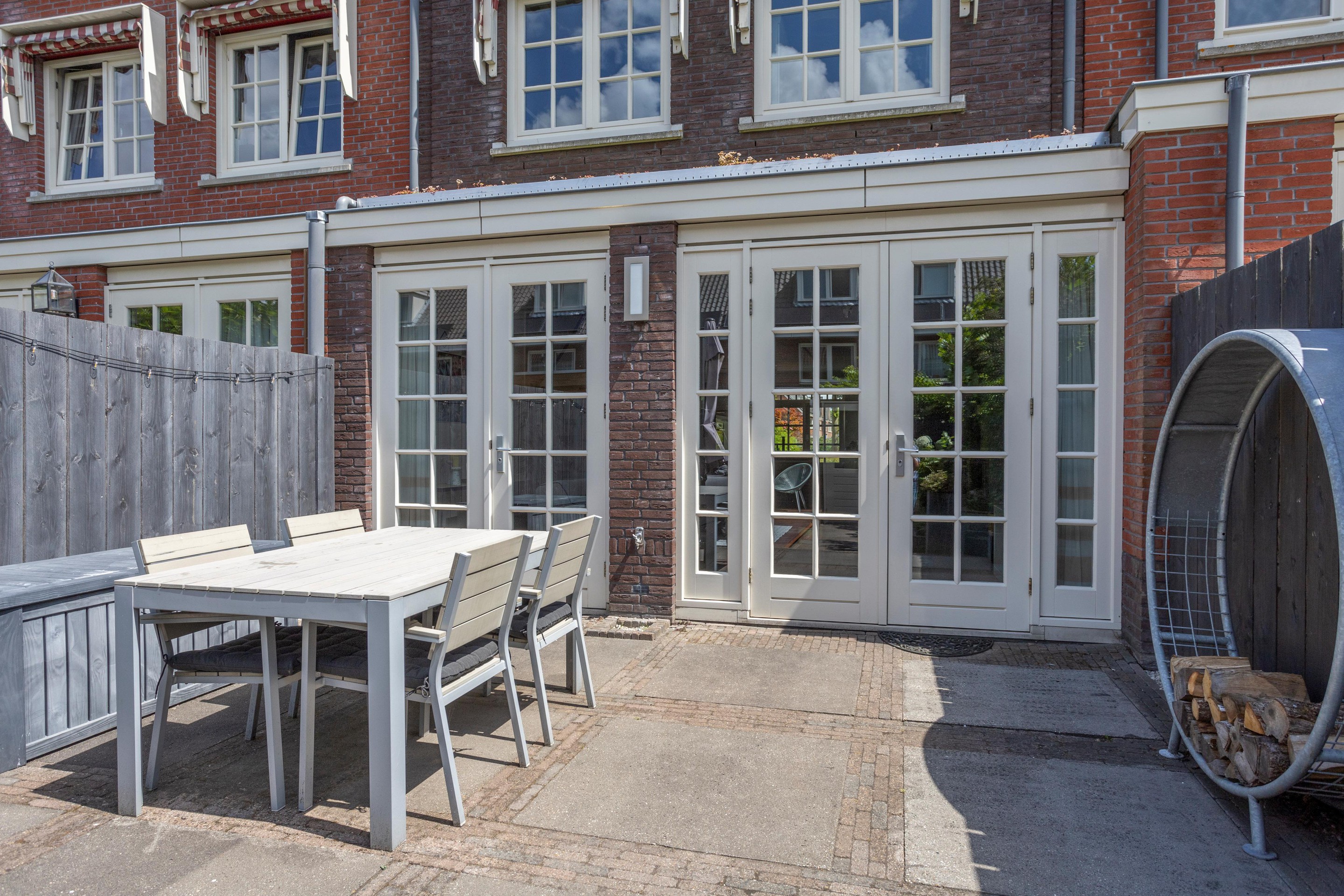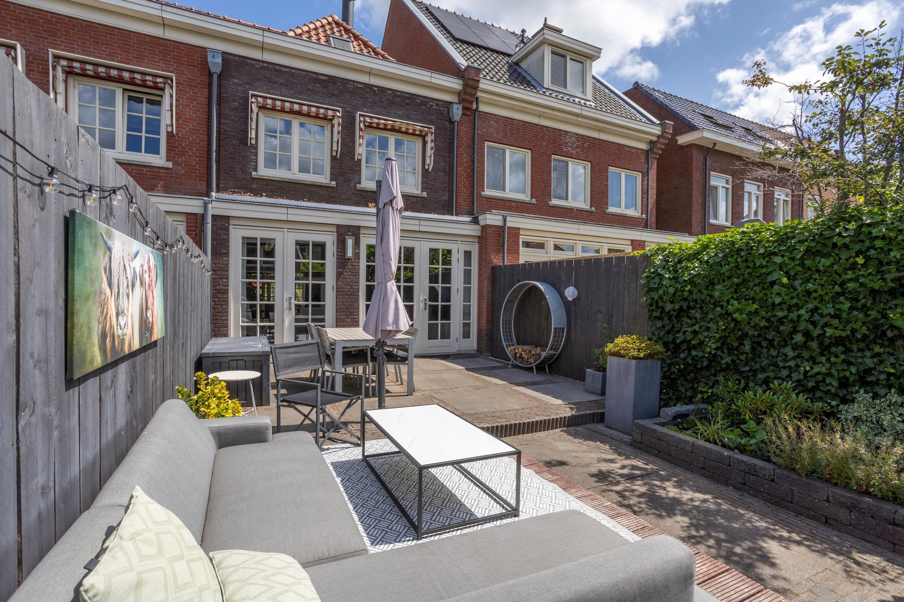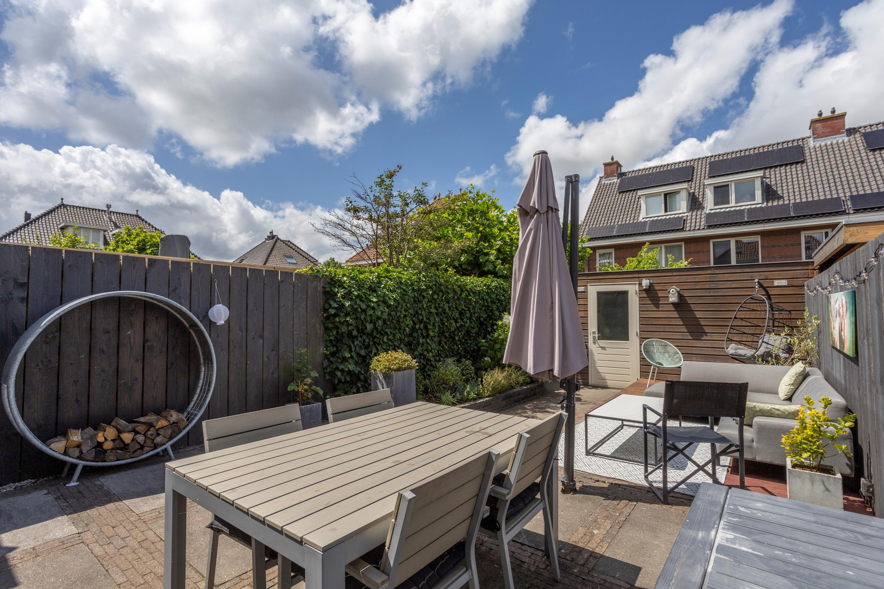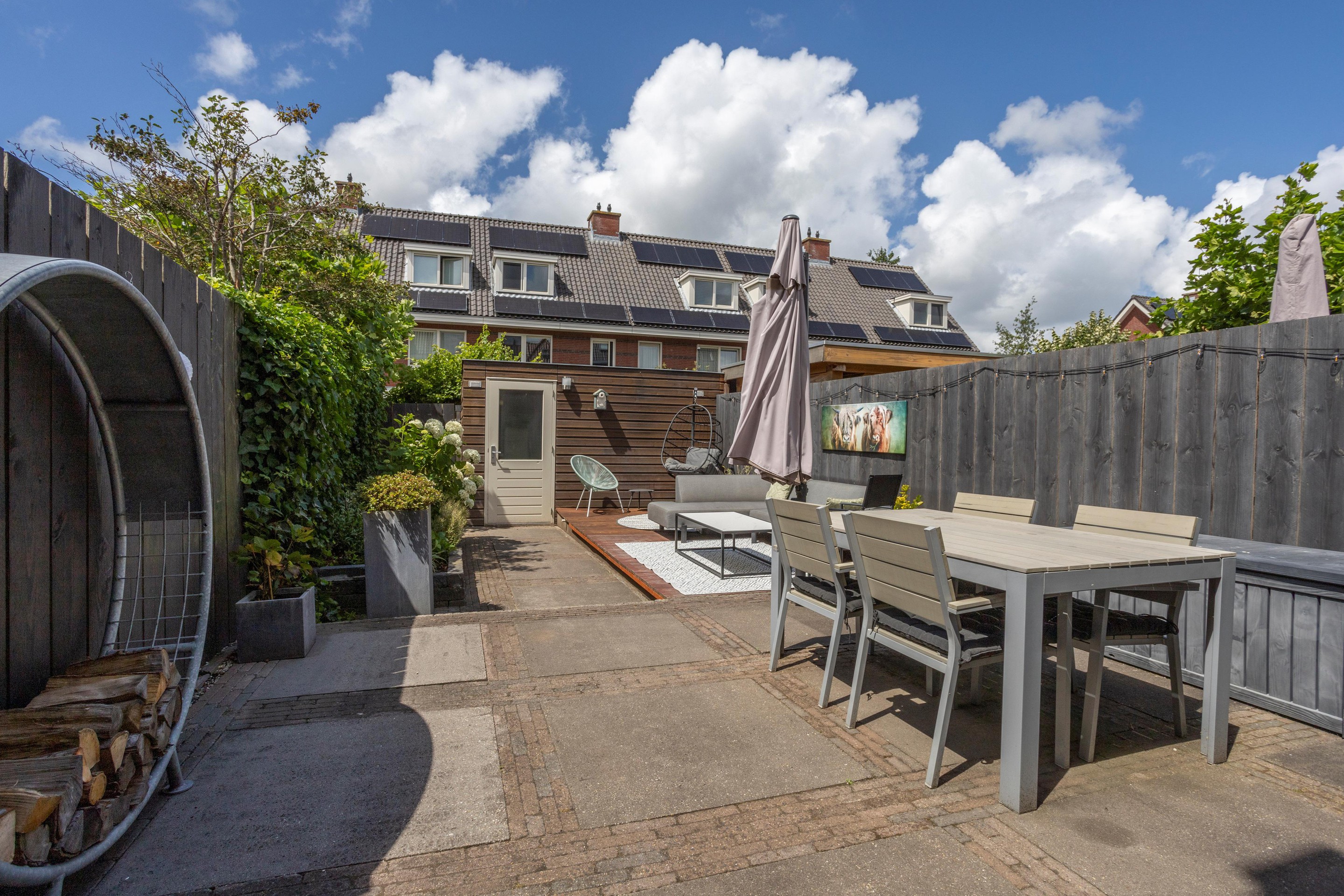 De achtertuin is gelegen op het zonnige zuidwesten en hier zit je heerlijk, met of zonder de grote parasol uit. De tuin heeft een houten berging met elektriciteit. Ook fijn dat er een achterom aanwezig is.