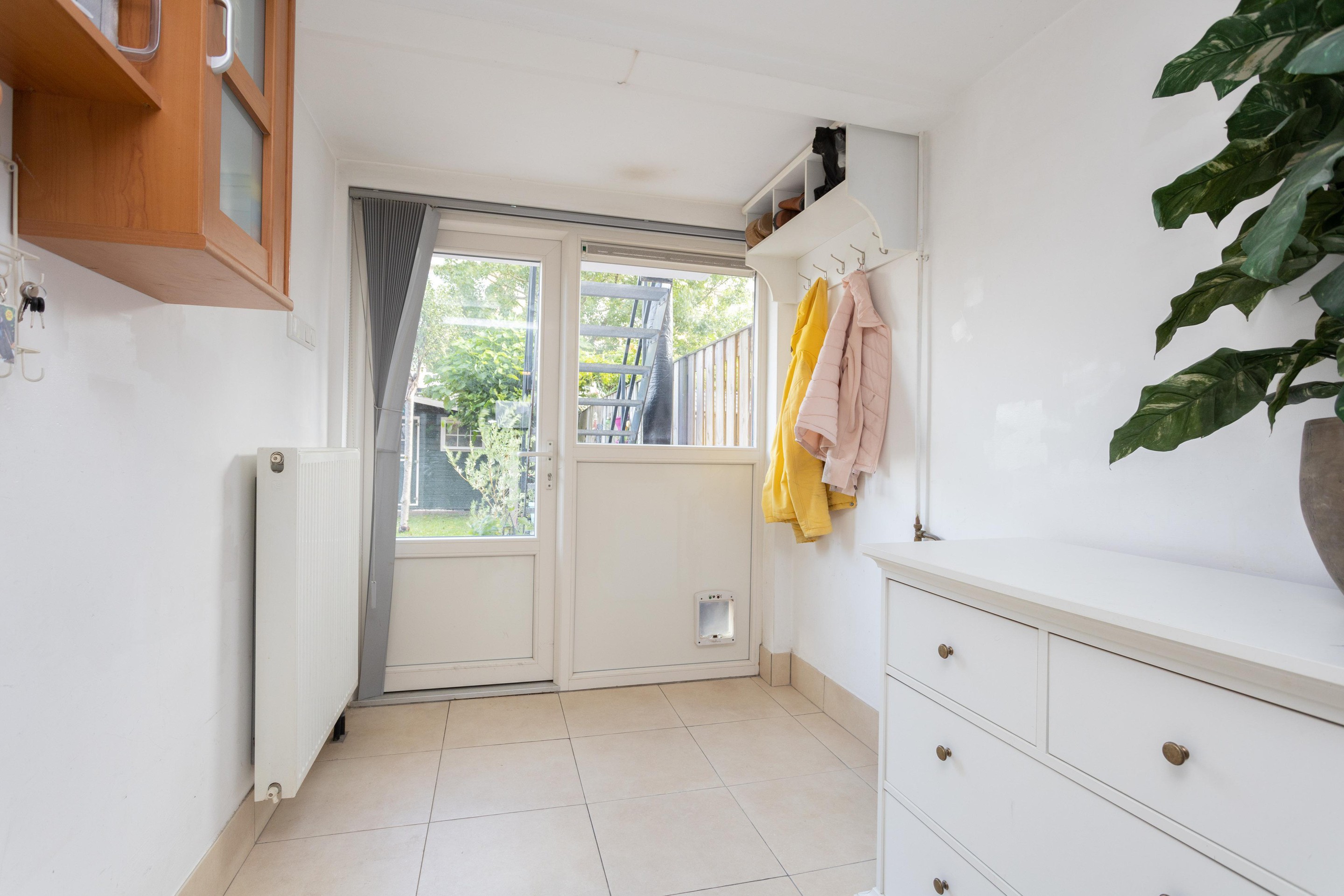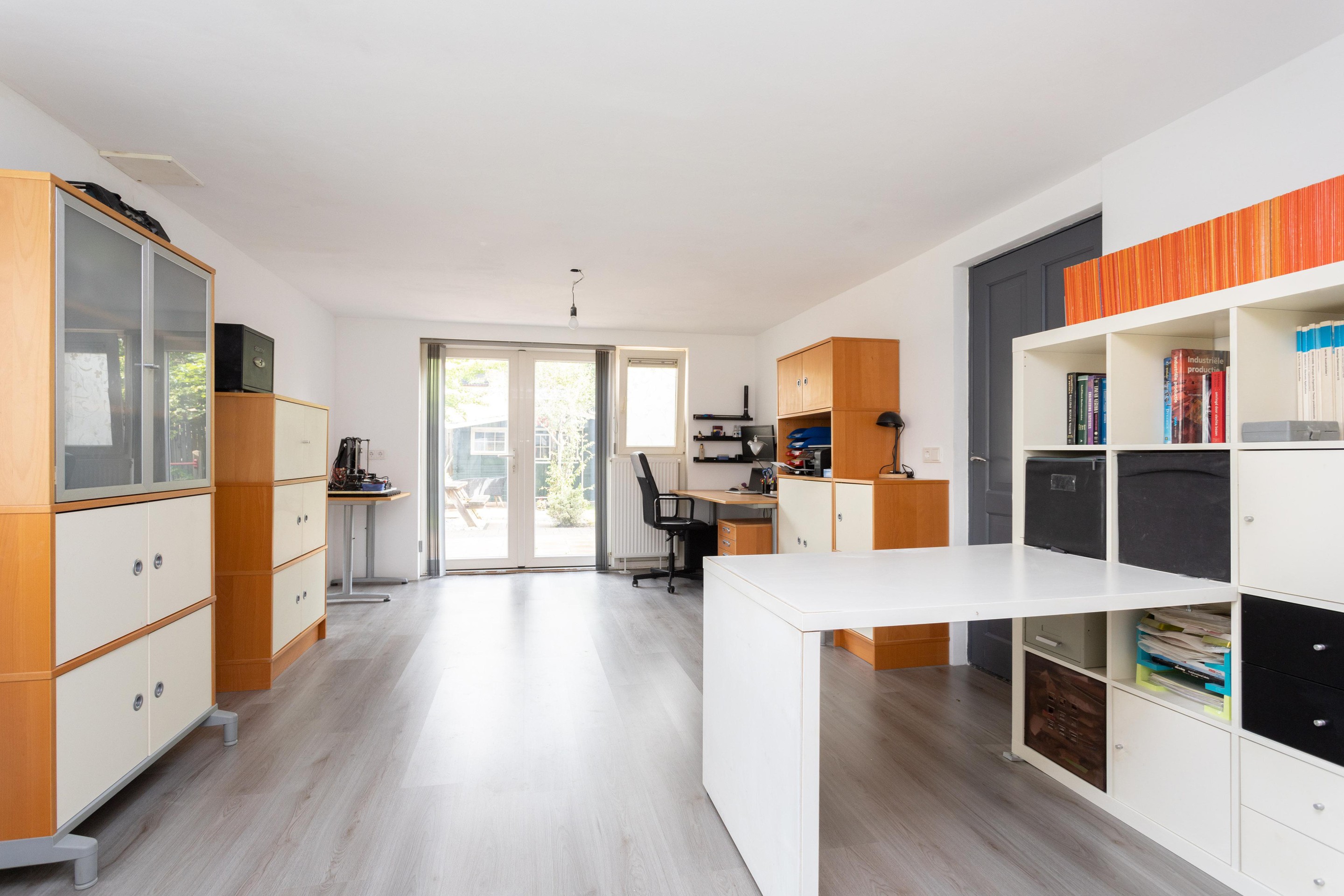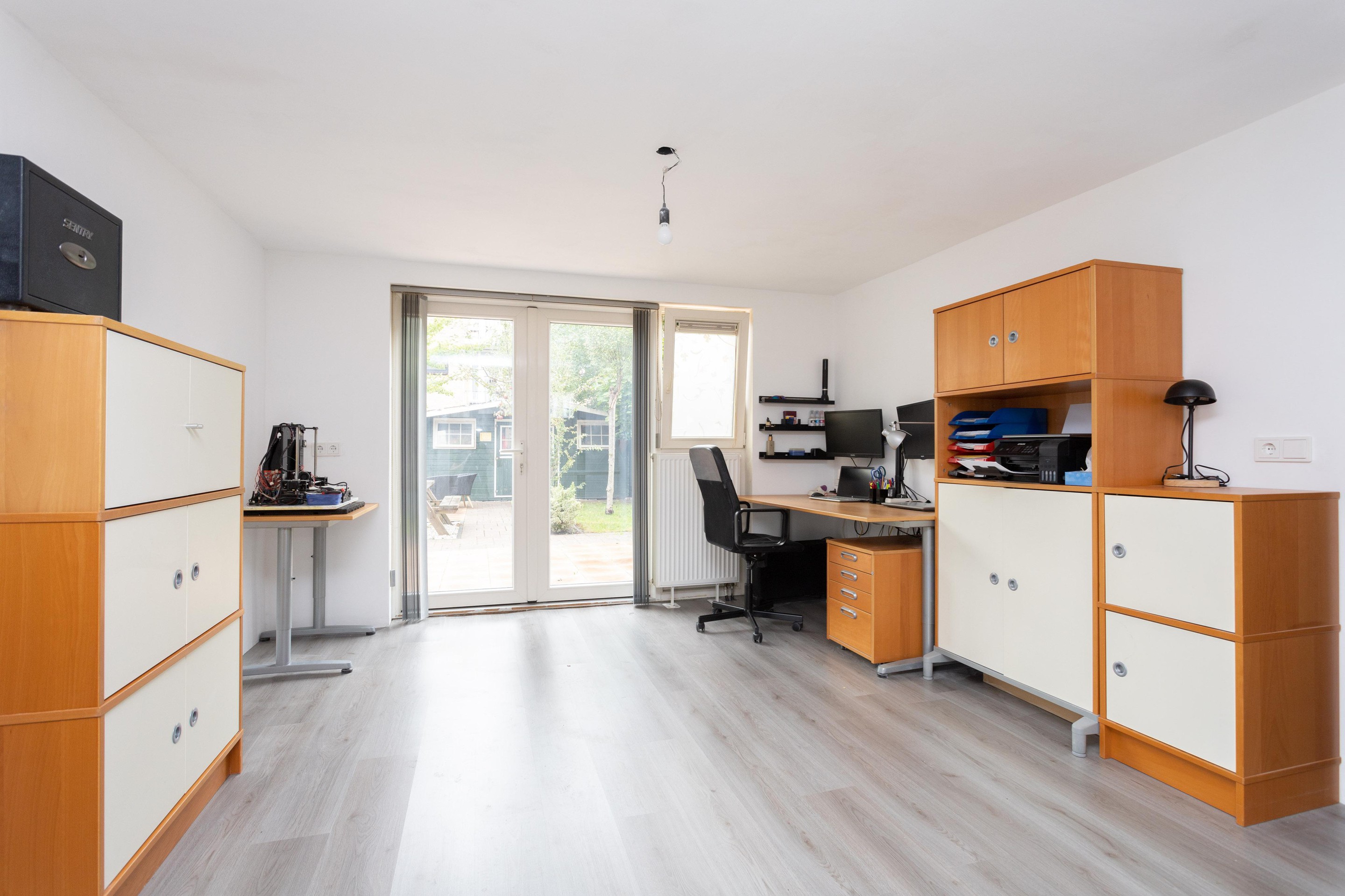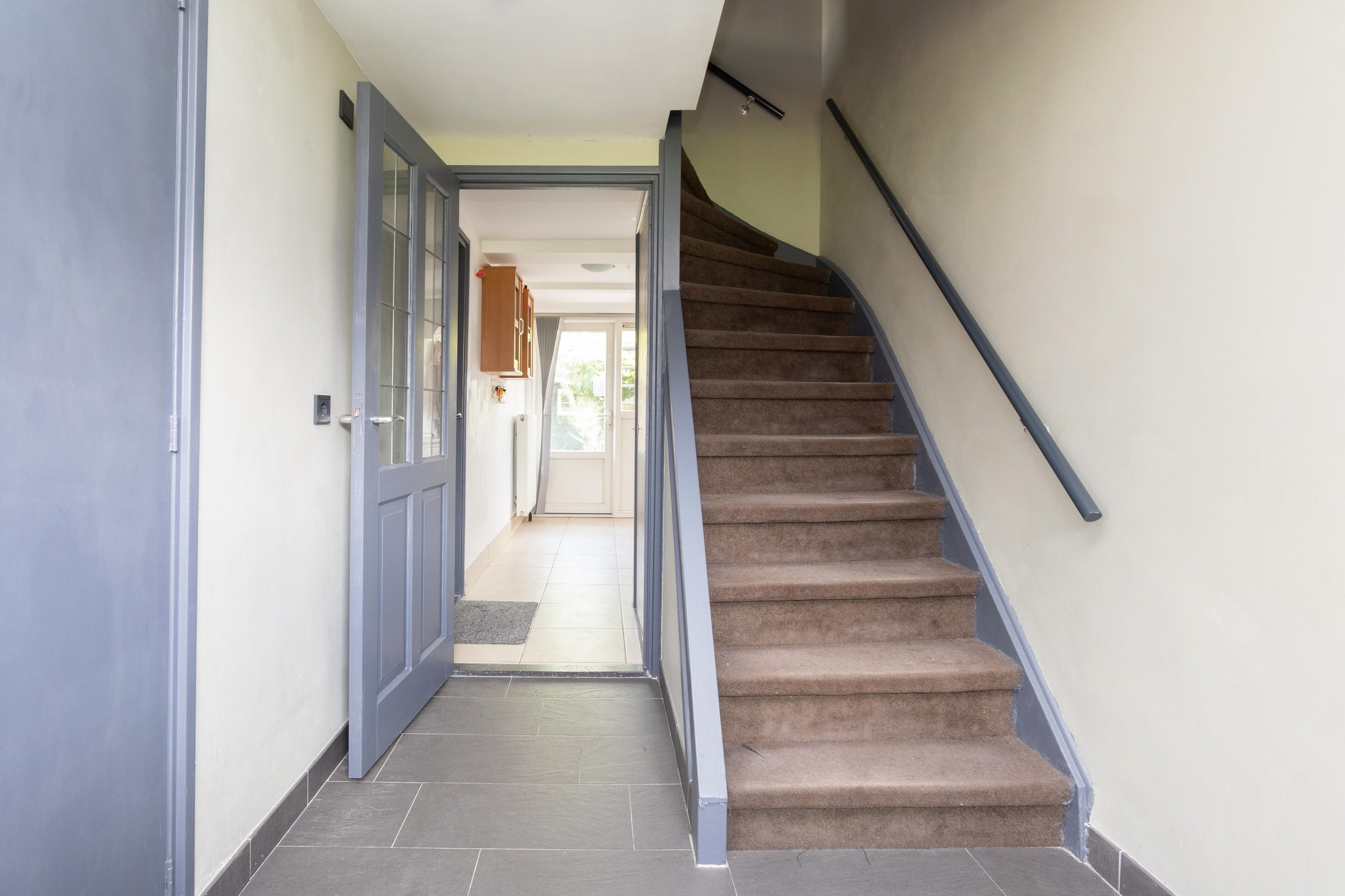 Entree woning; ruime entree met nieuwe meterkast (3 fase) en toegang tot een ruime werkkamer, ideale ruimte om in te richten als thuiskantoor. Vanuit deze kamer is ook de achtertuin te bereiken middels openslaande deuren. Tot slot op deze verdieping een ruime bijkeuken met wasmachineaansluiting.