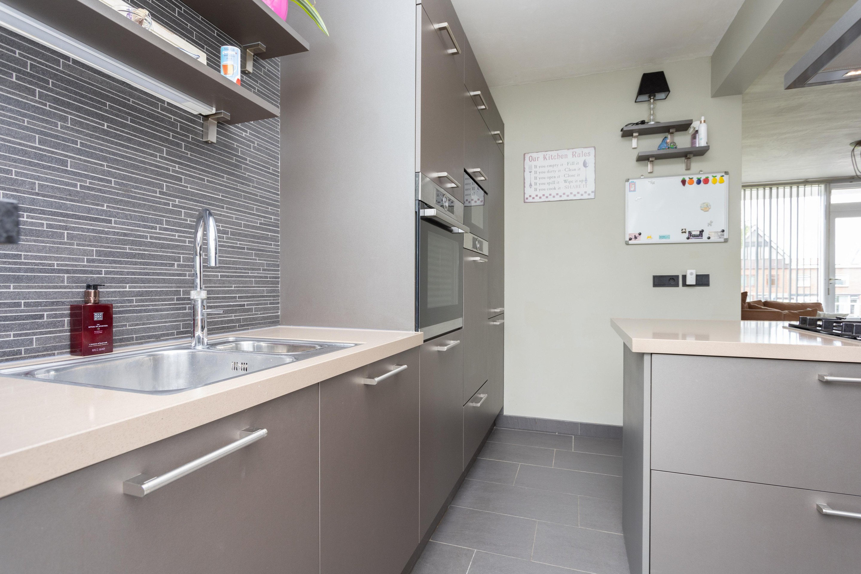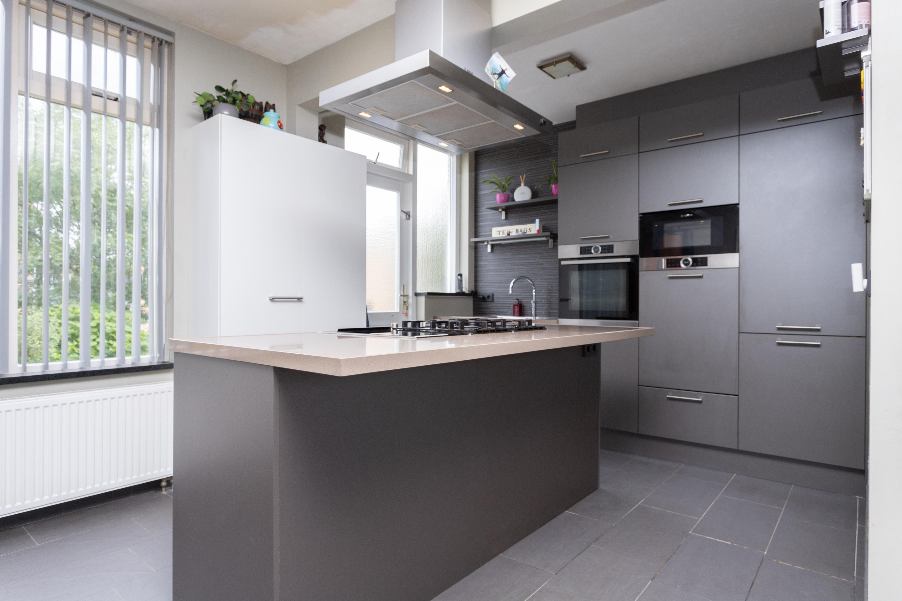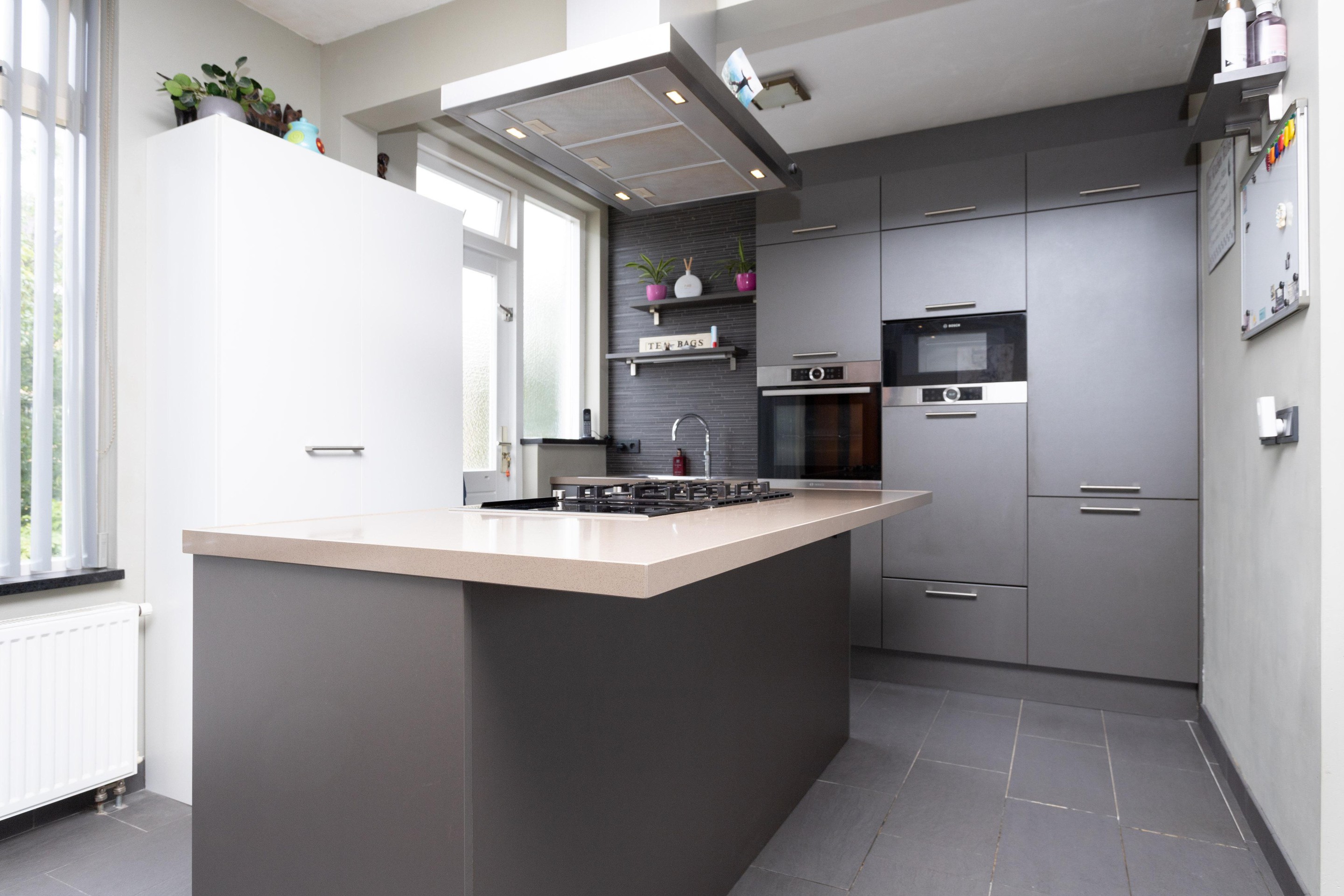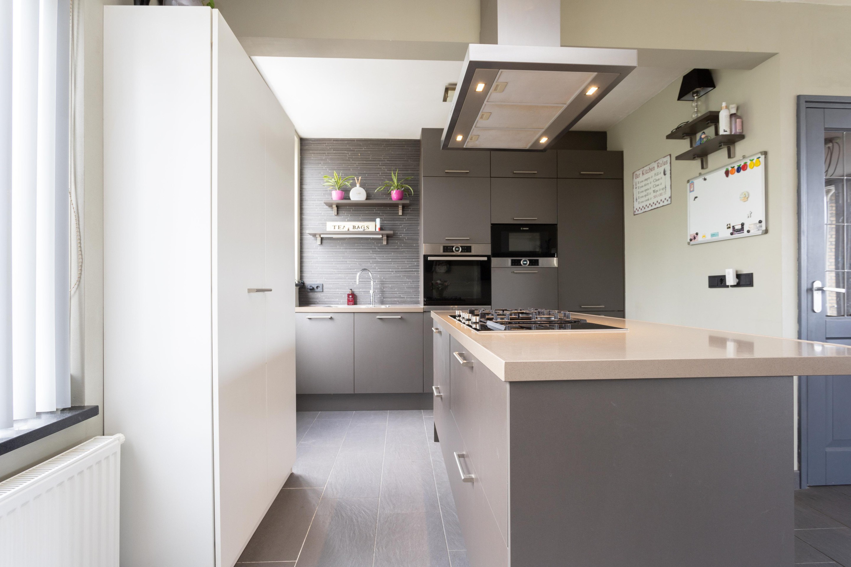 Entree woning; ruime entree met nieuwe meterkast (3 fase) en toegang tot een ruime werkkamer, ideale ruimte om in te richten als thuiskantoor. Vanuit deze kamer is ook de achtertuin te bereiken middels openslaande deuren. Tot slot op deze verdieping een ruime bijkeuken met wasmachineaansluiting.
