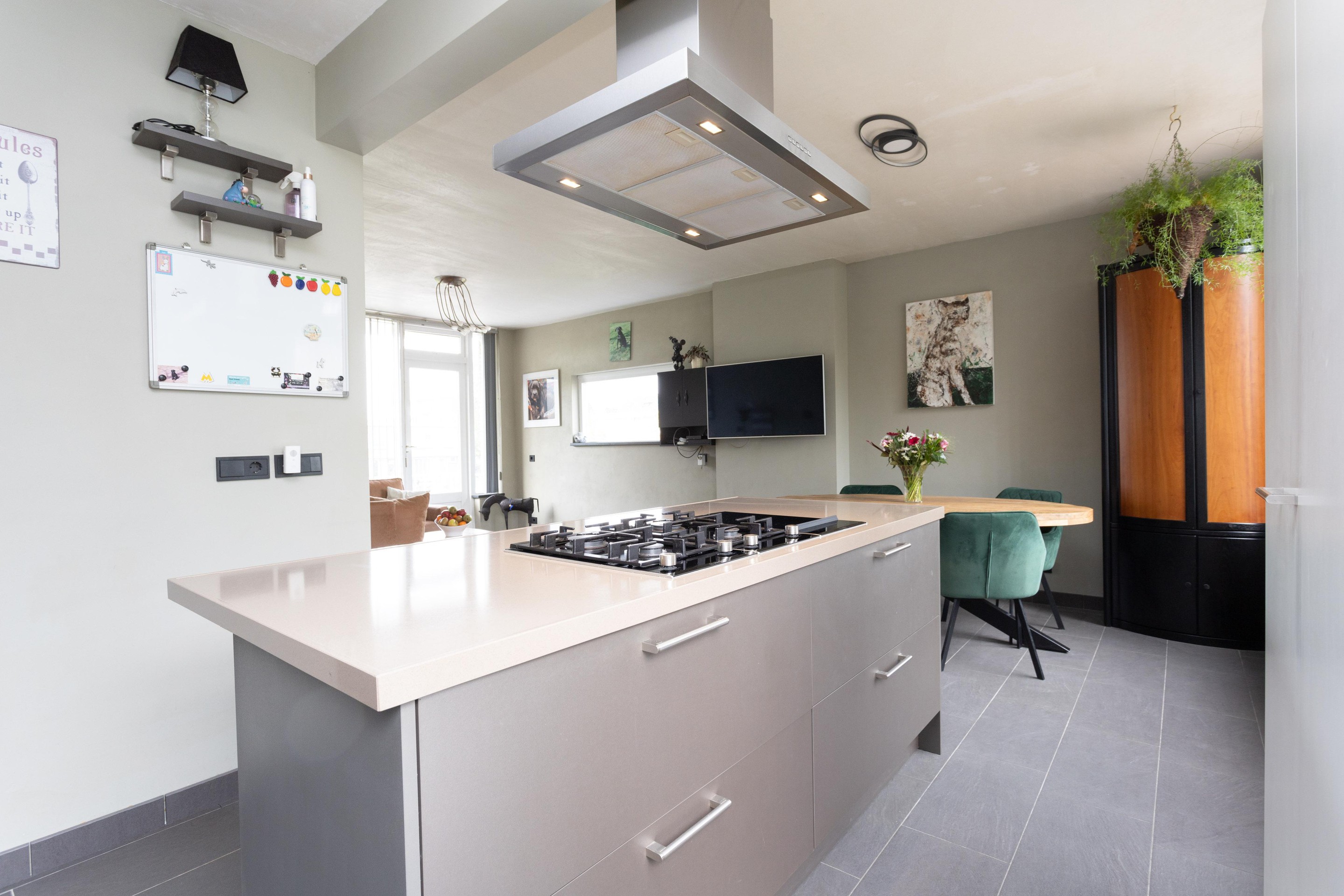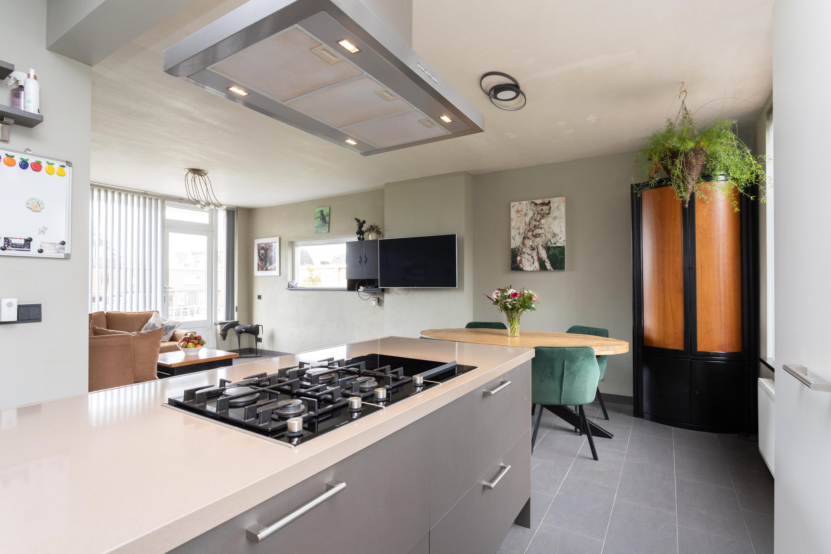 Wat een prachtige verdieping is dit. De woonkamer is over de gehele lengte en is voorzien van plavuizen met vloerverwarming. Aan de voorzijde van de woonkamer is nog een groot balkon, deze biedt prachtig zicht op de omgeving. Aan de achterzijde is de luxe open keuken met eiland gelegen. Het ontbreekt u hier aan helemaal niets. Quooker, 4 pits gaskookplaat + grill, oven, magnetron en een vaatwasser. Het geheel is afgewerkt met een composiet blad. Ook is er op deze verdieping nog een toilet.