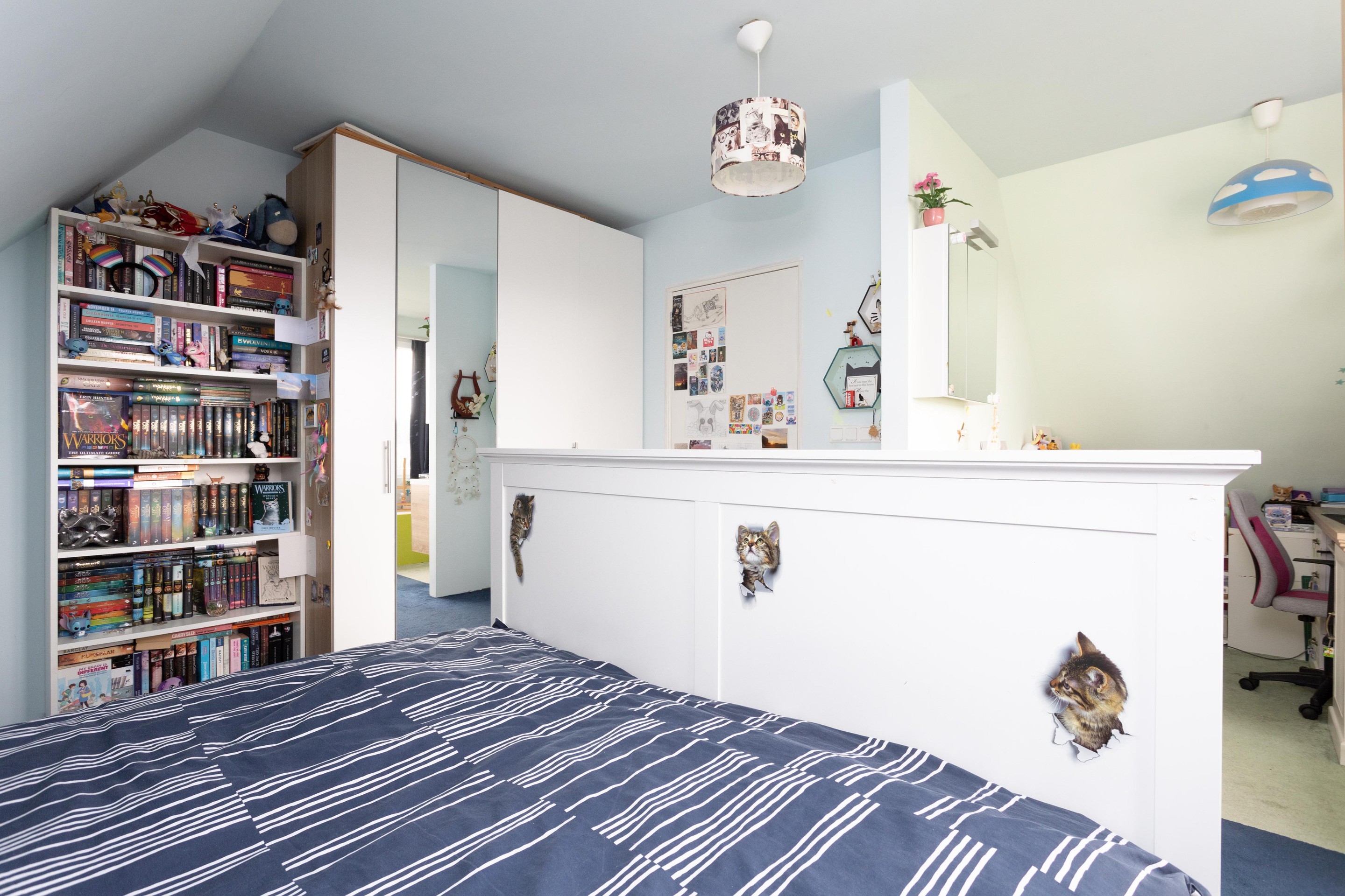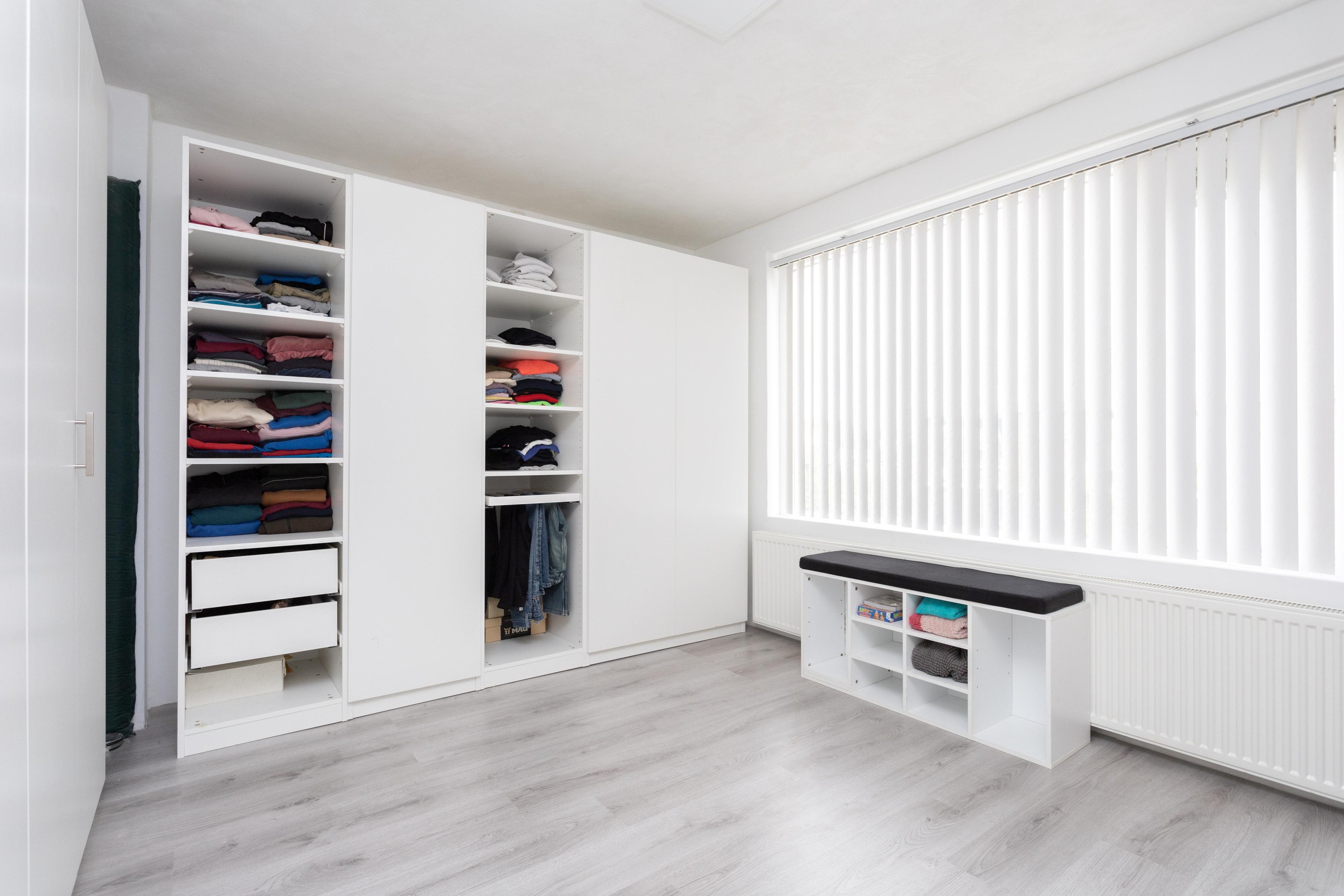 Een verdieping met 2 royale slaapkamers. De slaapkamers zijn voorzien van kunststof kozijnen. Kenmerkend voor deze verdieping is zeker de hoeveelheid bergruimte, deze is over de gehele lengte van de woning.