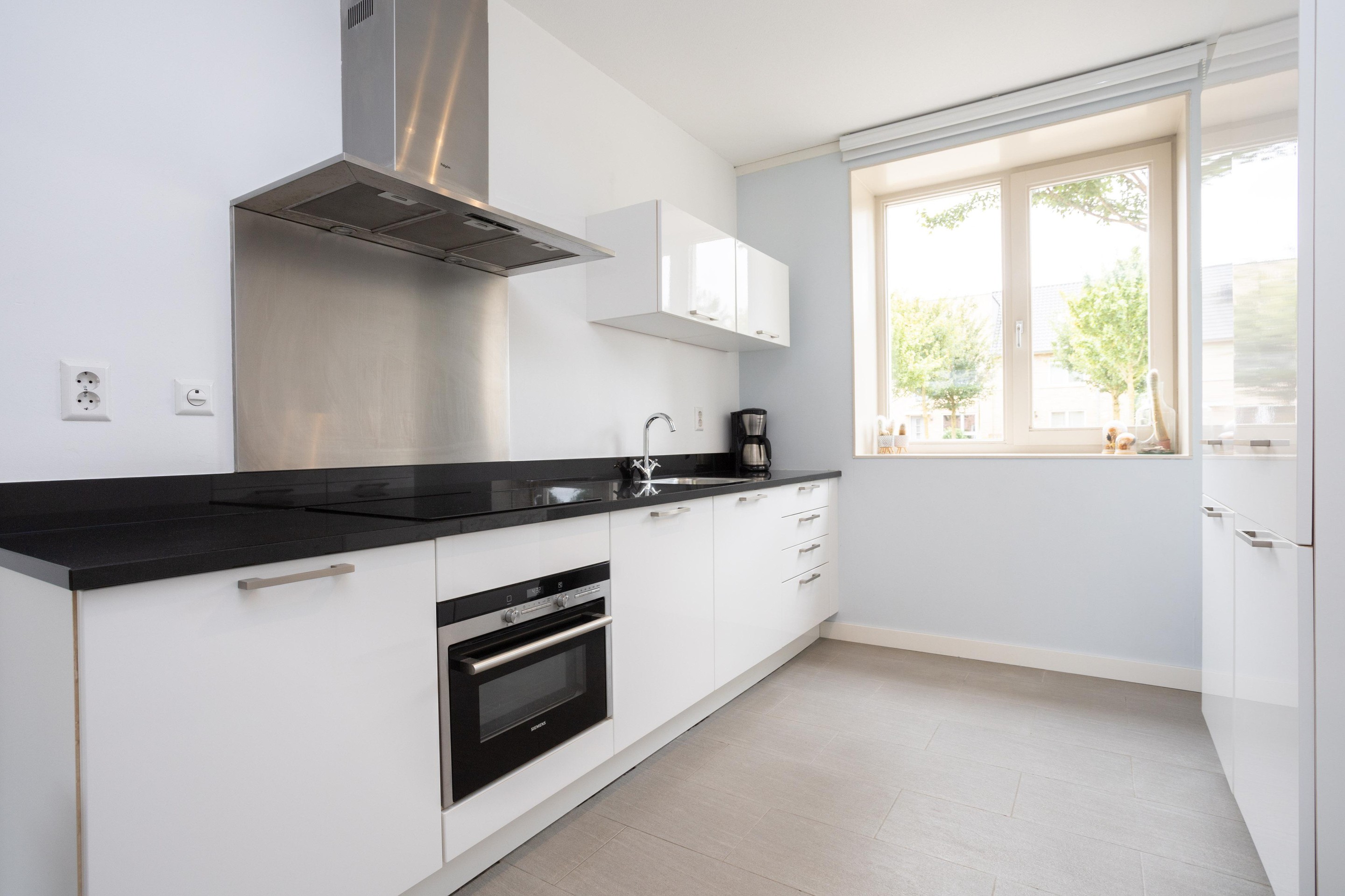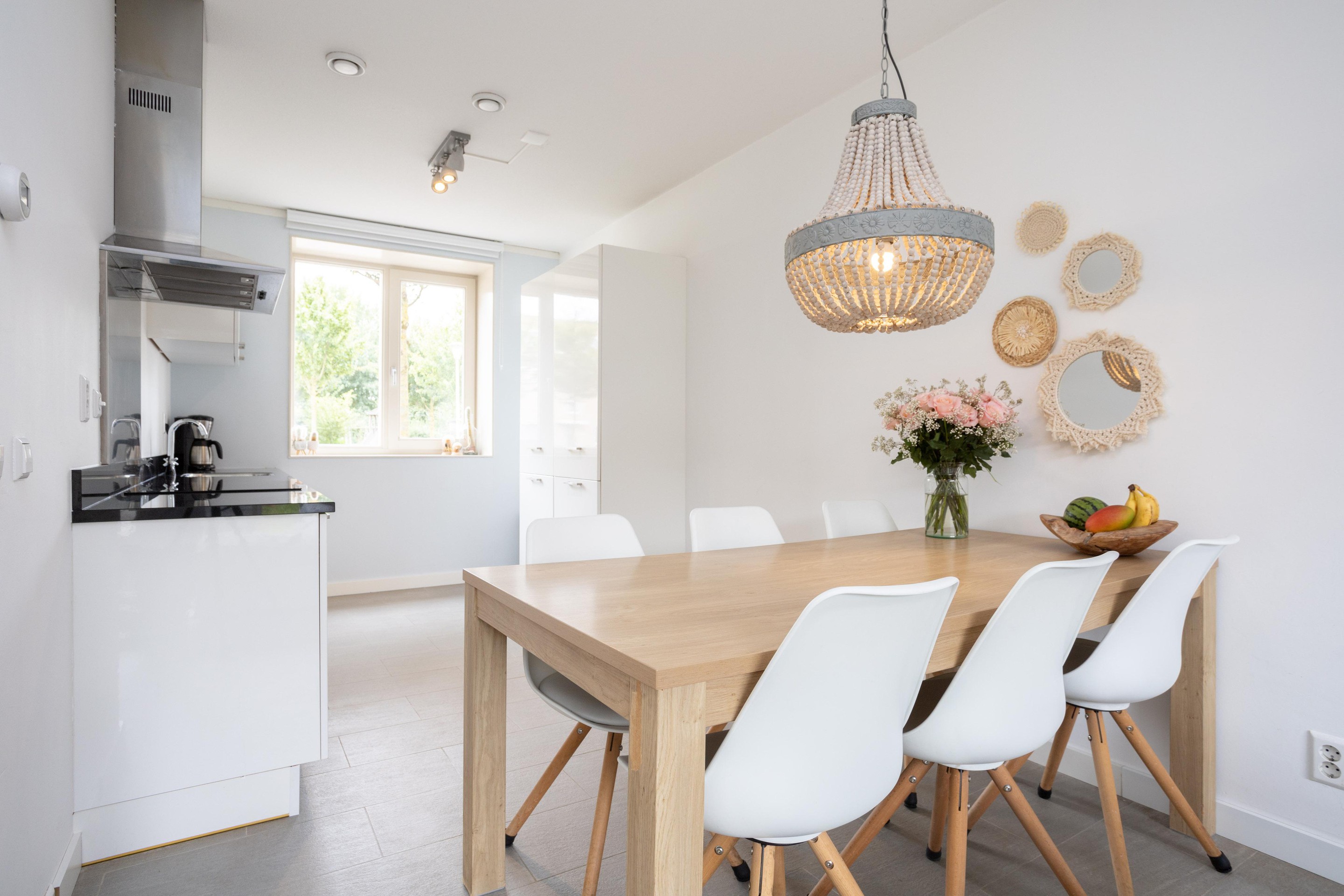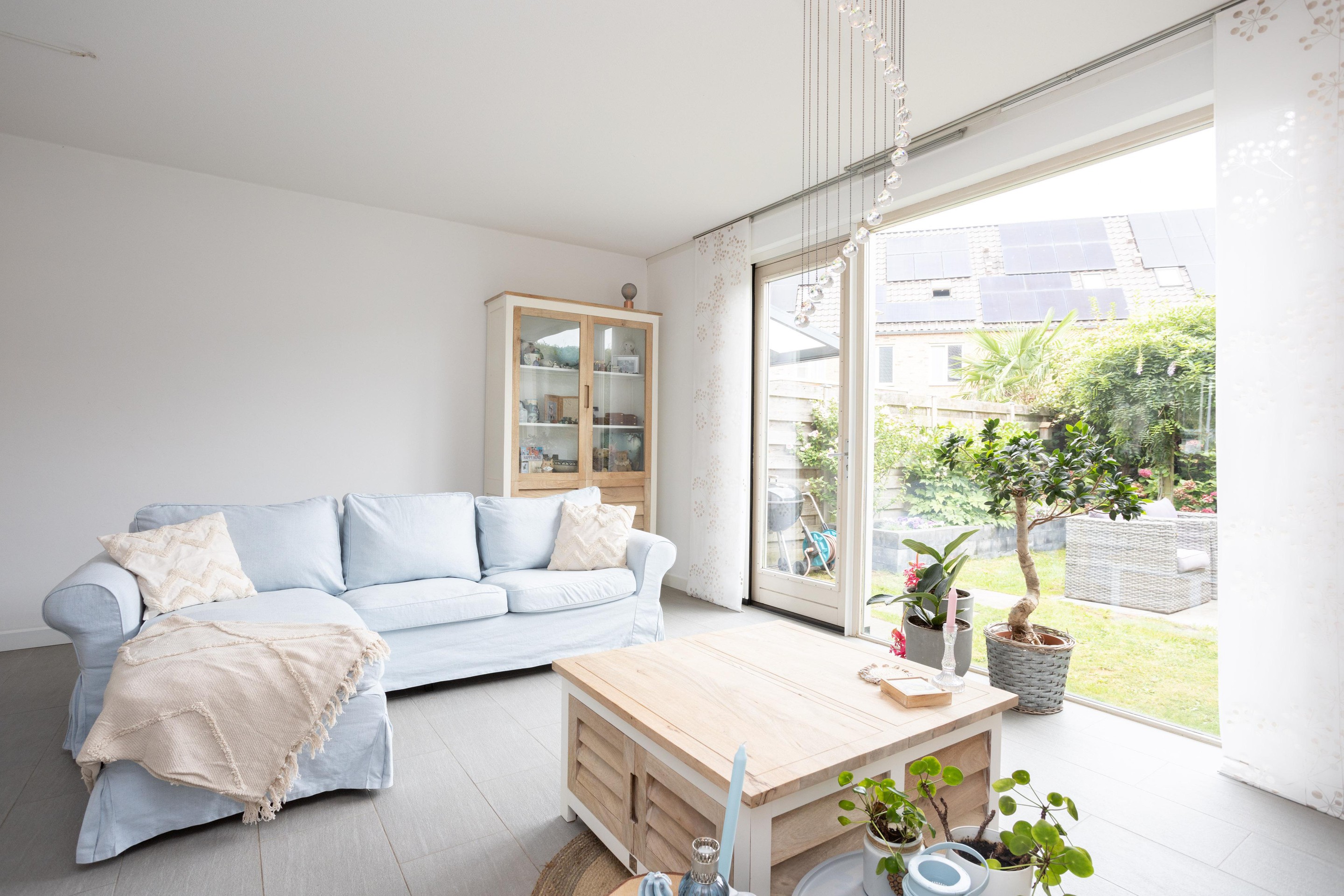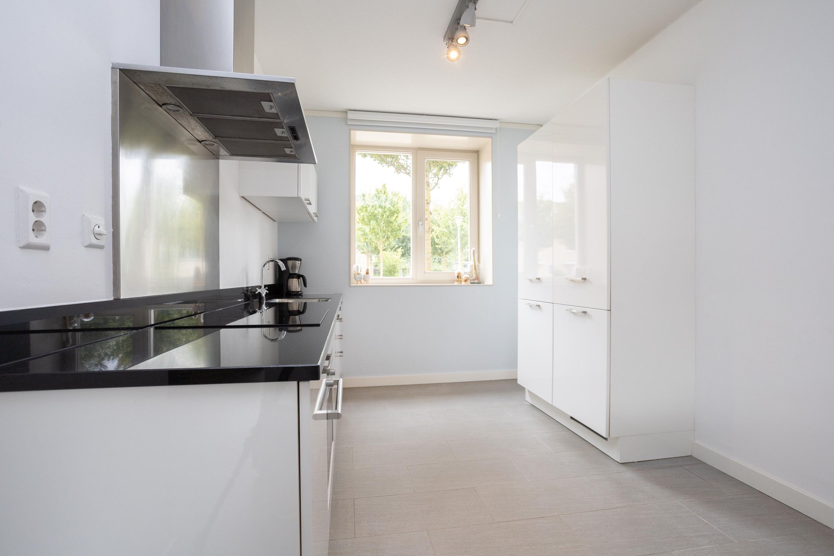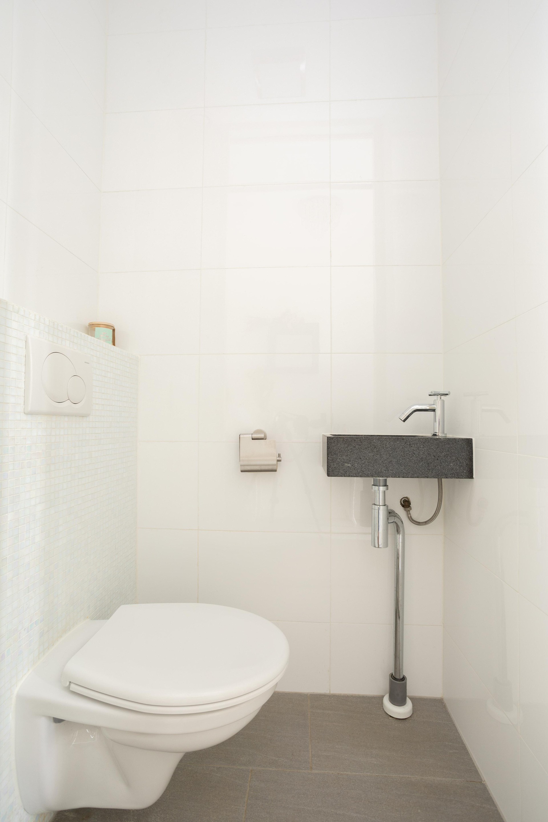 Entree, ruime gang met toilet en fonteintje en meterkast. Toegang tot de tuingerichte woonkamer met aan de voorzijde de open keuken. Bij binnenkomst vallen direct de grote ramen op, heerlijk al dat licht. De groten glazen pui aan de achterzijde haalt buiten naar binnen. Op de vloer liggen prachtige plavuizen met vloerverwarming, nooit last van koude voeten, en in de zomer koelt het warmtepomp systeem de vloer naar koelere temperaturen. Zo is er het gehele jaar door een aangename binnen temperatuur. De keuken is voorzien van een inductie kookplaat, combimagnetron, vaatwasser en een koelkast met vriezer. Het geheel is afgewerkt met een composiet blad.