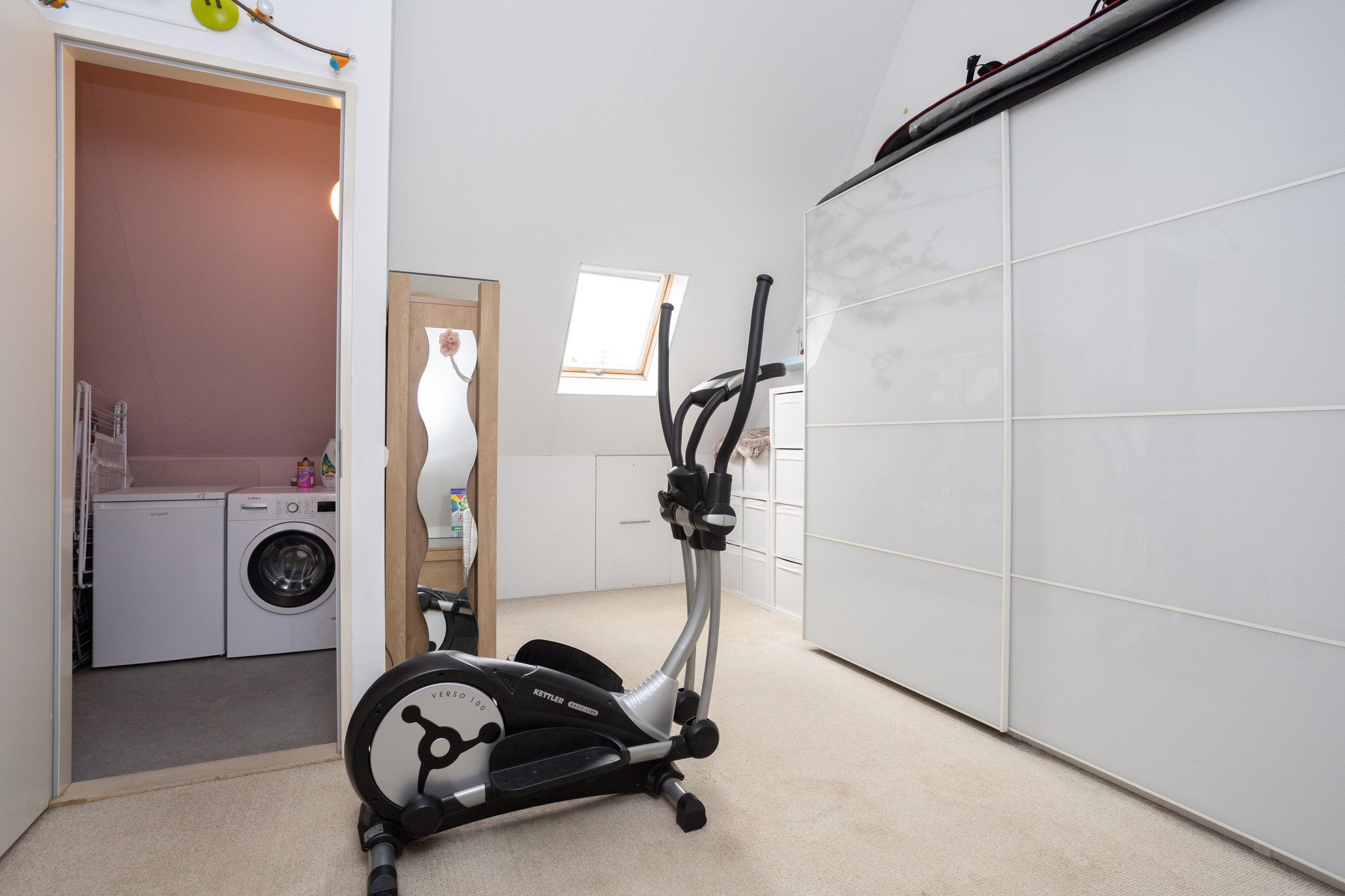 Deze verdieping is volledig open, hier kan door het zetten van een wand een extra kamer worden gemaakt met eventueel een vliering. Fijn dat het er al een dakraam aanwezig is. Tot slot op deze verdieping een aparte ruimte met opstelling van de warmtepomp en de wasmachine.