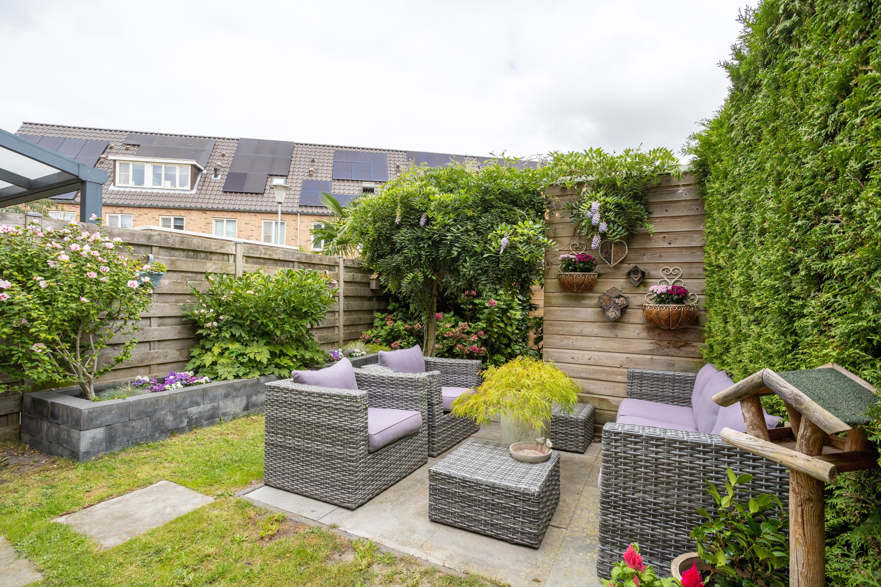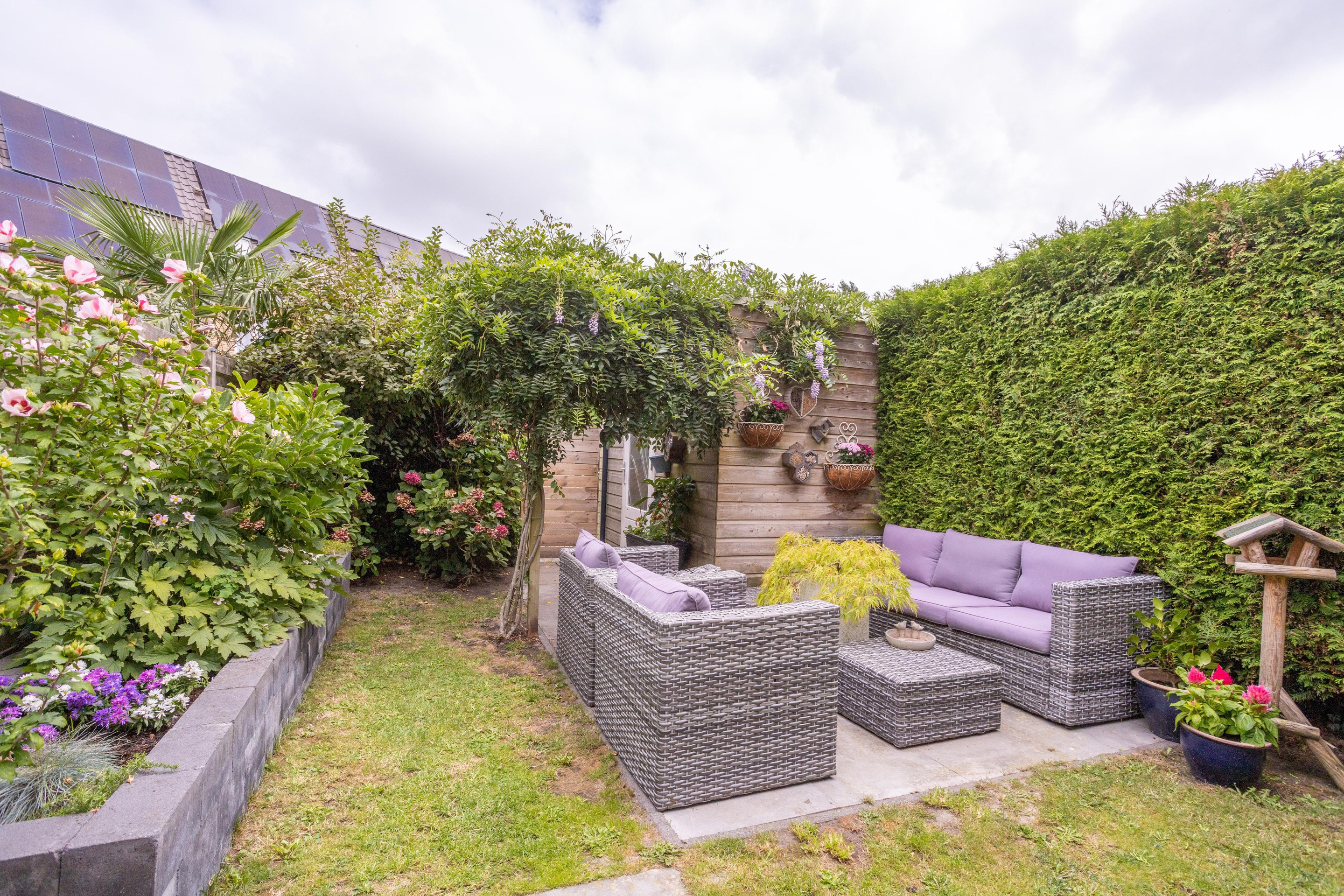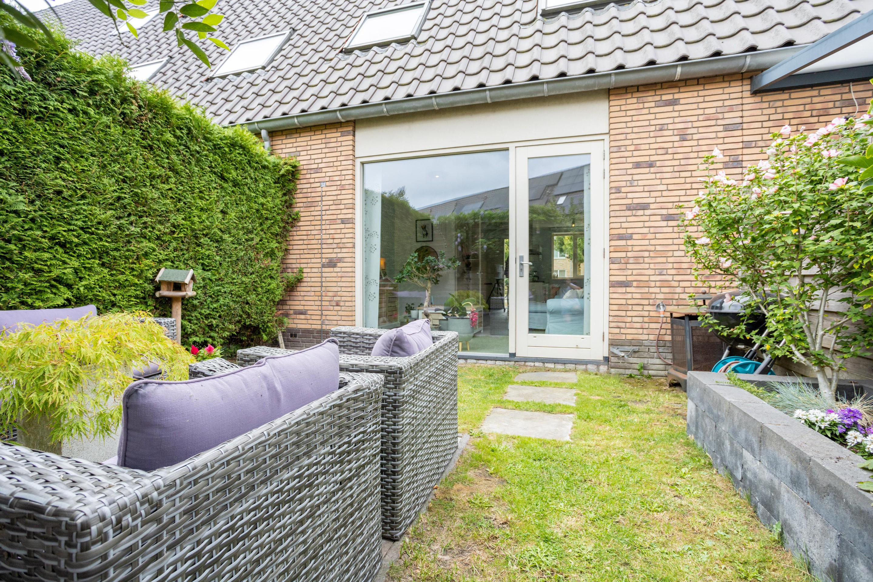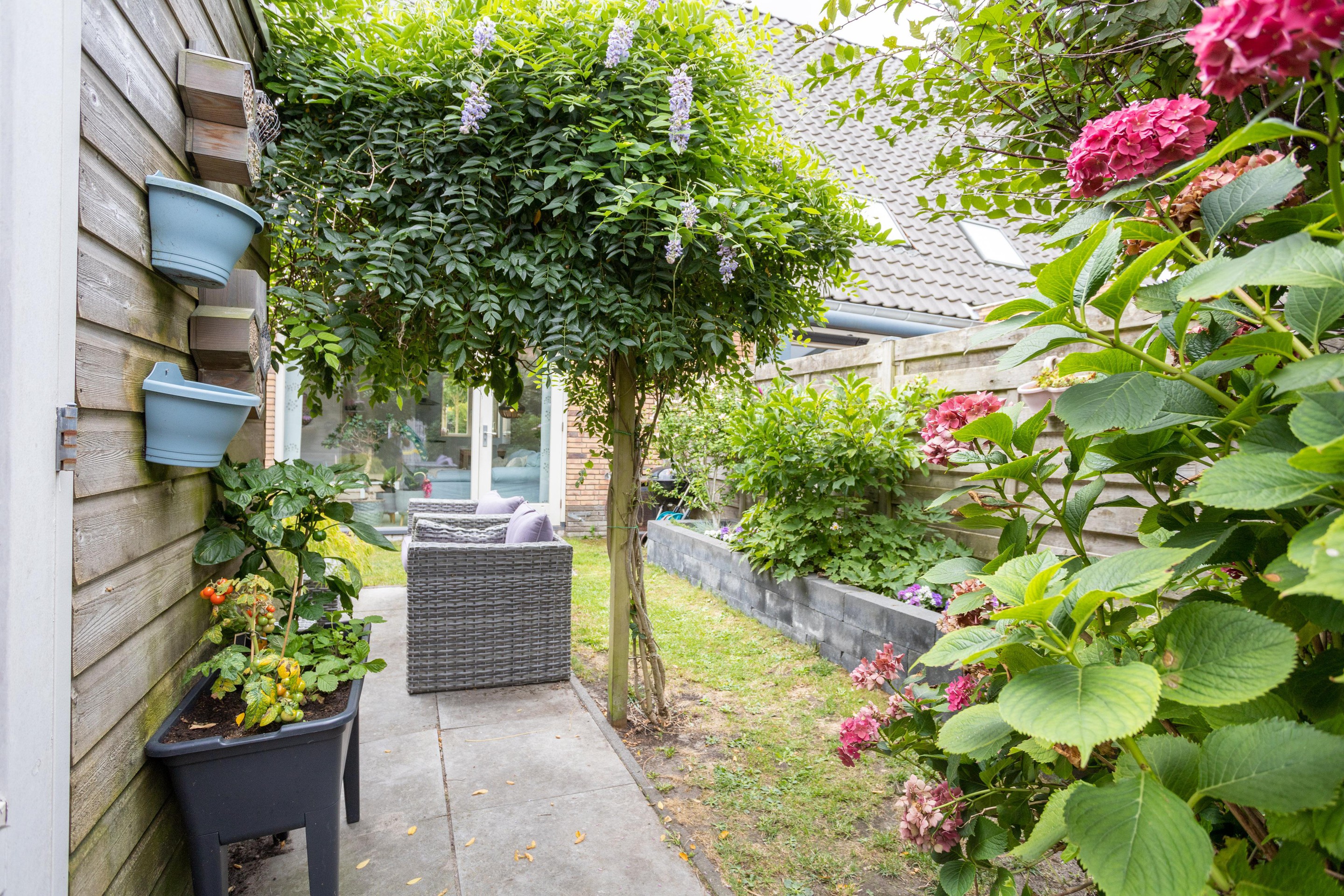 De achtertuin is zowel vanuit de woning als een achterom te bereiken. De tuin is keurig aangelegd en gelegen op het noordwesten. Een houten berging met elektriciteit is aanwezig.