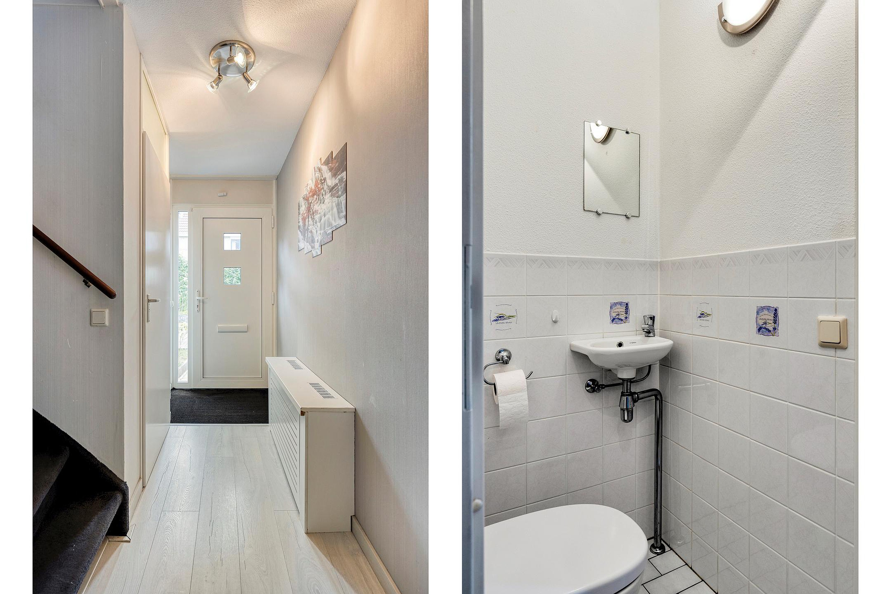 Via de voortuin met daarin een prachtige perenboom, kom je in de hal met meterkast, toilet en trap. Gelijk valt hier de nette, lichte uitstraling op. De muren zijn recent geschilderd en op de vloer ligt mooi afgewerkt laminaat. Aan het eind van de hal bevindt zich de toegang tot woonkamer en keuken.