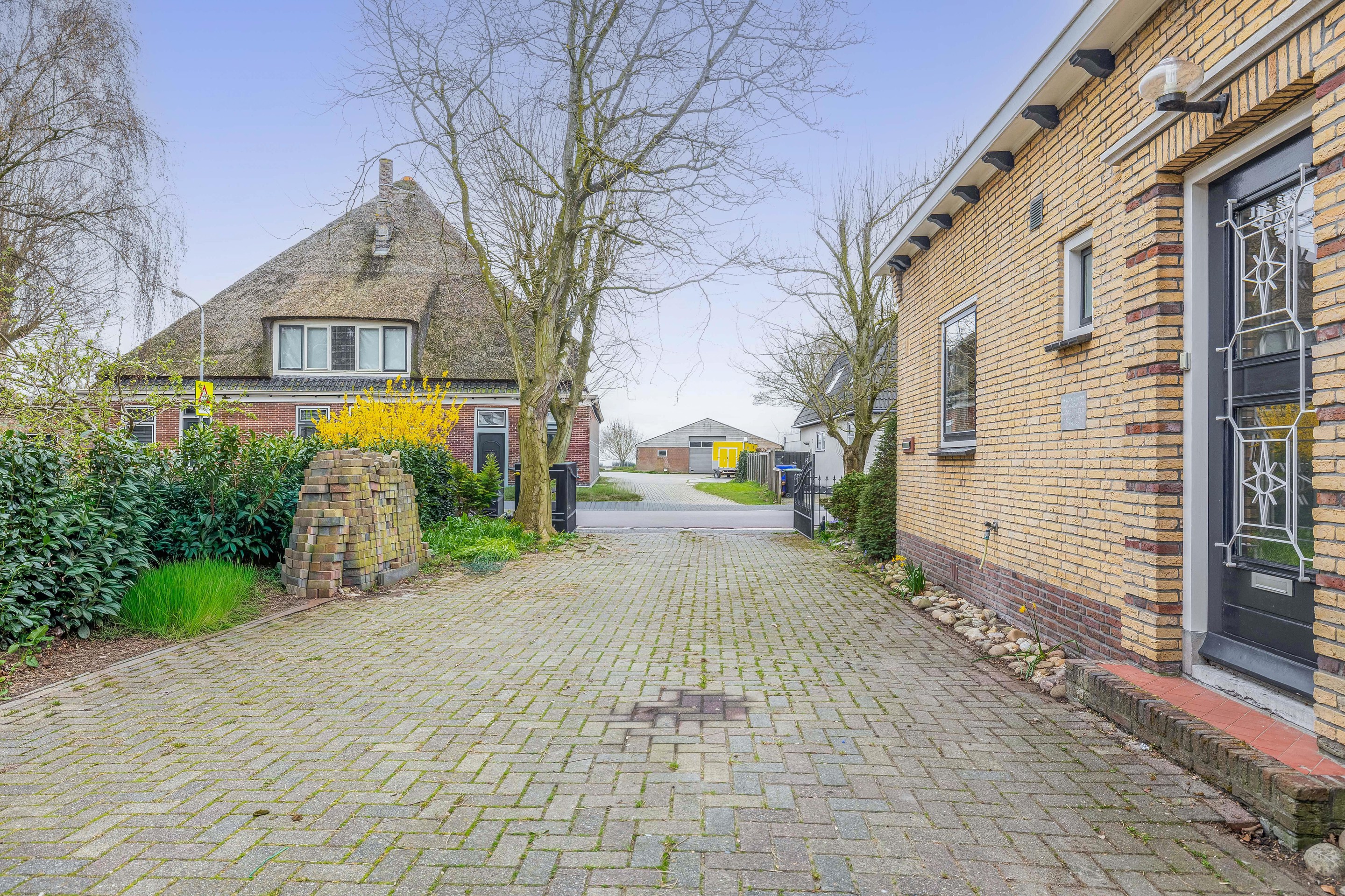 vrij doorvaarbaar water gelegen. Hier is tevens een houten vlonder en aanleg mogelijkheid voor uw bootje. Naast de woning is een brede bestrate oprit die geschikt is voor meerdere auto’s, hier is ook een buitenkraan aanwezig, ook naast de aangebouwde garage is bestraat zodat de achterliggende schuur/ garage goed met de auto te bereiken is.
