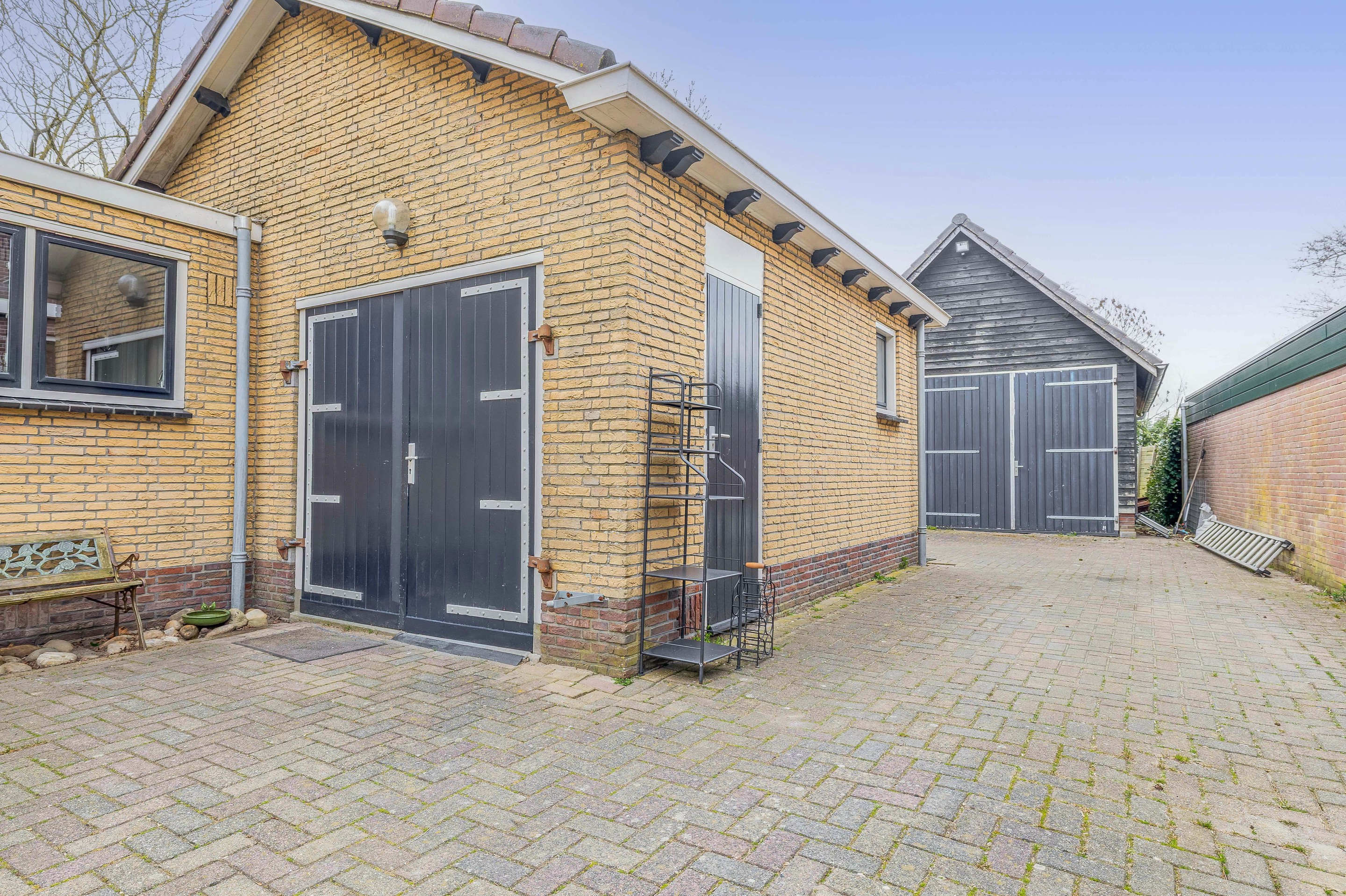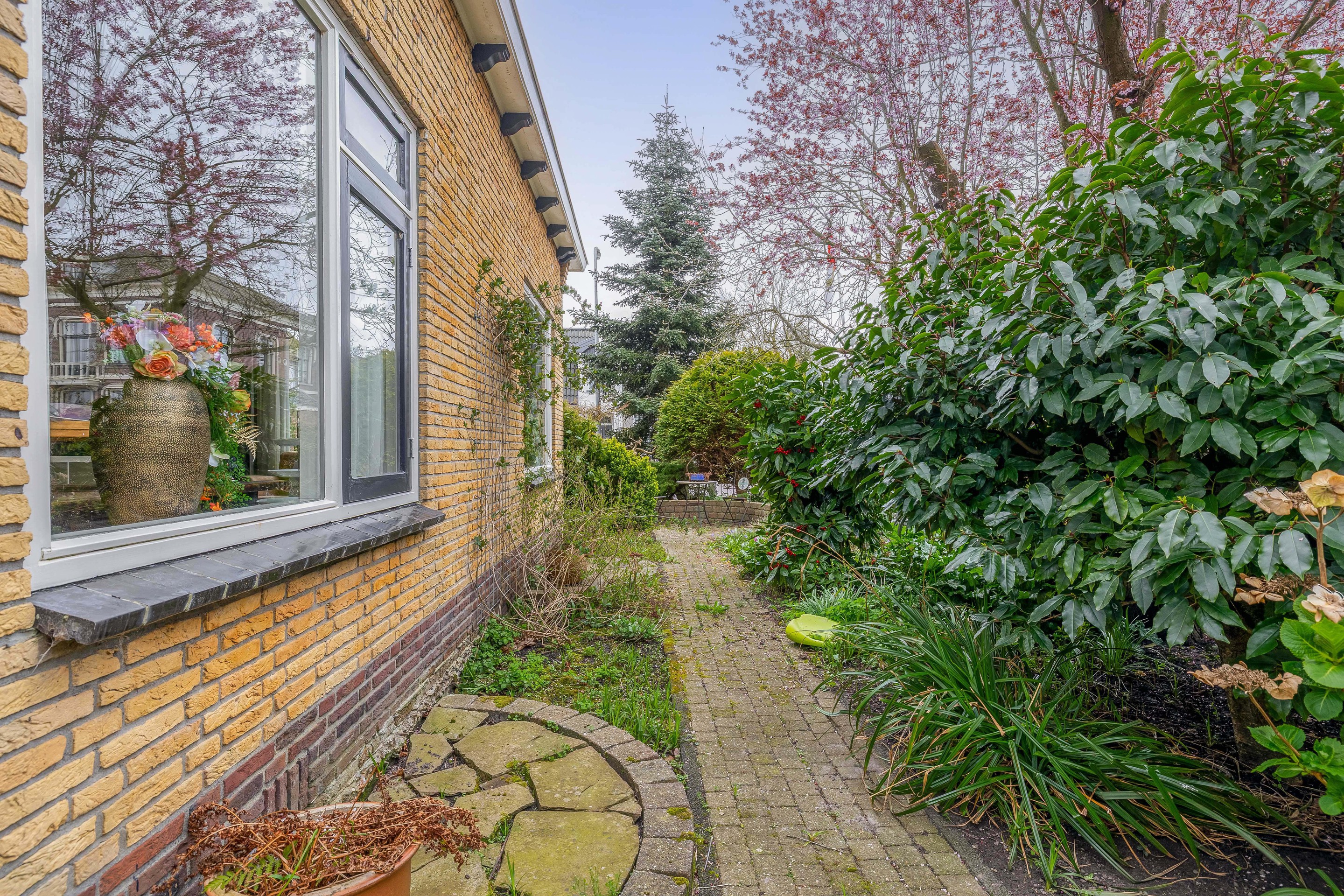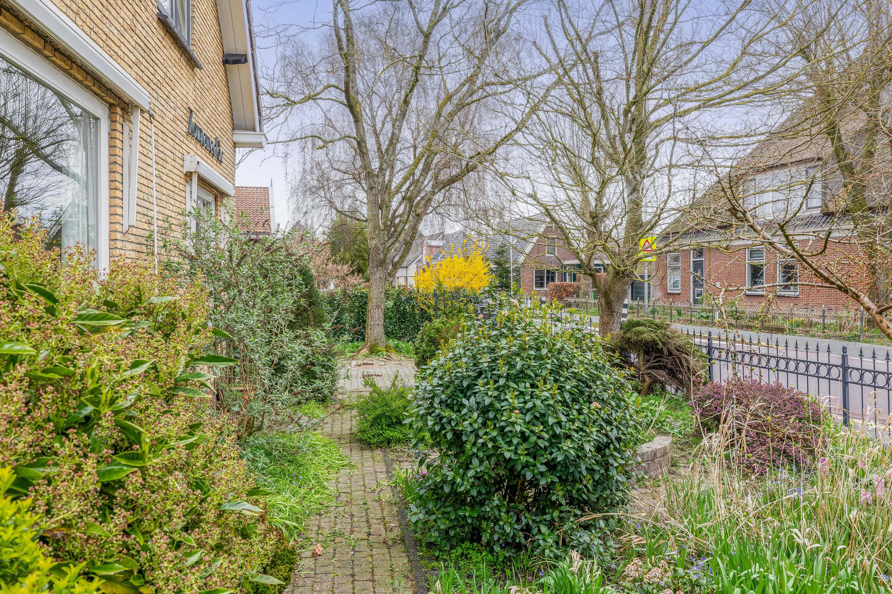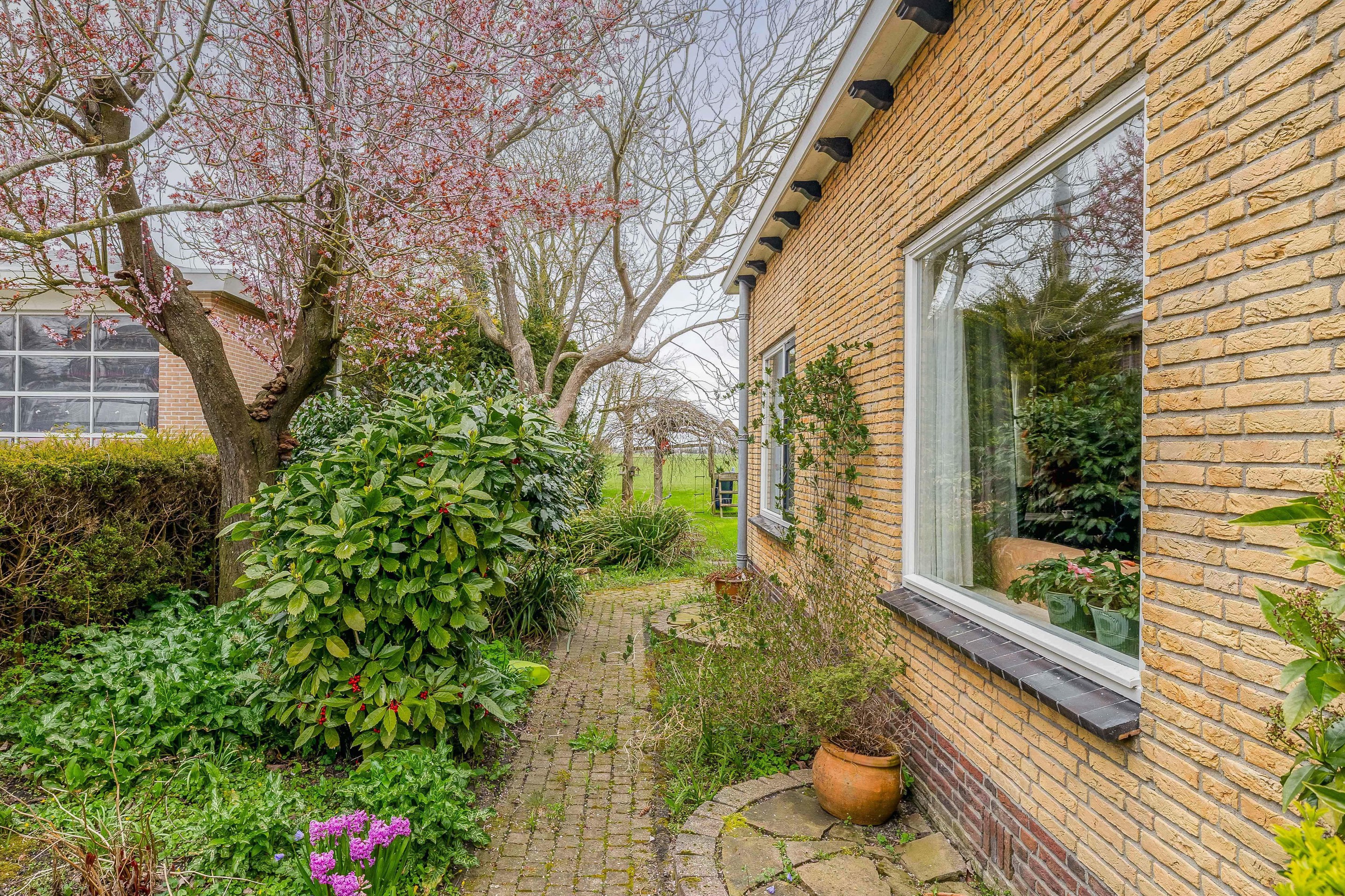 De woning staat vrij op de kavel waardoor er rondom tuin is, achter de woning is een betegeld terras aanwezig, de achtertuin heeft vrij uitzicht, is circa 25 meter diep en 19 meter breed en is aan