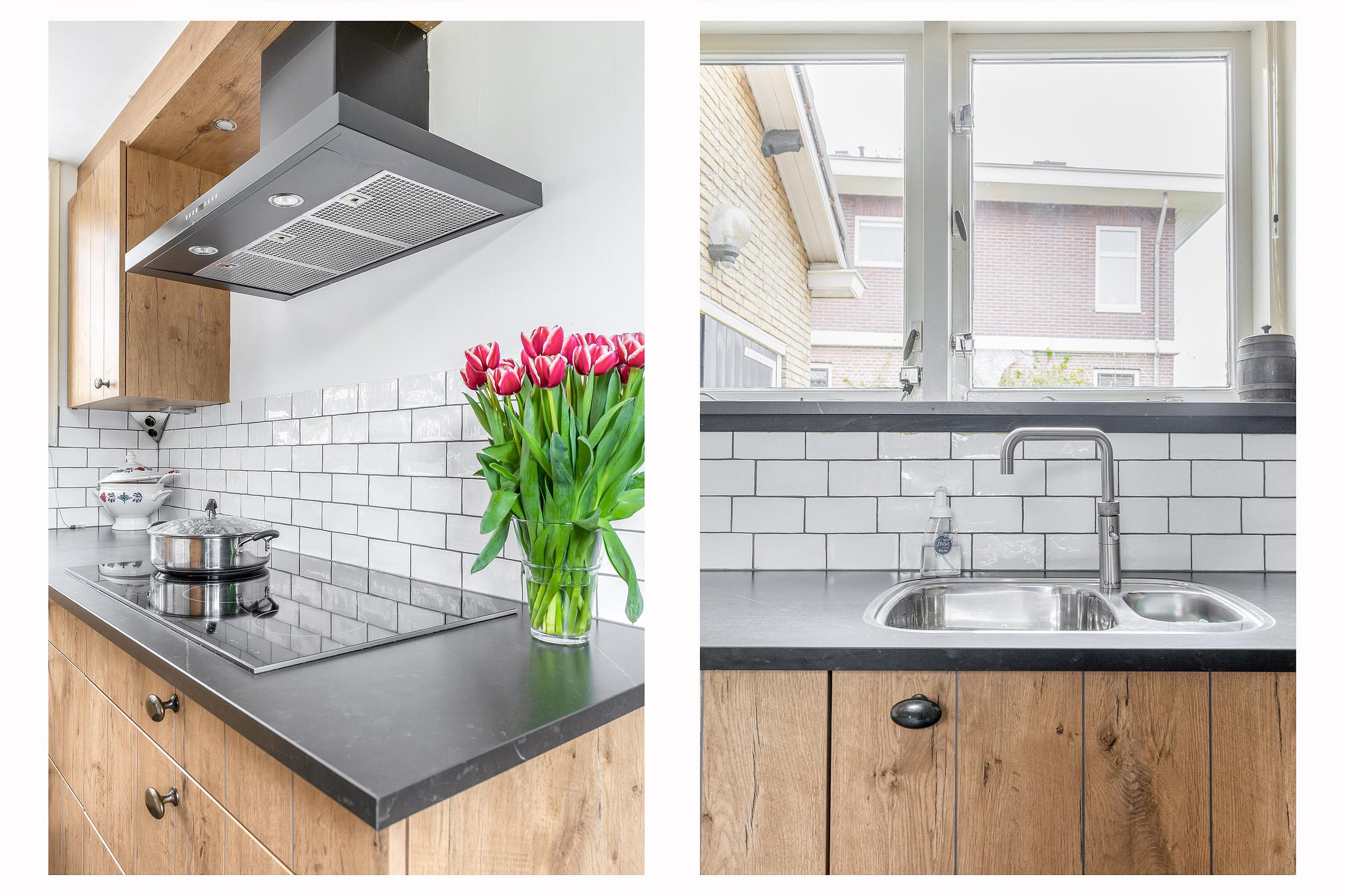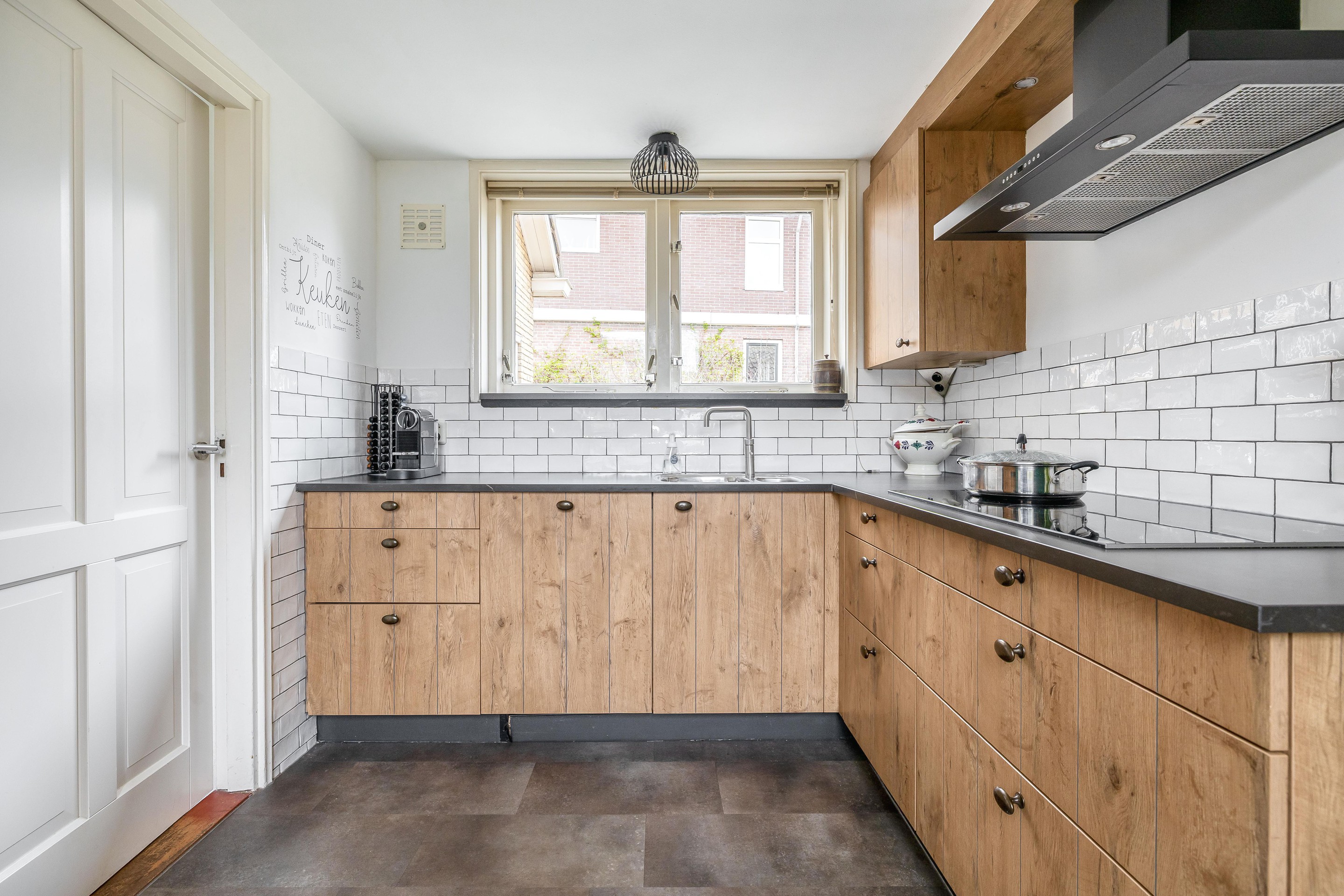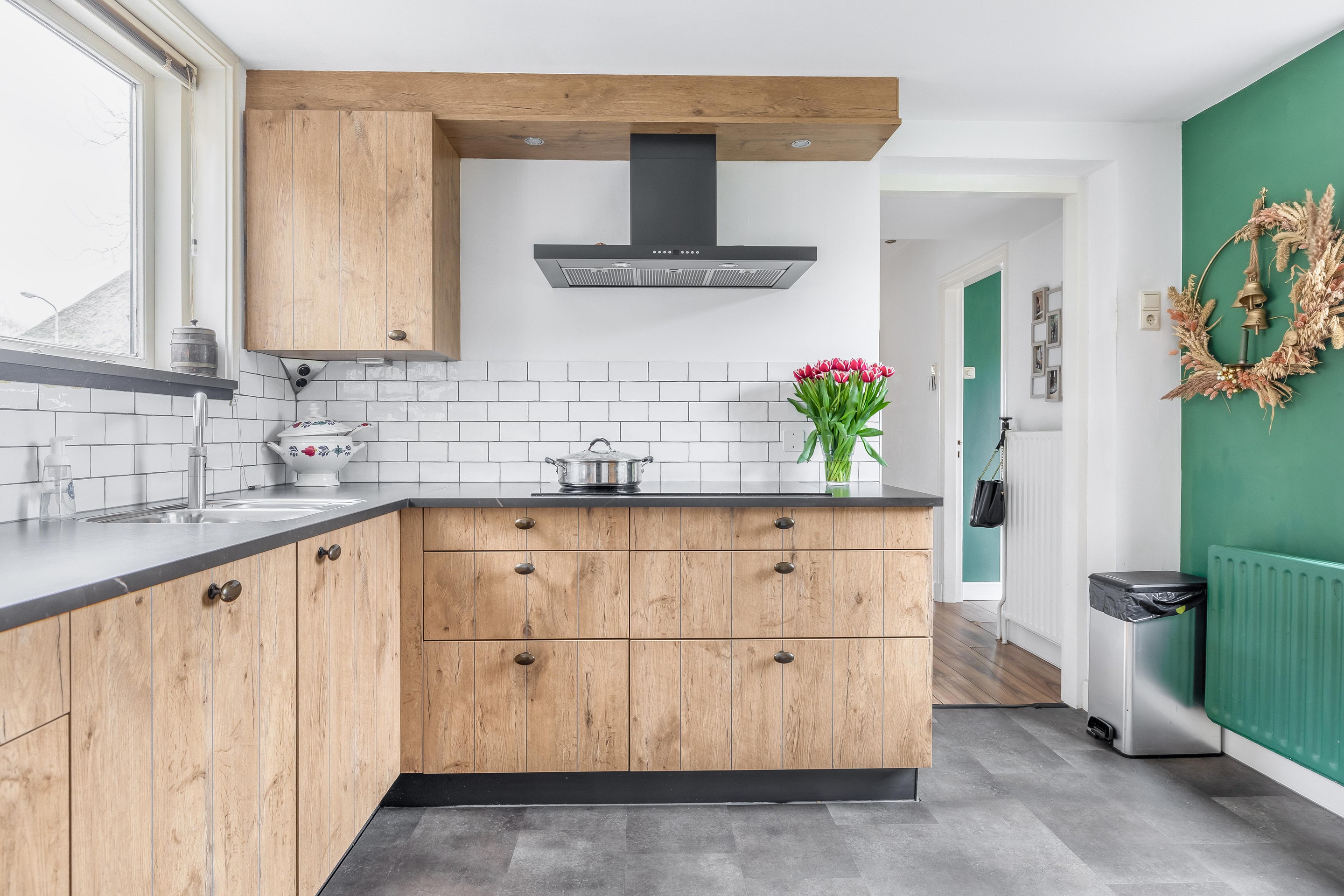 De keuken is halfopen, heeft daglichtinval van twee kanten en is voorzien van een RVS 1½ spoelbak met mengkraan, een Siemens vaatwasser, een Atag 5-pits inductie kookplaat met afzuigkap en een Atag combimagnetron. De keuken bied toegang tot de bijkeuken en de aangebouwde garage.