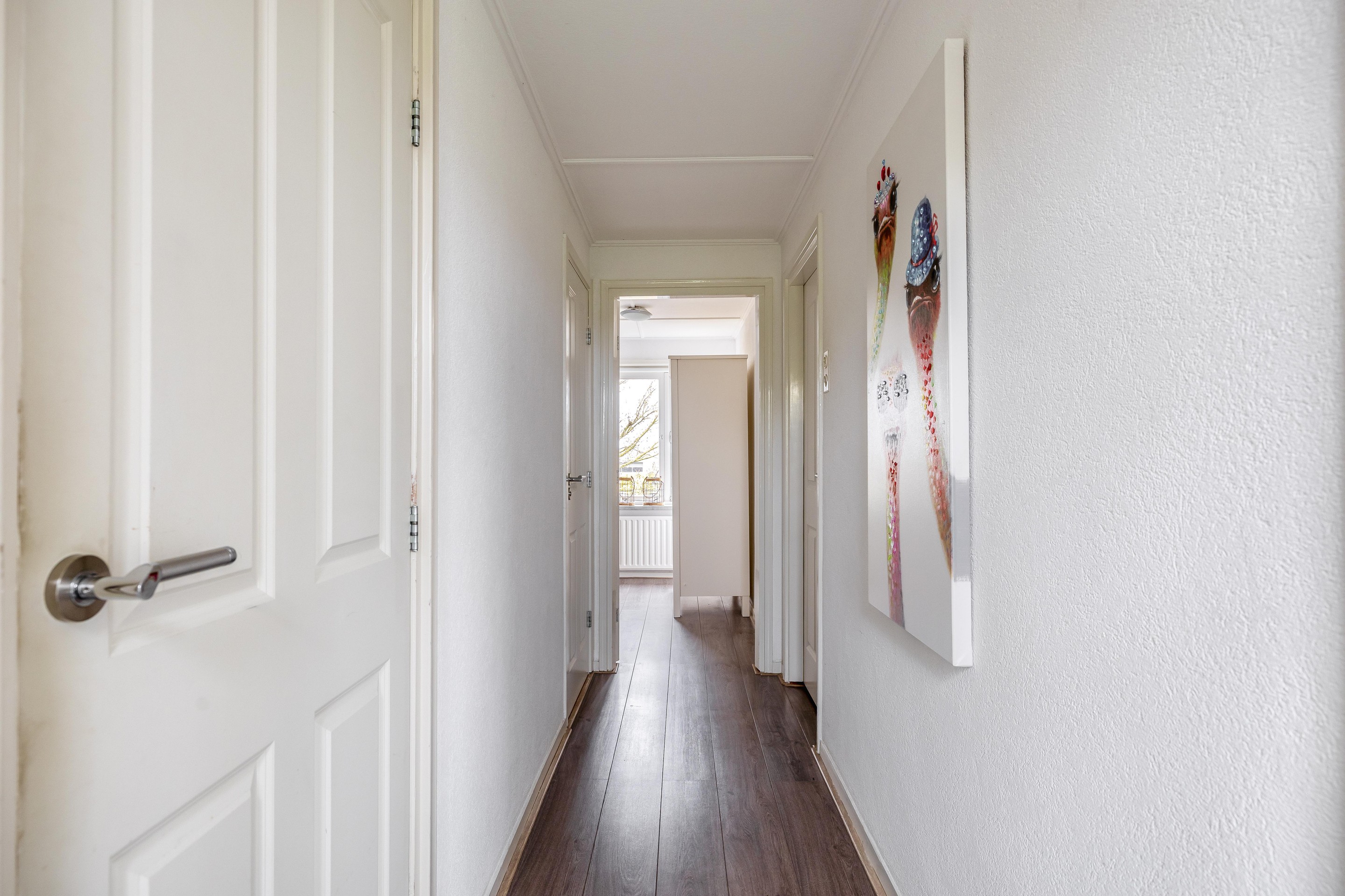 Via de trap bij de entree komt u op de overloop van de 1e etage, aan de rechterzijde is de deur naar het plat dak. De overloop bied verder nog toegang tot de 4 slaapkamers en een separate toiletruimte.