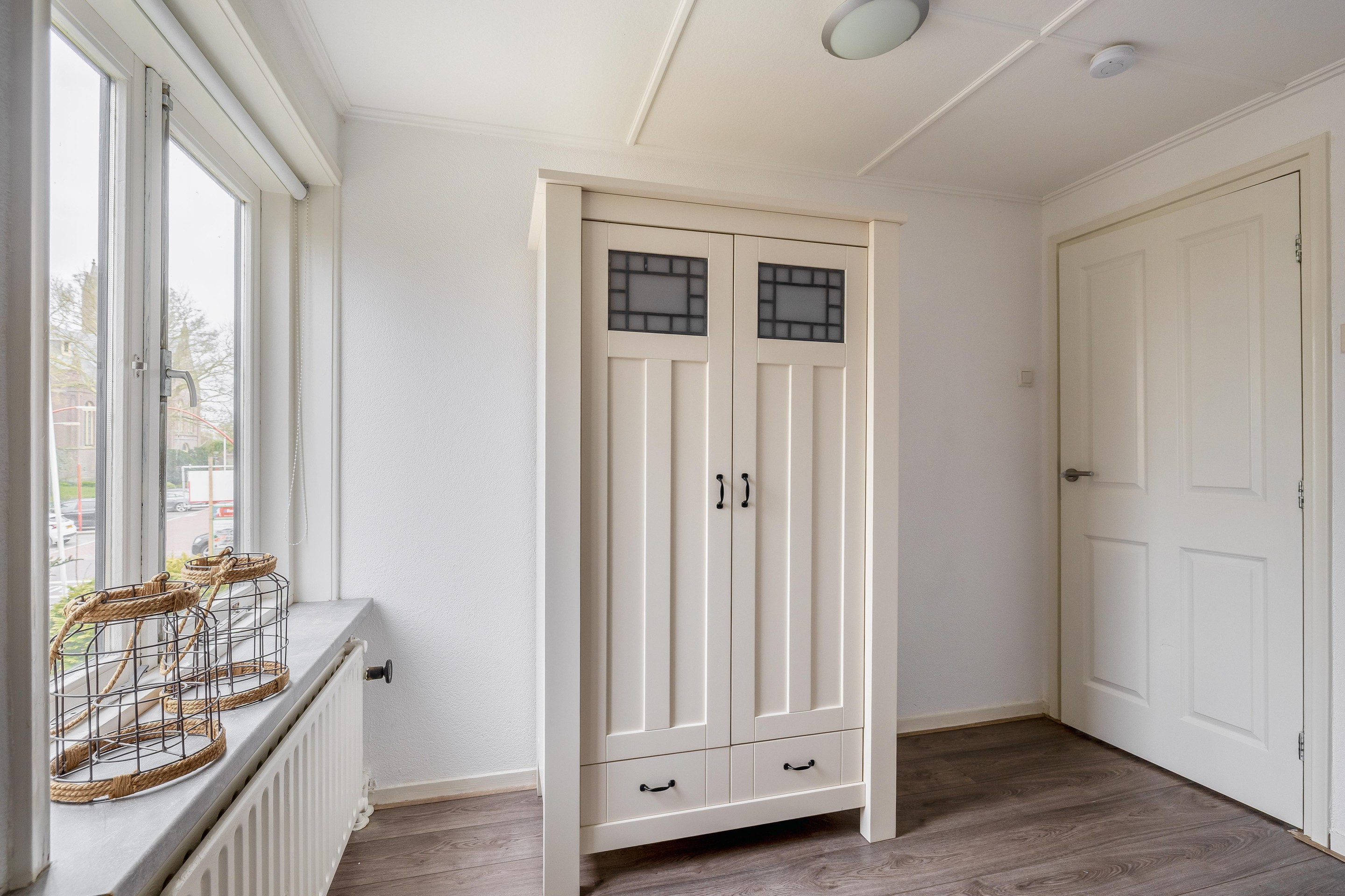 Naast de entree en onder de trap naar de etage vind u de kelderkast.