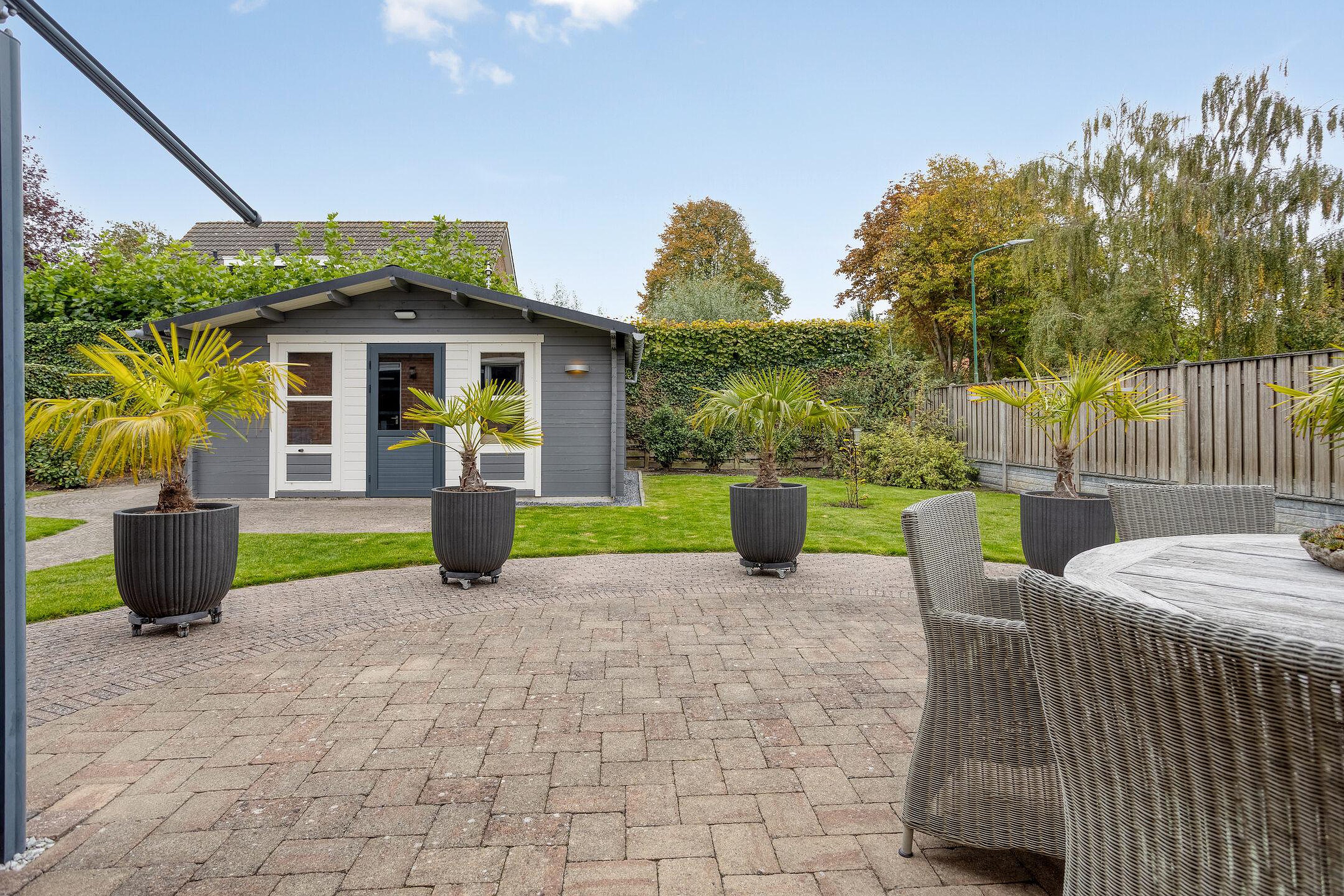 De grote berging van circa 25 m2 is perfect voor fietsen, gereedschap of een kleine werkruimte.