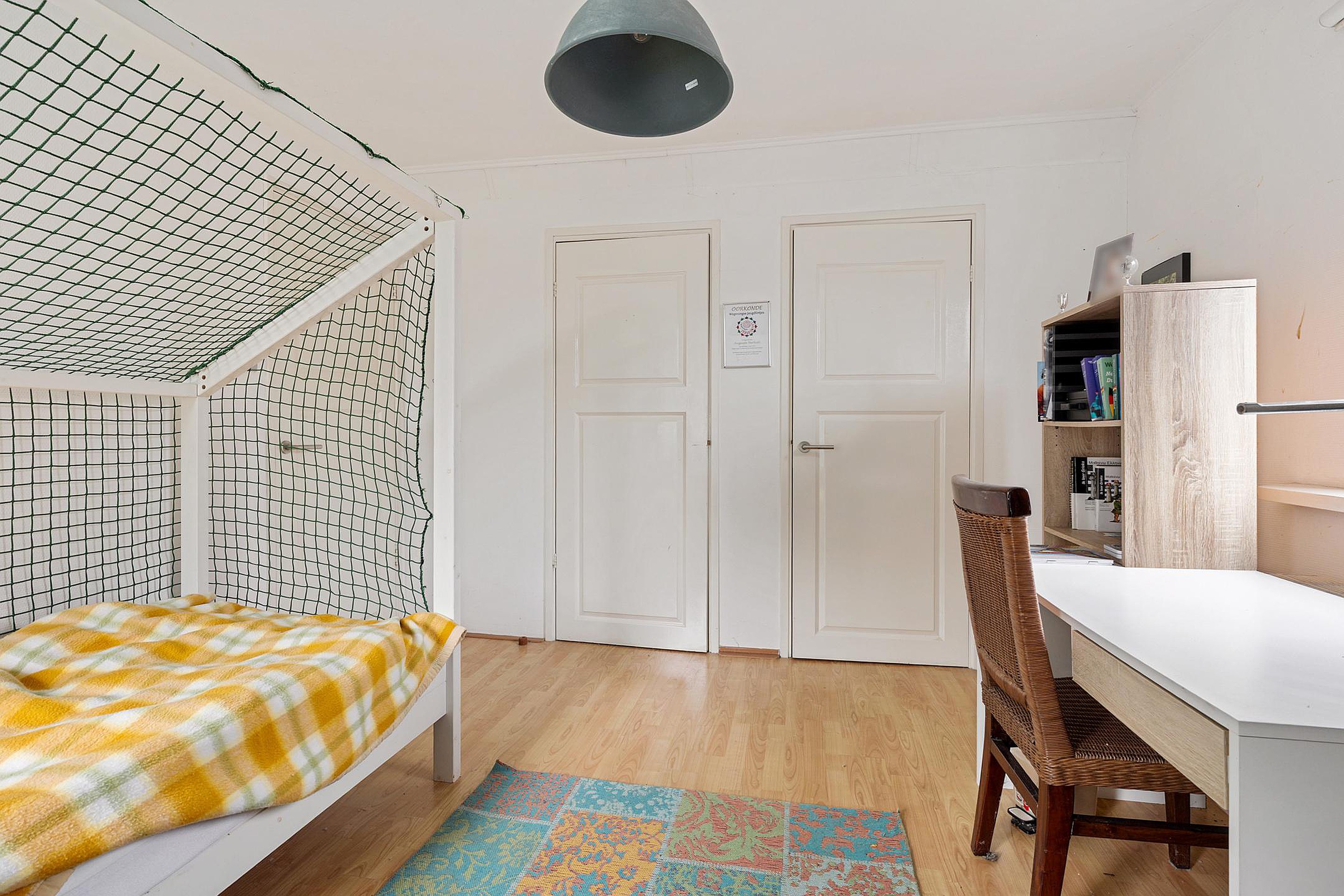 De eerste verdieping beschikt over vier slaapkamers en is bereikbaar via zowel de entree als de hal aan de achterzijde. De twee slaapkamers aan de achterzijde zijn voorzien van kunststof kozijnen. De derde slaapkamer is een doorloopkamer en biedt toegang tot de vierde slaapkamer. In de vierde slaapkamer bevindt zich de tweede trap naar de begane grond. Alle slaapkamers zijn voorzien van dakkapel, wat zorgt voor extra ruimte en lichtinval.