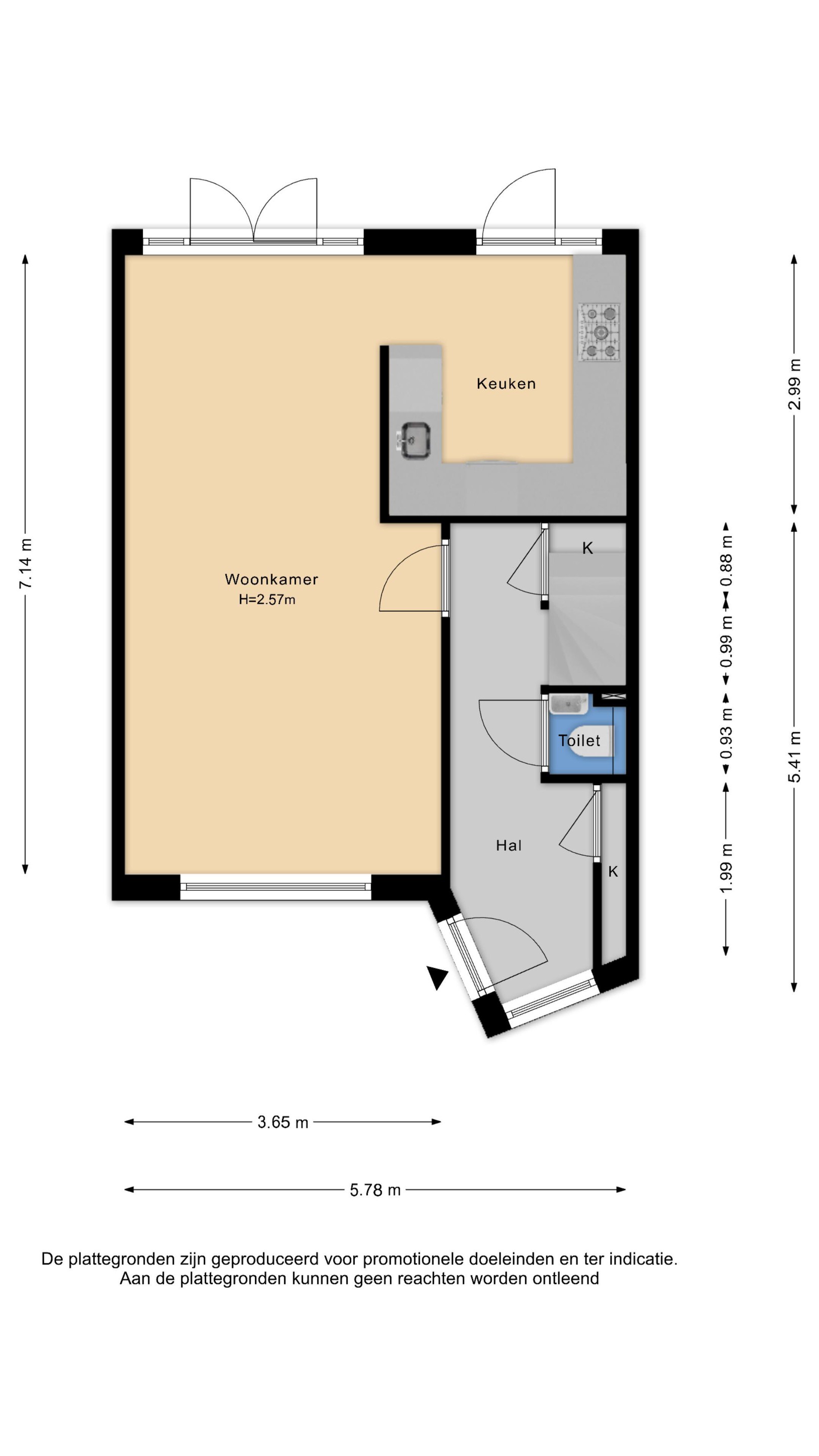Voor alle woningen geldt dat de in tekst vermelde afmetingen een indicatie zijn en daar kunnen geen rechten aan worden ontleend. De werkelijke oppervlakte kan afwijken van hetgeen in detail op de website is vermeld. De woning is ingemeten volgens de meetinstructie welke verplicht is voor makelaars en taxateurs. Ondanks de zorg die door de makelaar aan de correcte invoer van de gegevens besteed wordt, kan de makelaar niet verantwoordelijk gehouden en/of aansprakelijk gesteld worden voor eventuele fouten, omissies en/of onvolkomenheden in de gegevens.