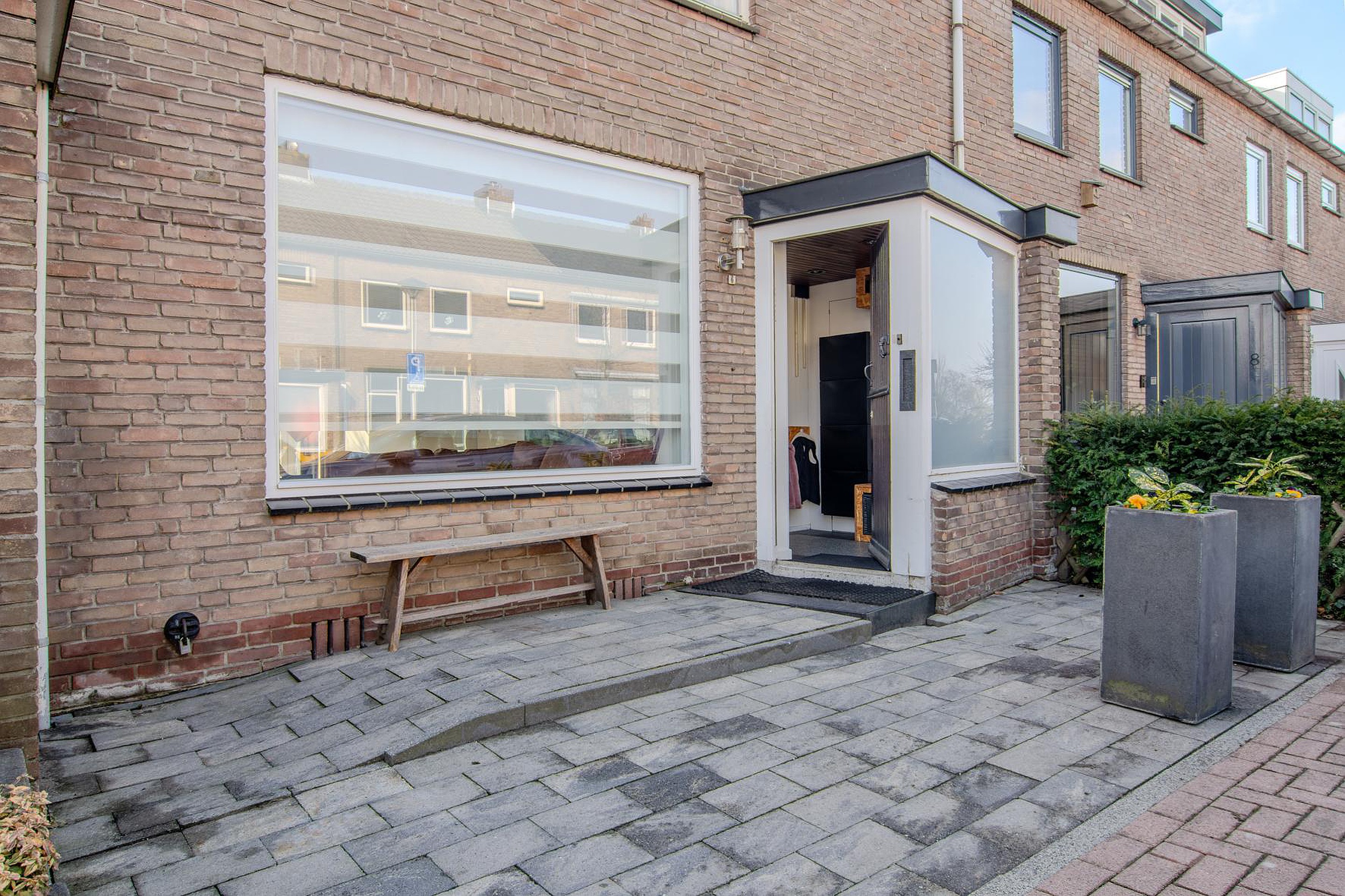 * Houten kozijnen met dubbel glas en kunststof dubbele deuren met HR++ glas