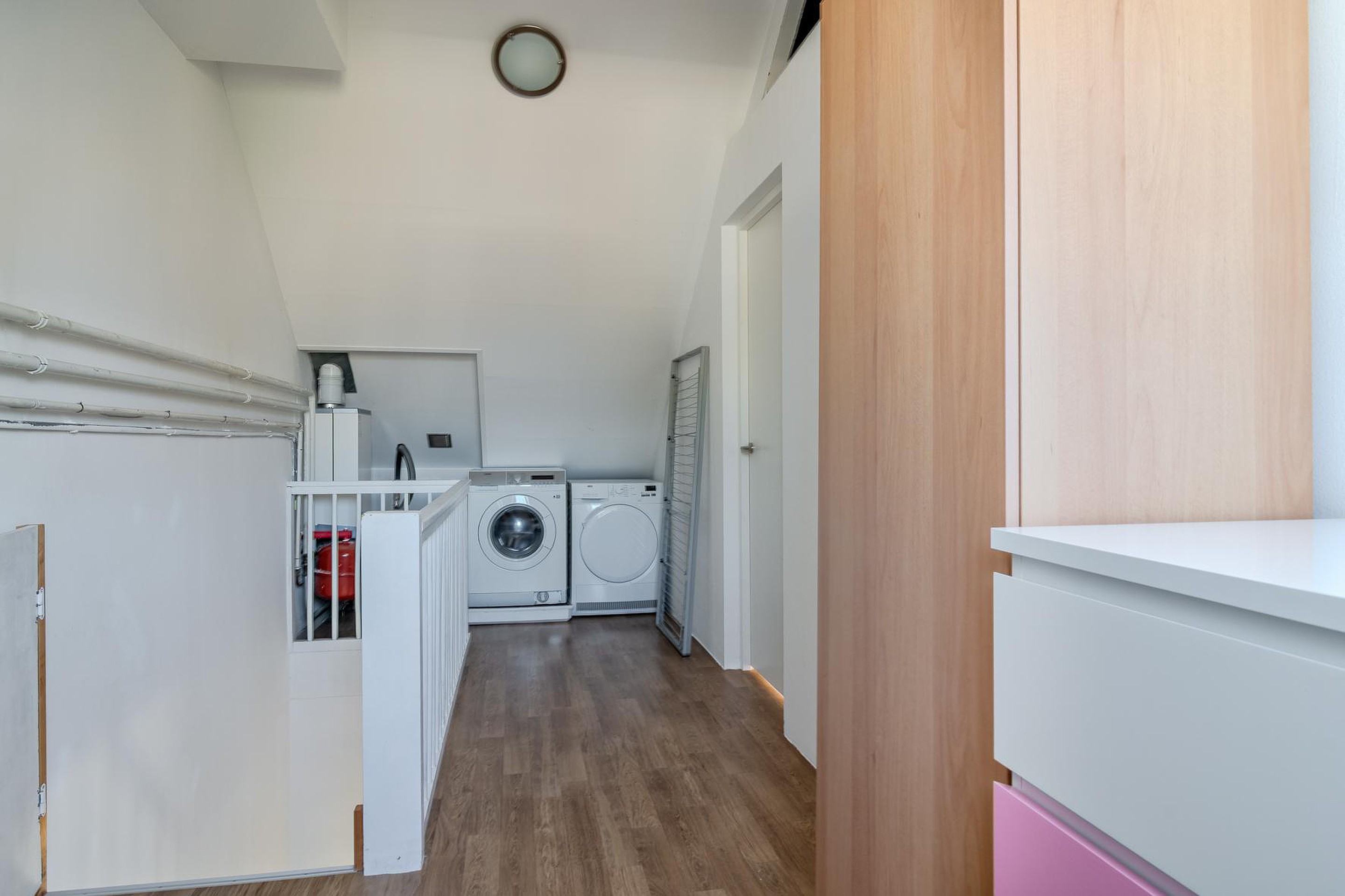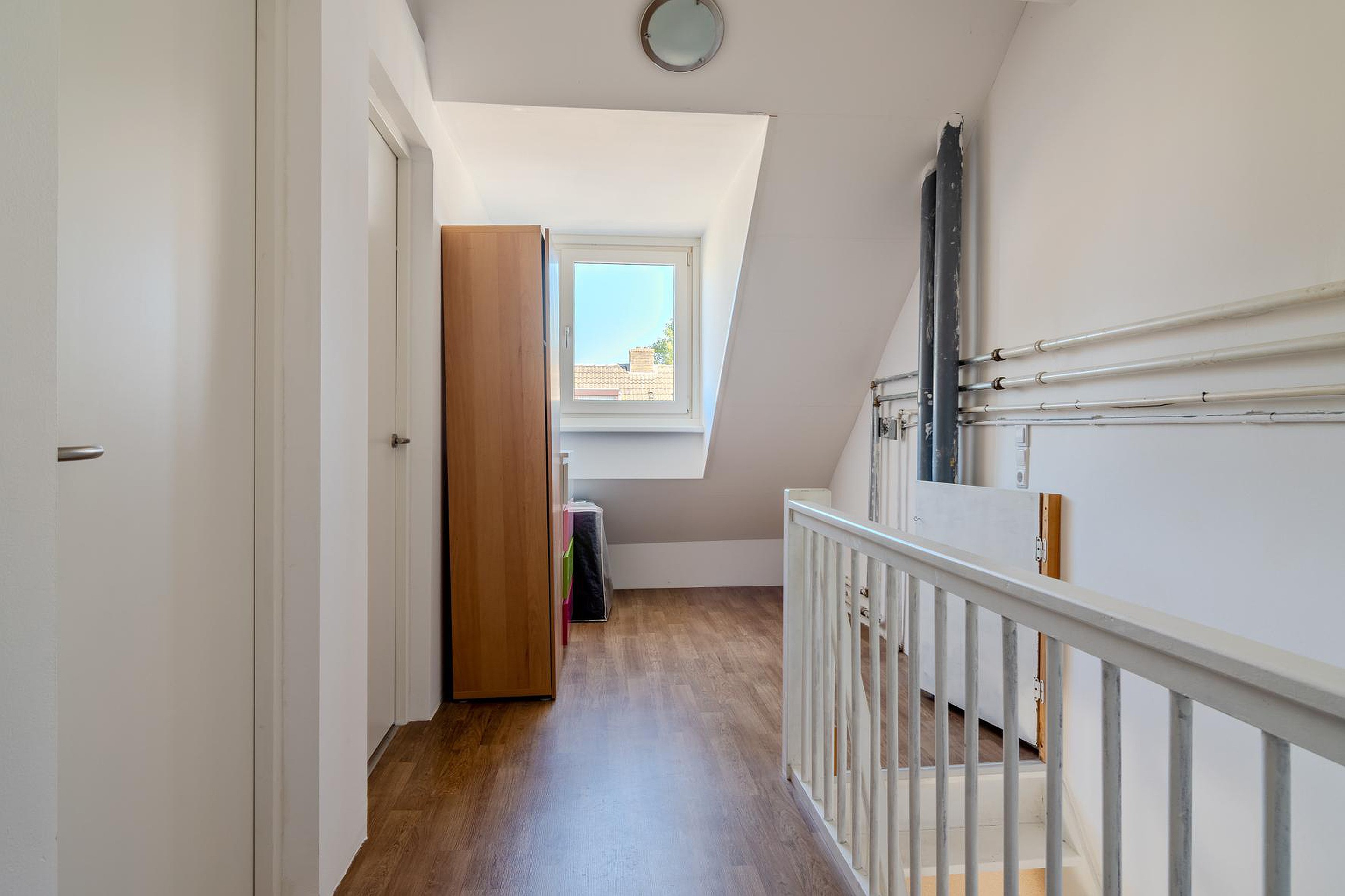 Op de tweede verdieping vind je de lichte overloop met dakkapel aan de achterzijde en twee ruime slaapkamers (2.87 x 3.52 en 2.73 x 3.52). De slaapkamer aan de achterzijde heeft een dakkapel en die aan de voorzijde een groot dakraam. Op de overloop bevindt zich de opstelplaats voor de cv-ketel en de wasmachine. Vanaf de overloop kom je met een ladder op de kleine vliering (1.28 x 3.52) voor extra bergruimte.
