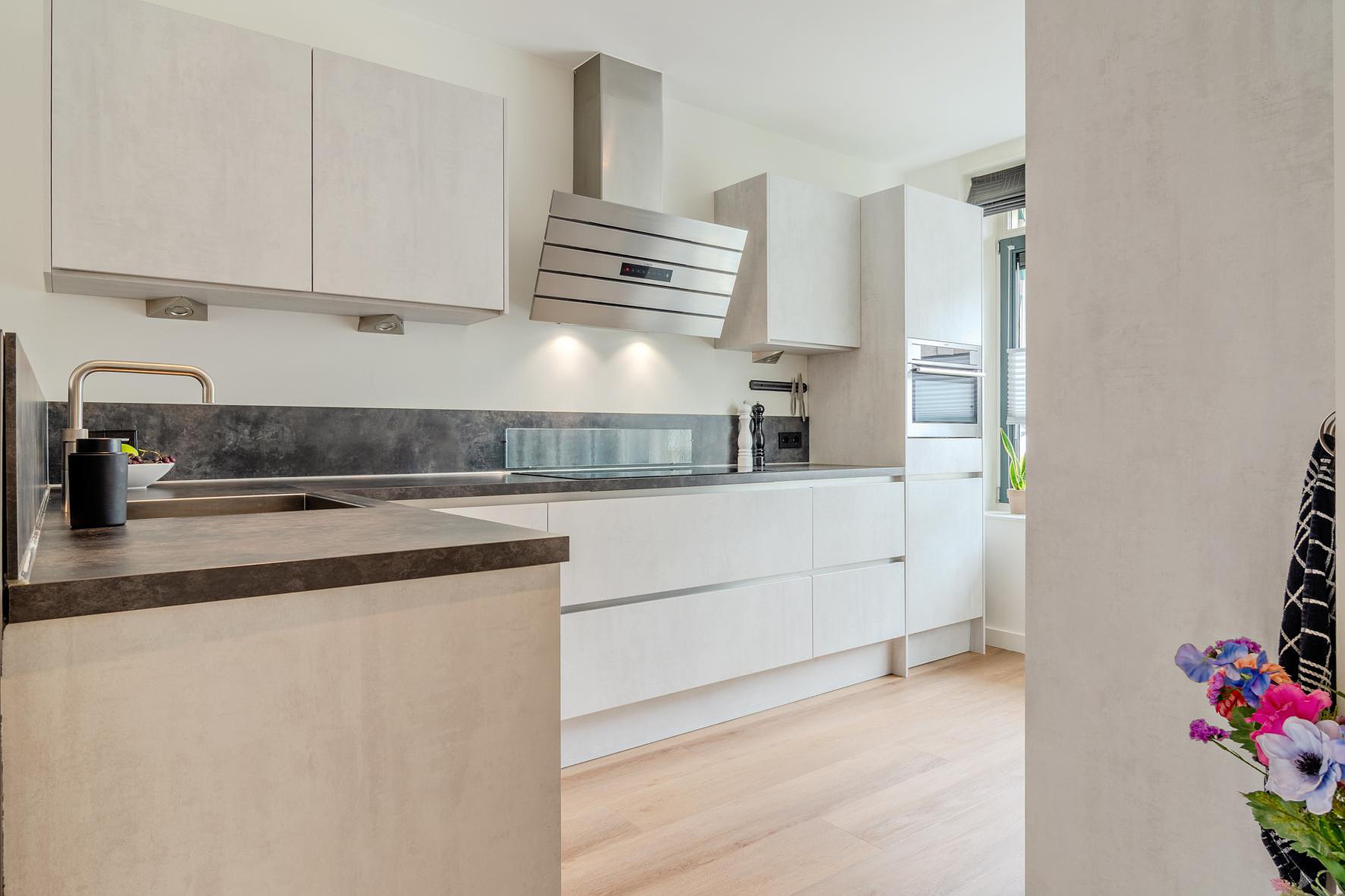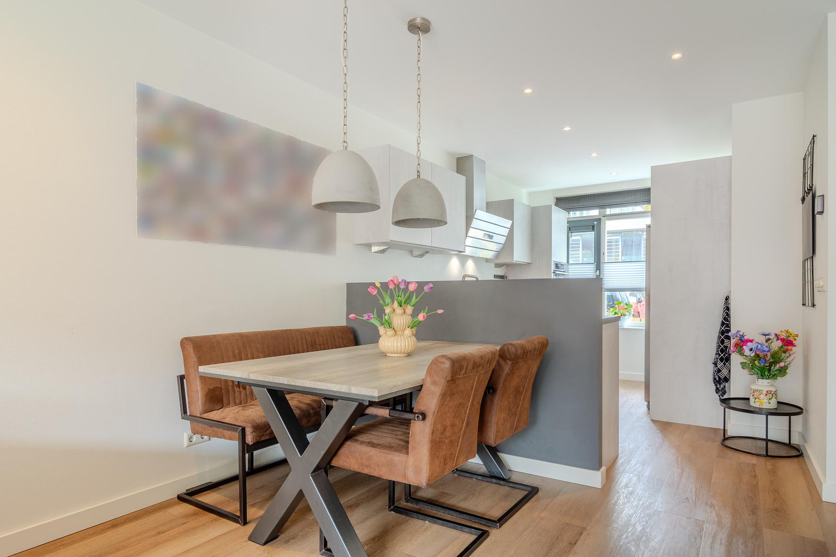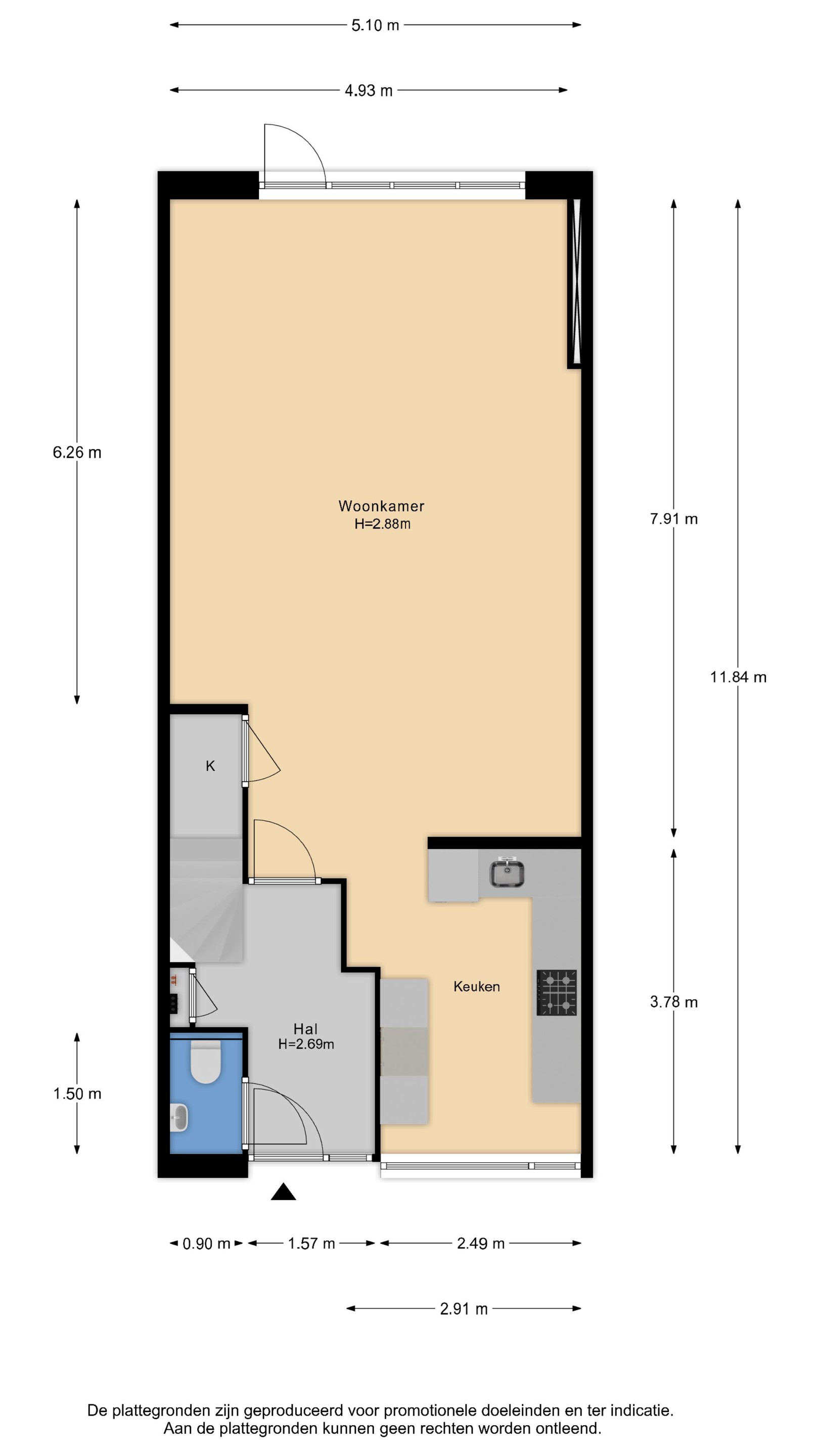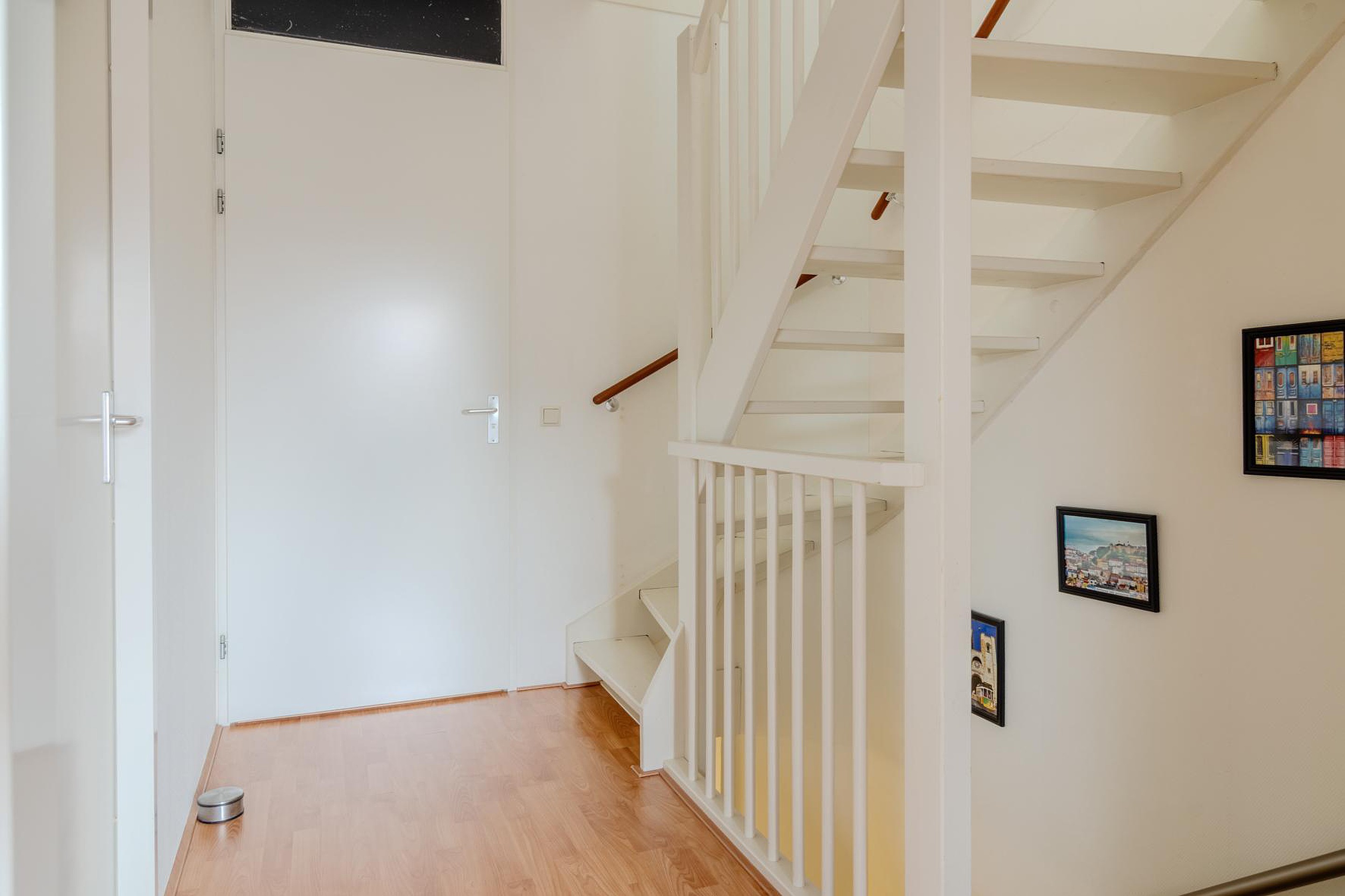 Via de voortuin kom je bij de entree van de woning waar je de hal met meterkast in stapt. De hal geeft toegang tot het toilet, de trapopgang naar de 1e verdieping en de woonkamer. Het toilet is deels betegeld en voorzien van een wandcloset en fonteintje. De lichte woonkamer (5.10 x 7.91) grenst aan de achtertuin. De open keuken (2.49 x 3.78) is gelegen aan de voorzijde en vernieuwd in 2017. De keuken is voorzien van diverse inbouwapparatuur zoals een inductiekookplaat, afzuigkap, combi-oven, Quooker en vaatwasser. De Amerikaanse koel-vriescombinatie is ter overname beschikbaar. De gehele begane grond is voorzien van een nette pvc-afwerkvloer met vloerverwarming. Via de achterdeur kom je in de achtertuin (7.96 x 5.20) op het noordoosten. Deze heeft een stenen berging (3.02 x 2.45) en achterom.