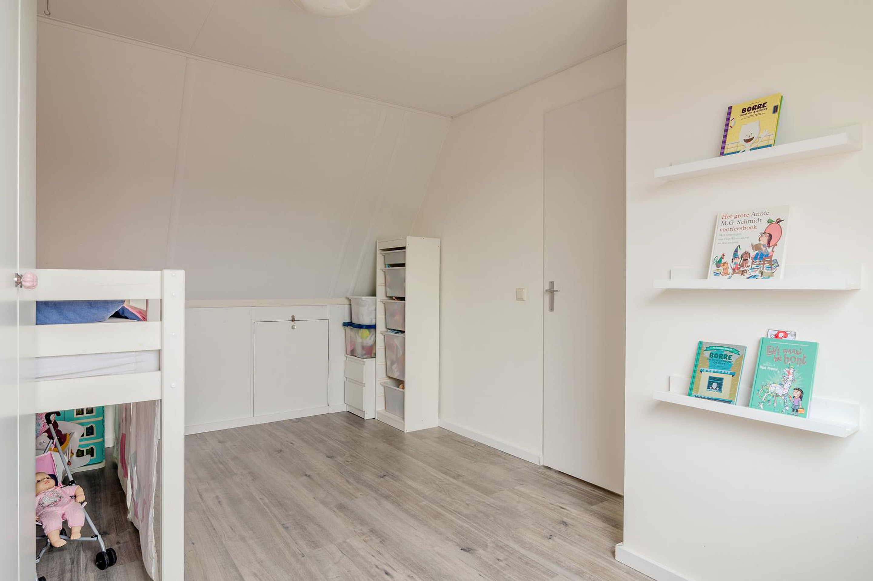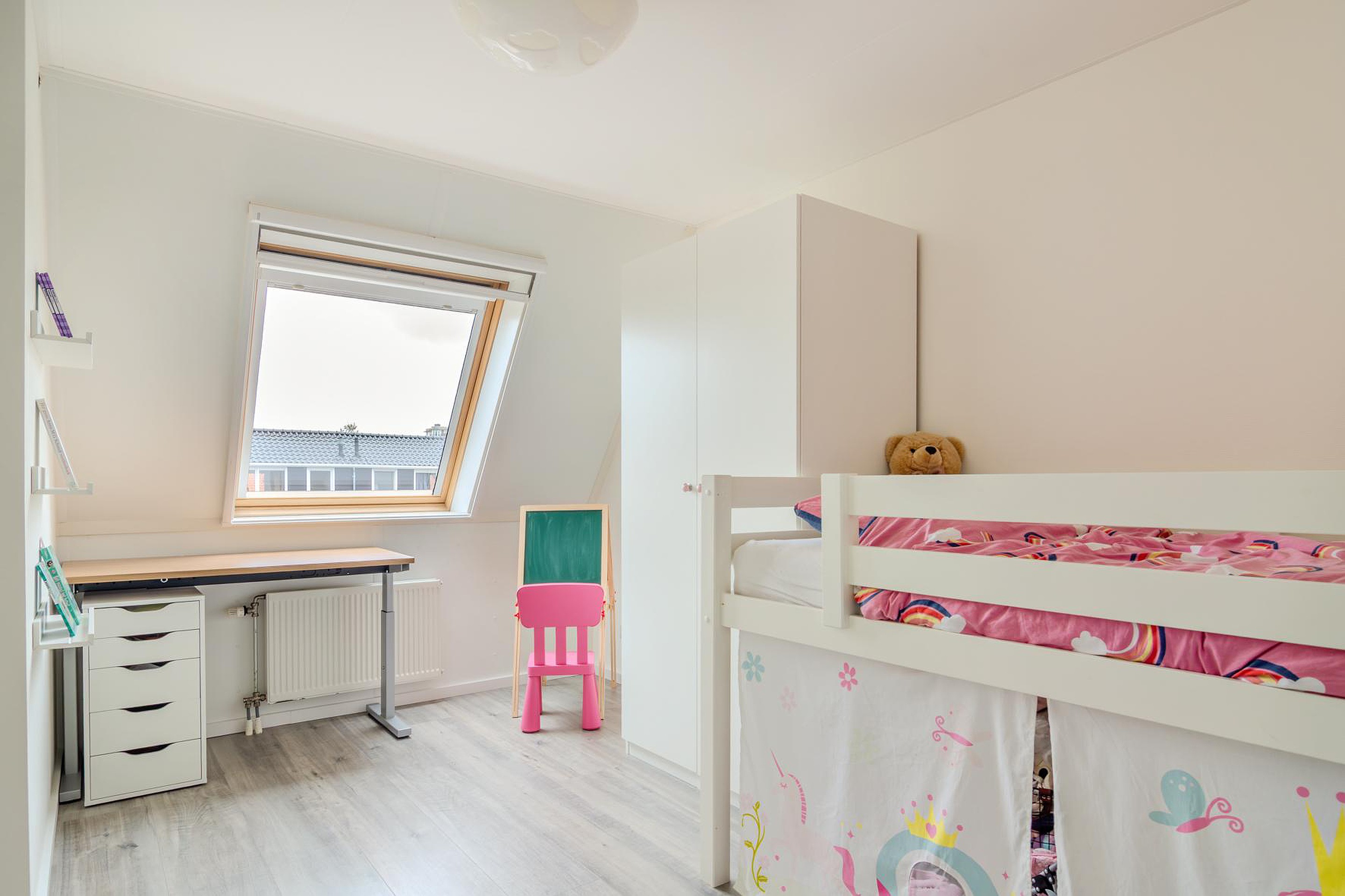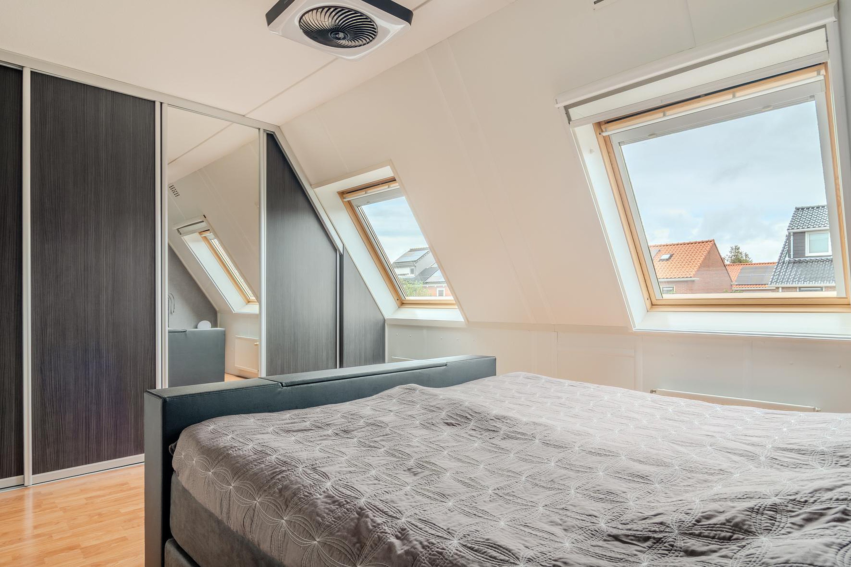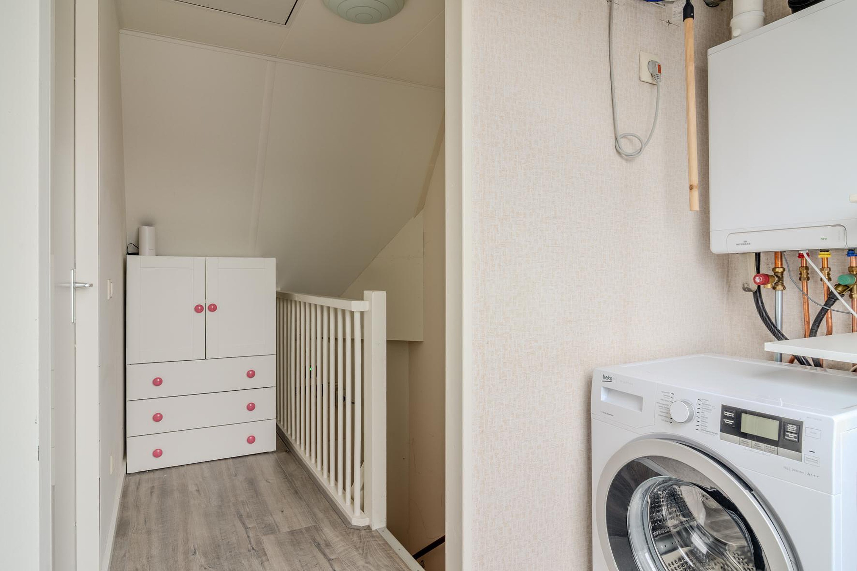 Via de vaste trap kom je op de overloop van de tweede verdieping, welke toegang geeft tot de derde slaapkamer (3.02 x 4.51). Zowel de slaapkamer als de overloop zijn voorzien van een dakraam aan de achterzijde. Er is de mogelijkheid om de dakramen te vervangen voor een dakkapel waardoor je veel ruimtewinst kunt pakken. Op de overloop zijn de Cv-ketel en box van de mechanische ventilatie gesitueerd met opstelplaats voor de wasmachine en droger. Achter de knieschotten is ruimte voor extra berging. Deze verdieping is voorzien van een laminaat afwerkvloer.