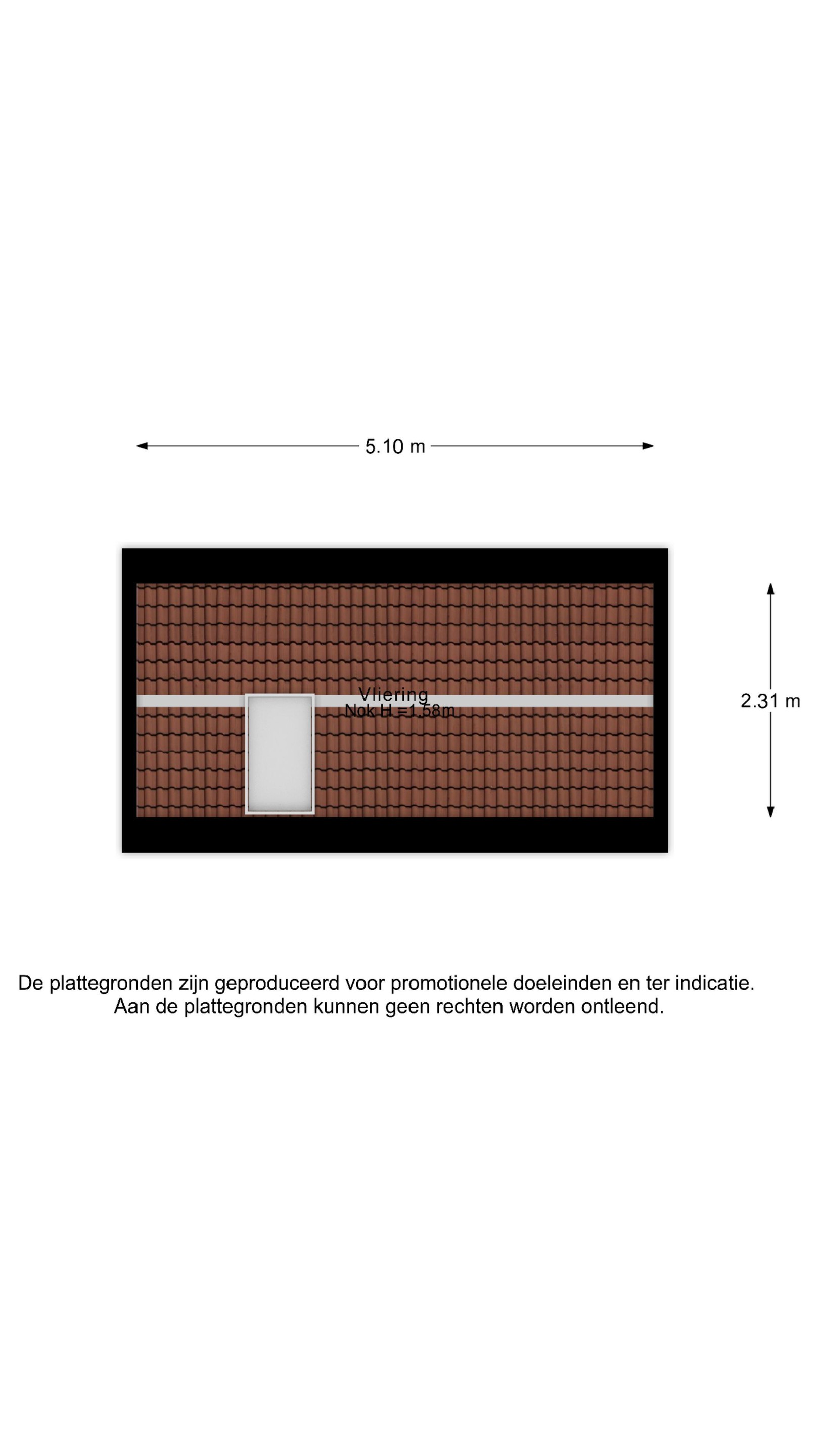 De vliering (5.10 x 2.31) heeft een nokhoogte van 1.58 en is ideaal voor de opslag van spullen die je niet zo vaak nodig hebt.