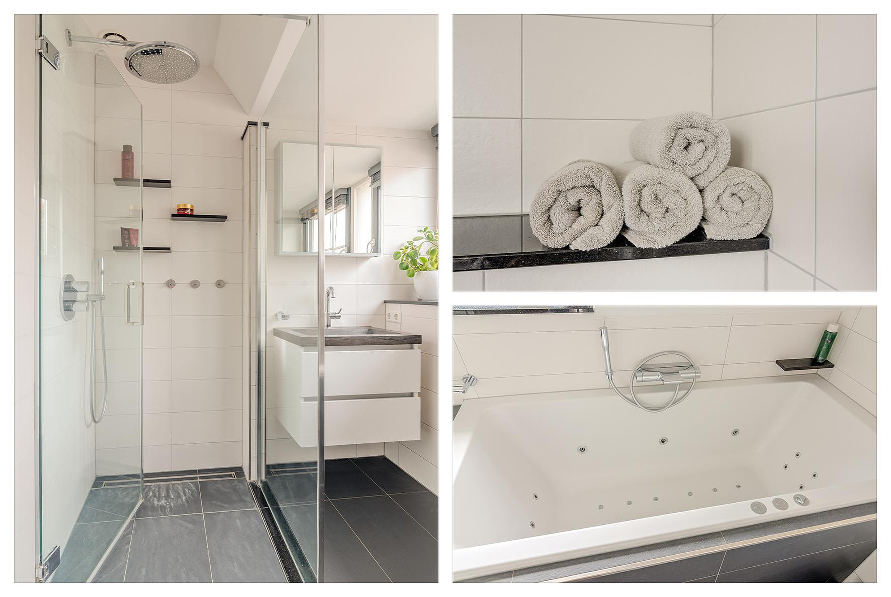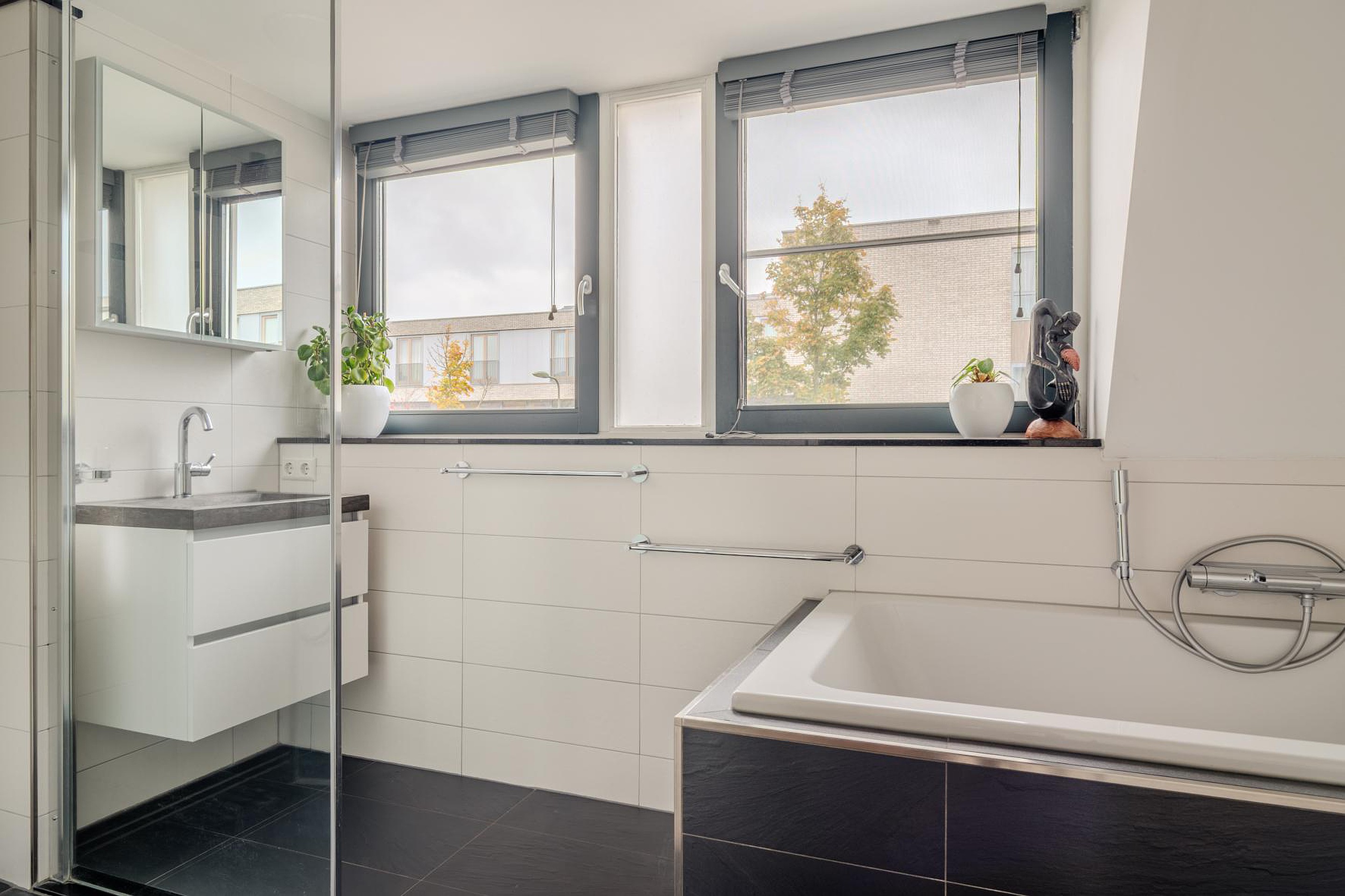 De overloop op de eerste verdieping geeft toegang tot twee slaapkamers en de vergrootte badkamer. Deze verdieping is voorzien van een laminaat afwerkvloer. Aan de achterzijde is de grootste slaapkamer gelegen (5.10 x 3.59). Deze heeft een op maat gemaakte kastenwand en twee grote dakramen. Er is de mogelijkheid om hier een dakkapel te plaatsen. Aan de voorzijde de tweede slaapkamer (3.06 x 2.72). De in 2017 vernieuwde badkamer (3.74 x 1.69) is volledig betegeld en voorzien van vloerverwarming, whirlpool ligbad, douchecabine, wastafelmeubel en tweede toilet.