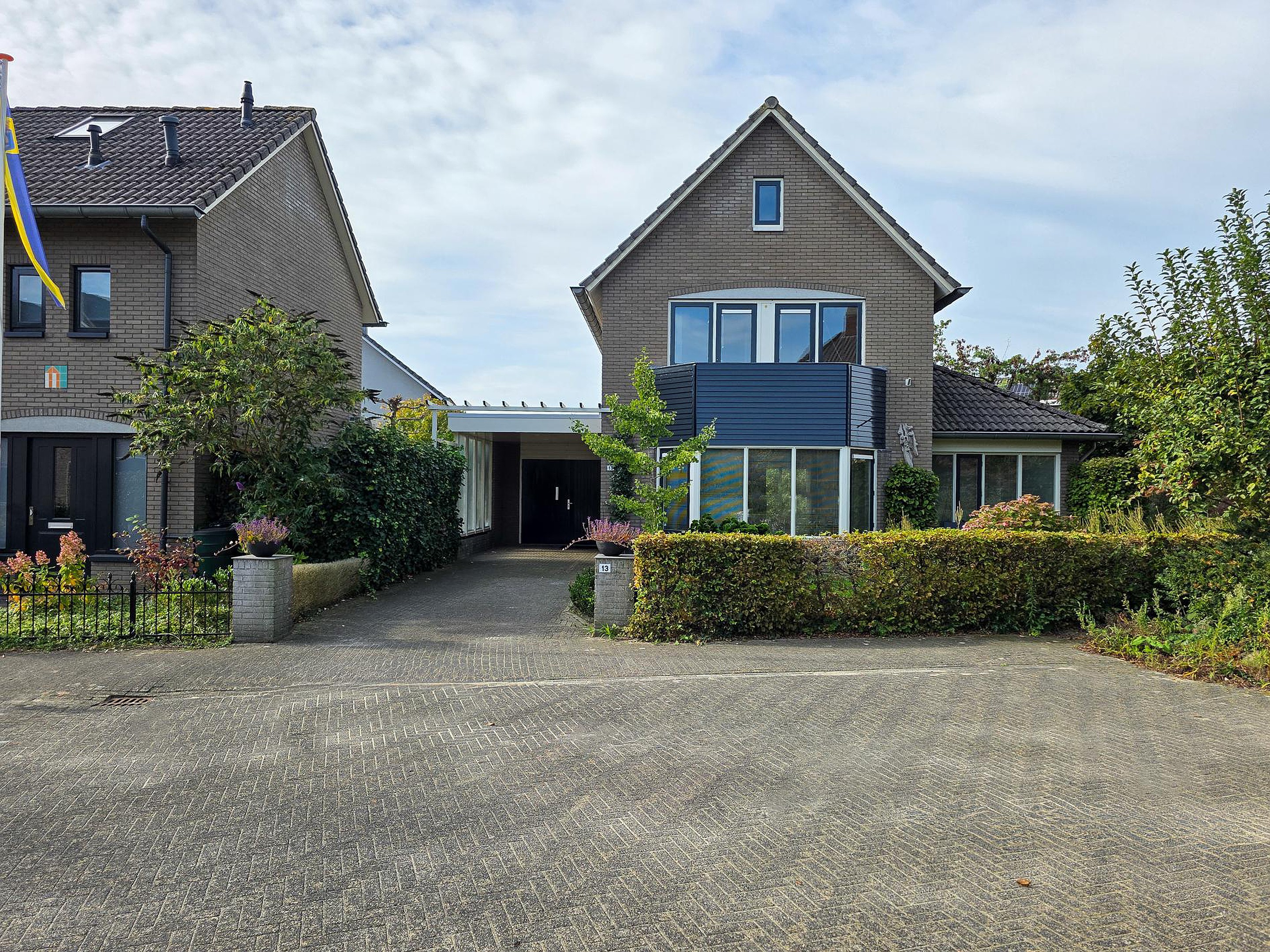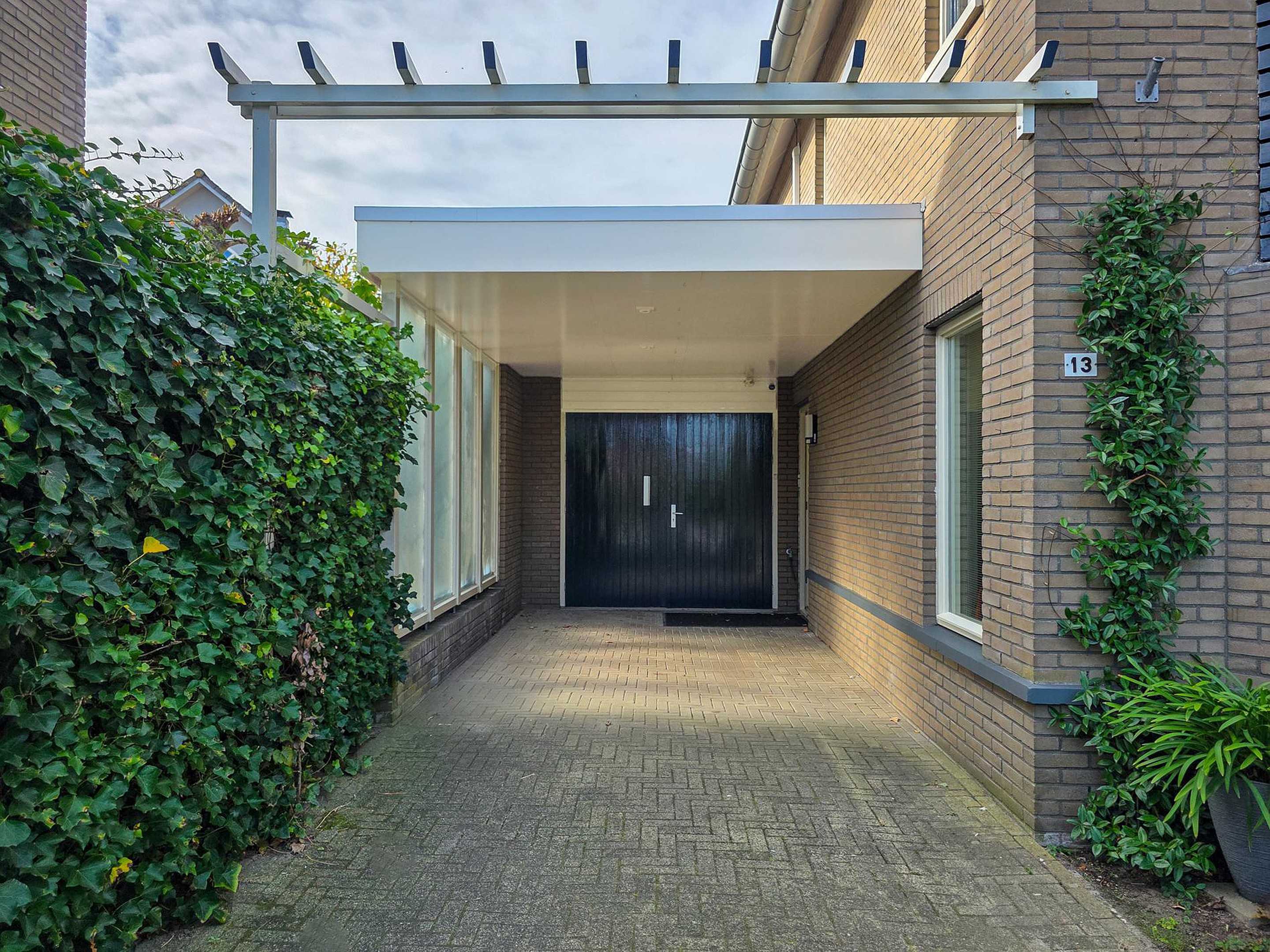 Tuin Aan de voorzijde van de woning is een diepe voortuin met ernaast de oprit met carport.