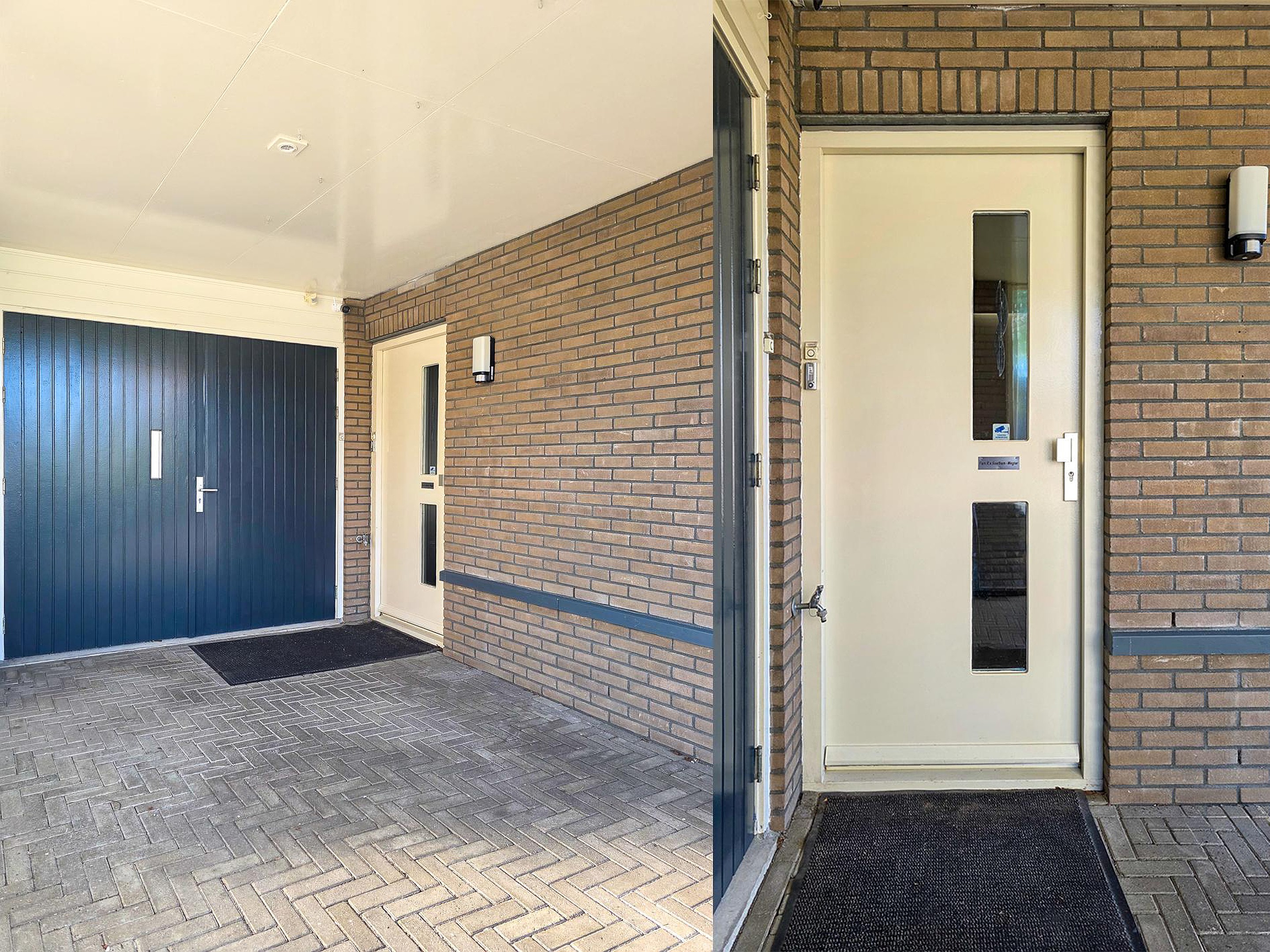 De inpandige garage met eigen ingang geeft toegang tot zowel de werkkamer als de bijkeuken.