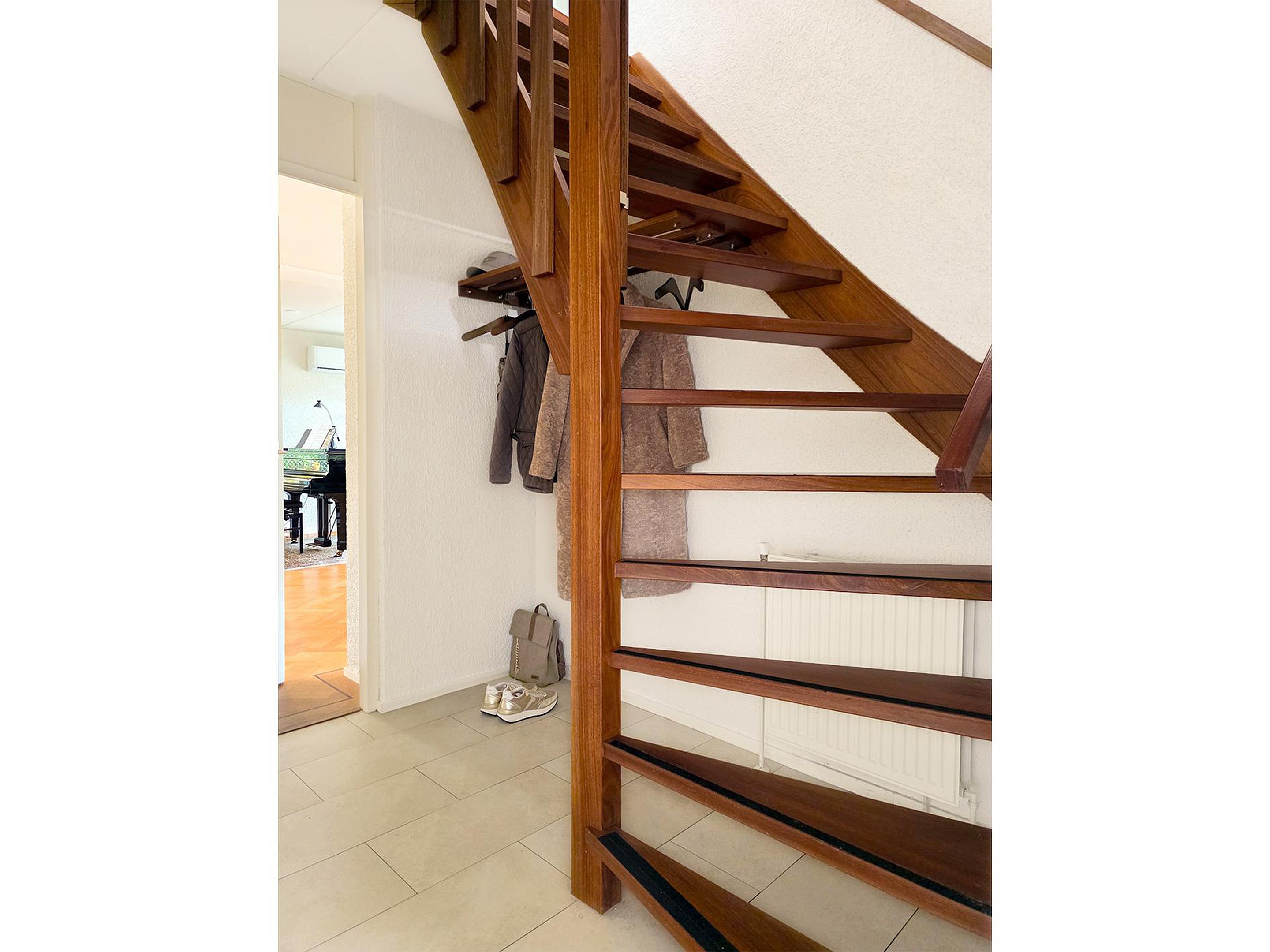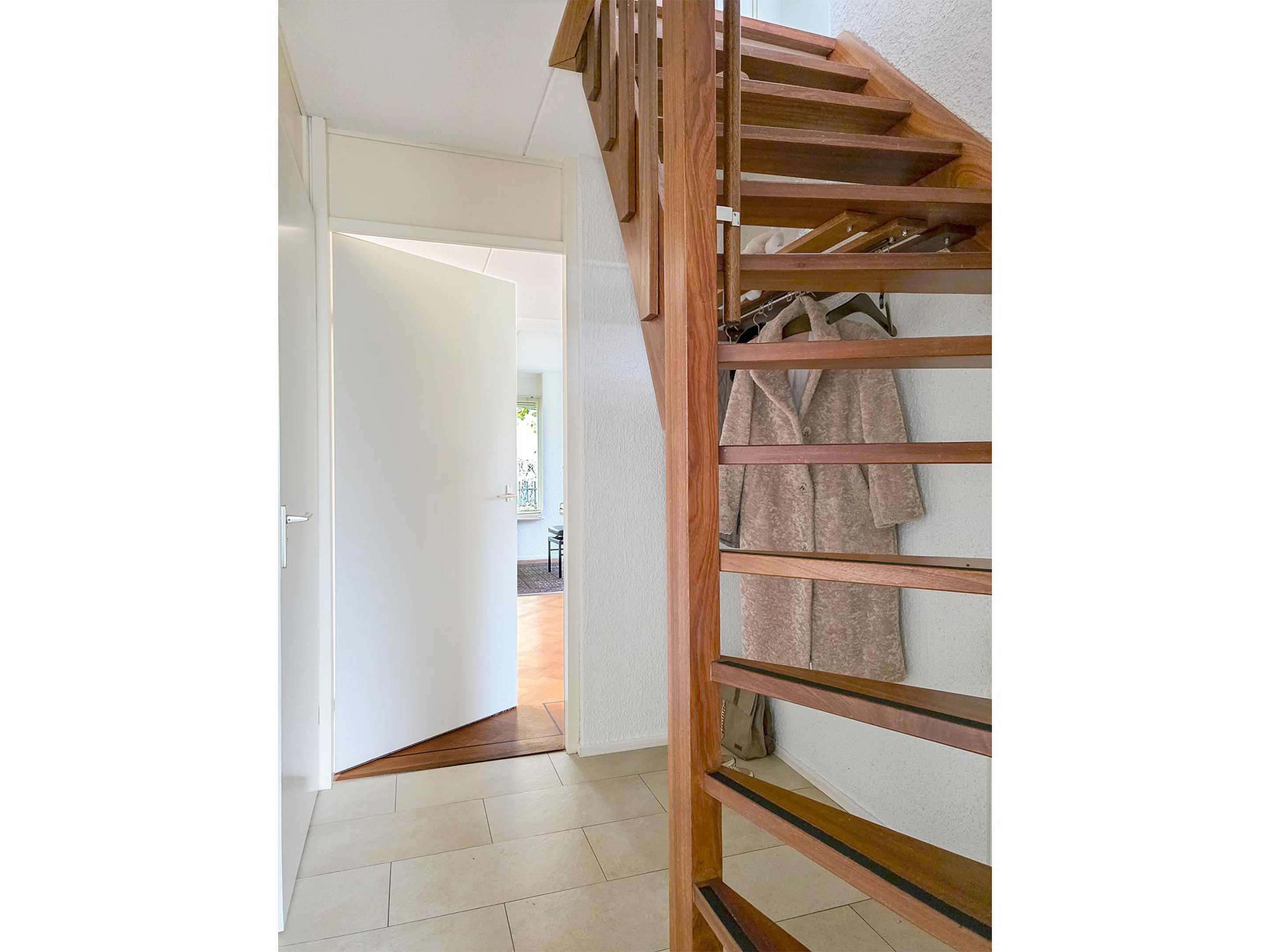 Begane grond Hal/entree, trapopgang, meterkast, toiletruimte met toilet en fonteintje, toegang tot de ruime woonkamer.