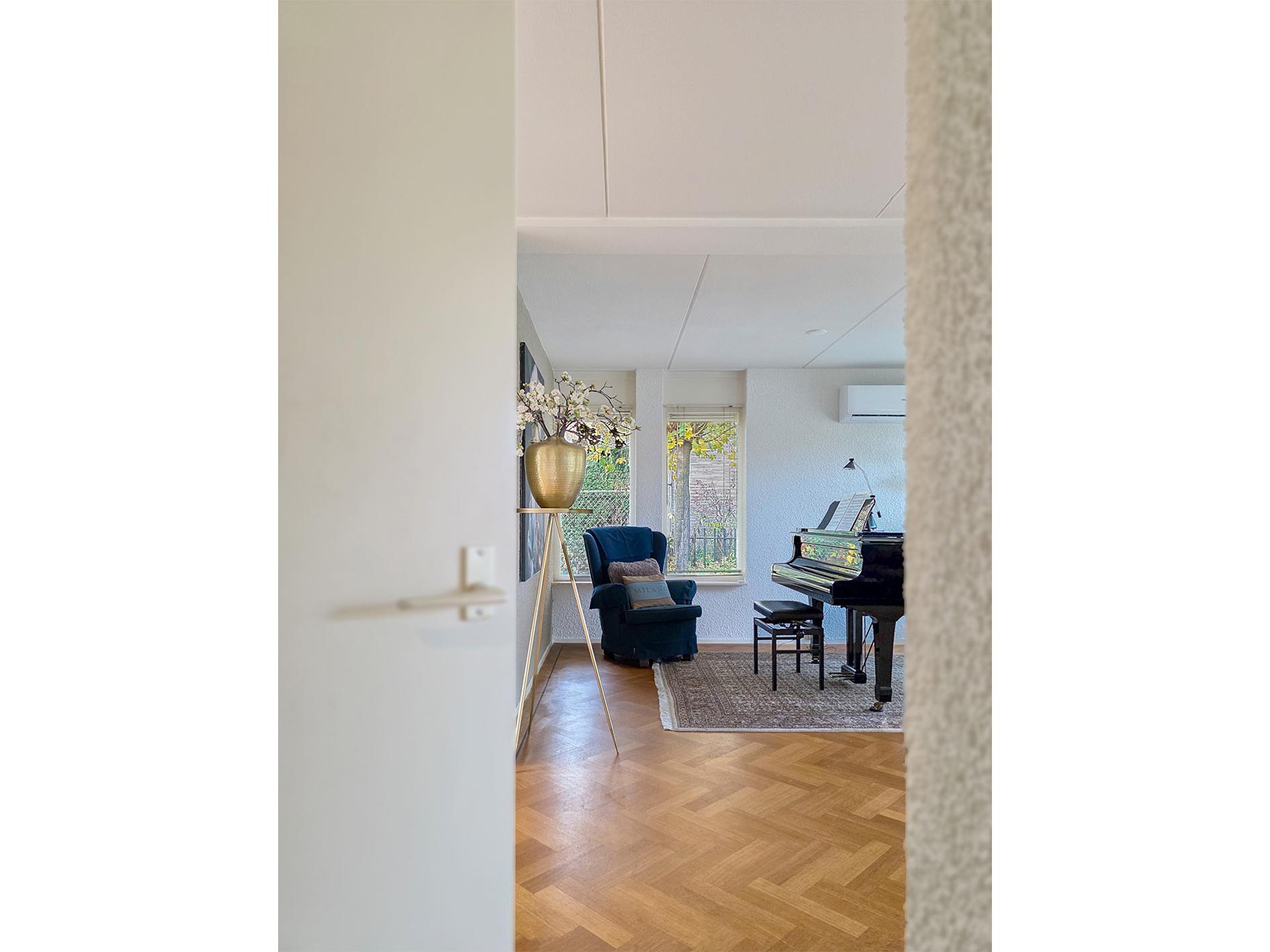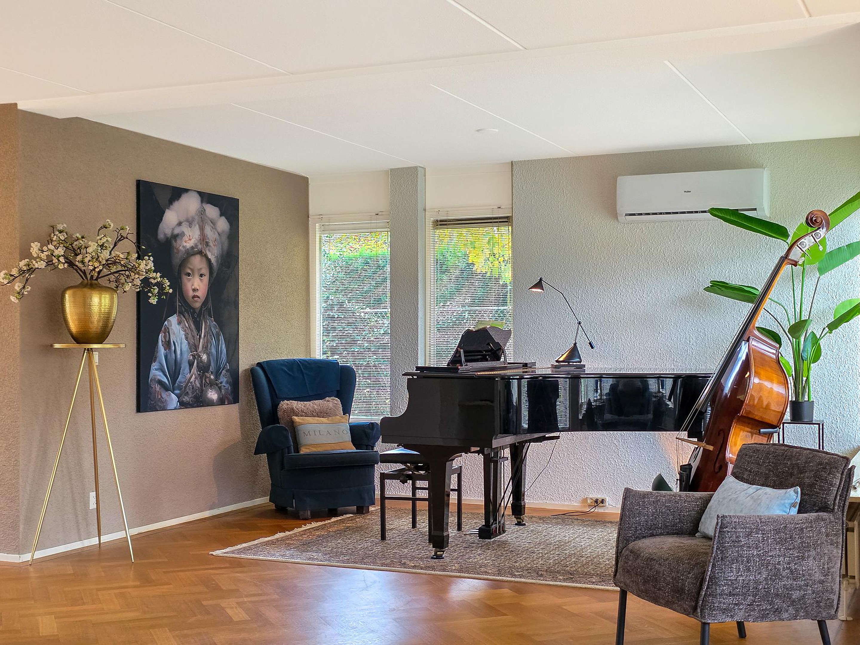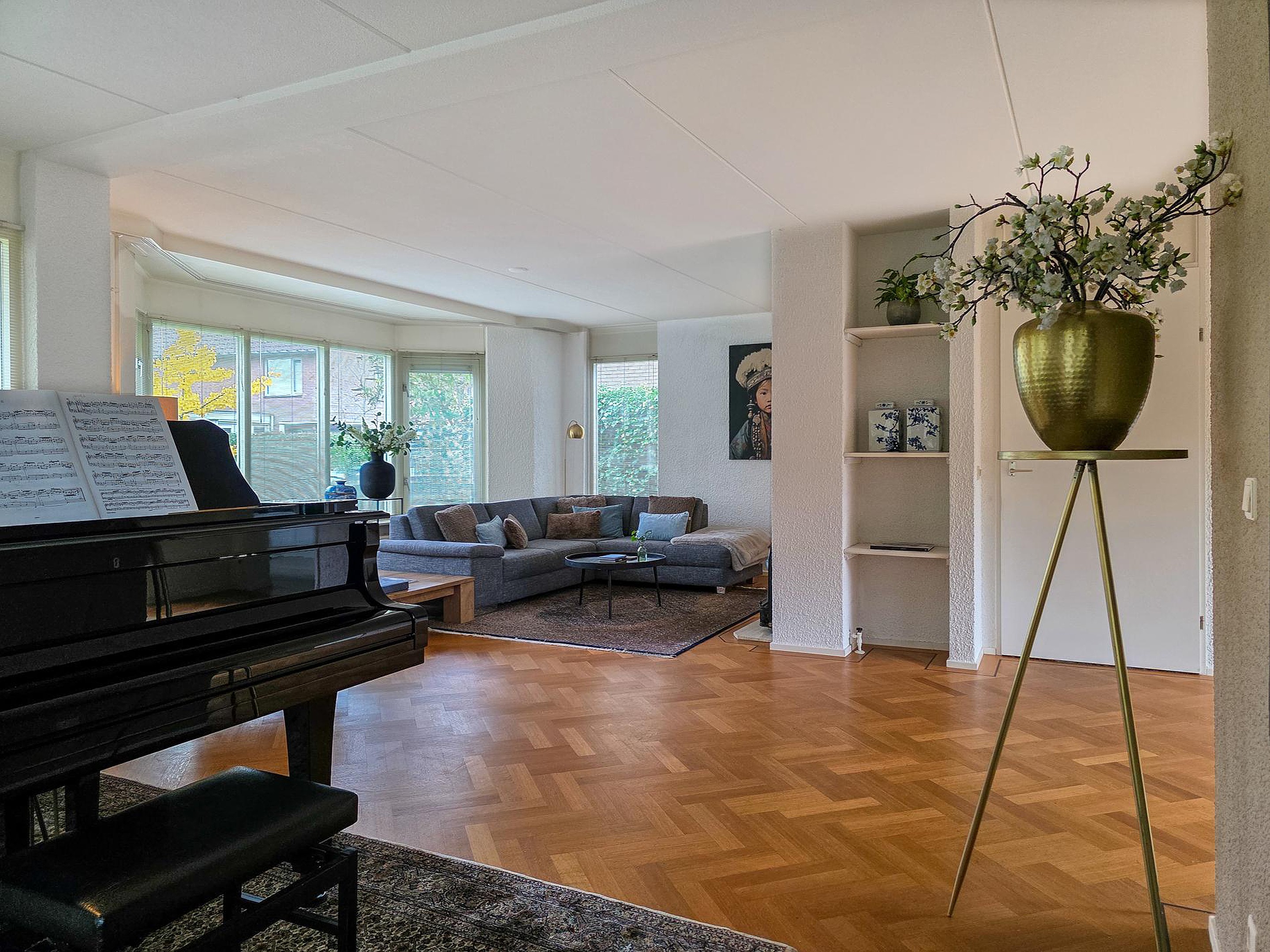 Zodra je het huis binnenstapt, valt meteen de royale indeling op. De lichte woonkamer vormt het hart van de woning en grenst direct aan een hobbykamer met zicht op de tuin. Ideaal voor wie creatief bezig wil zijn, of misschien wel met een boek wil wegdromen.