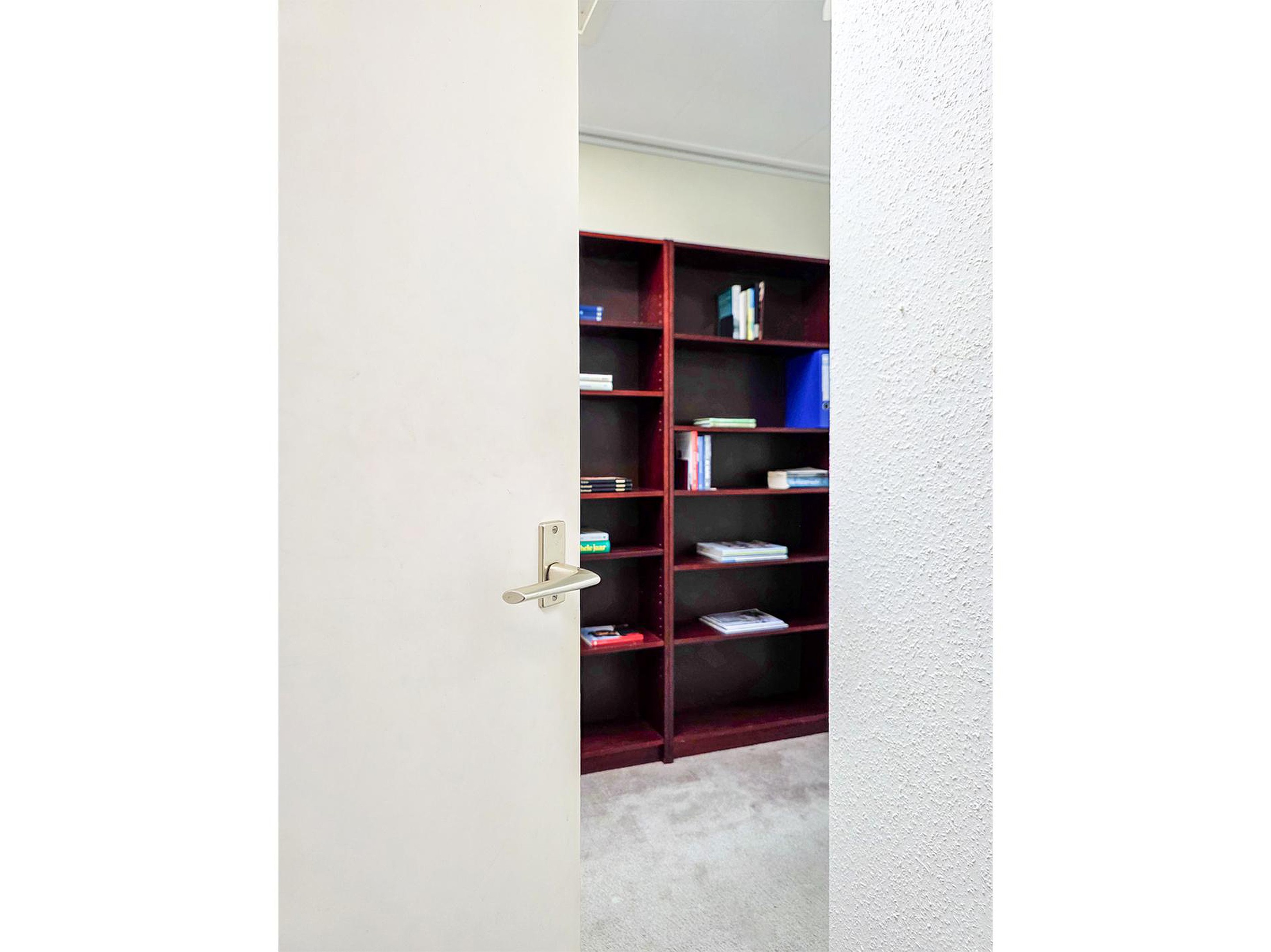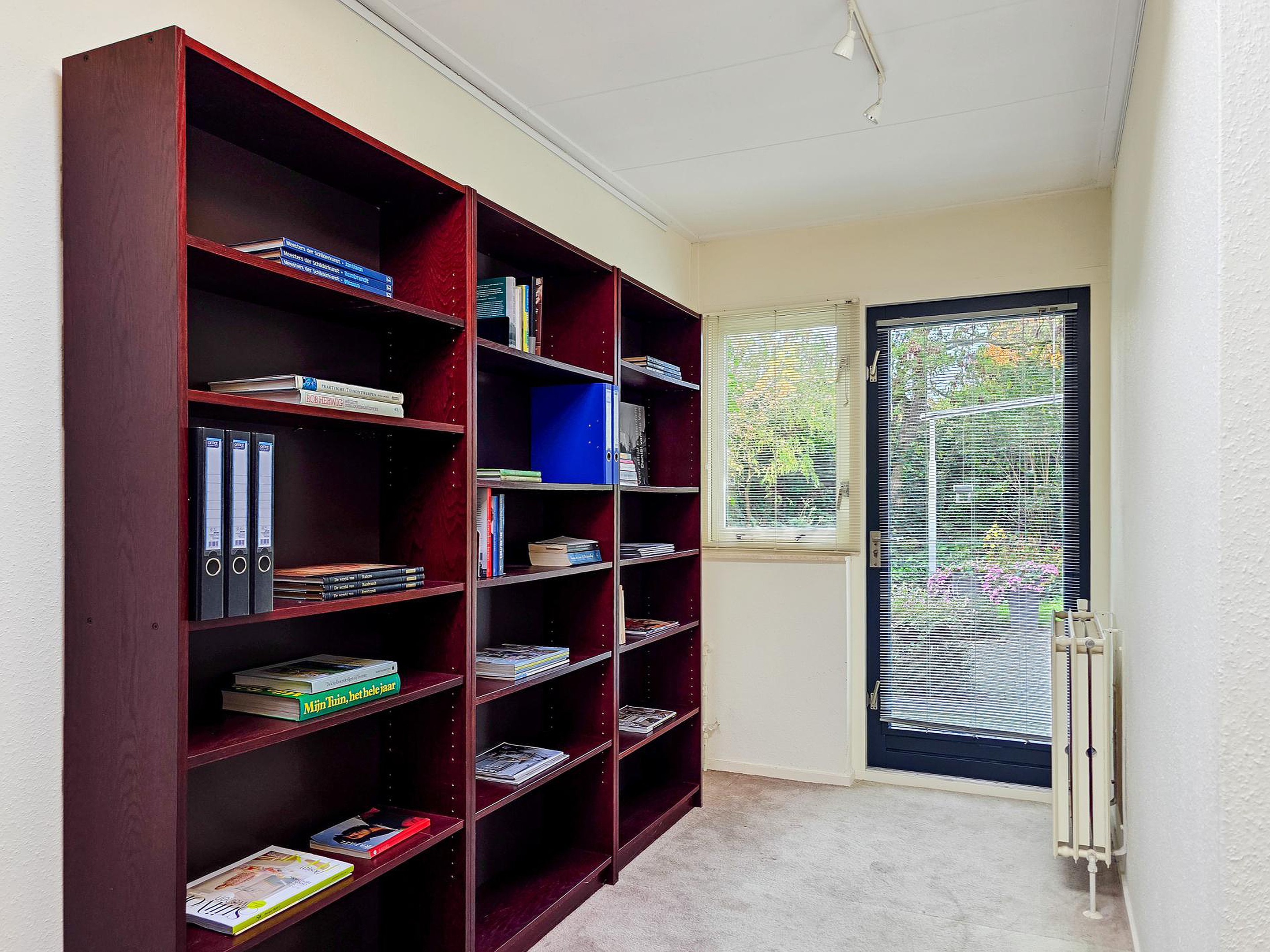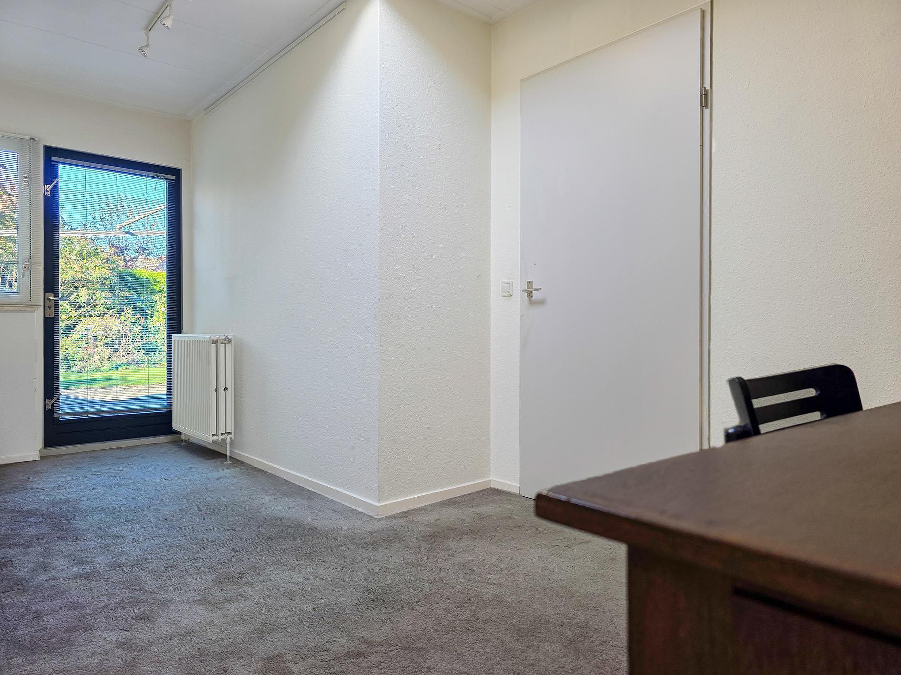 Vanuit de werkruimte te bereiken kantoorruimte. Ook de kantoorruimte heeft toegang tot de tuin.
