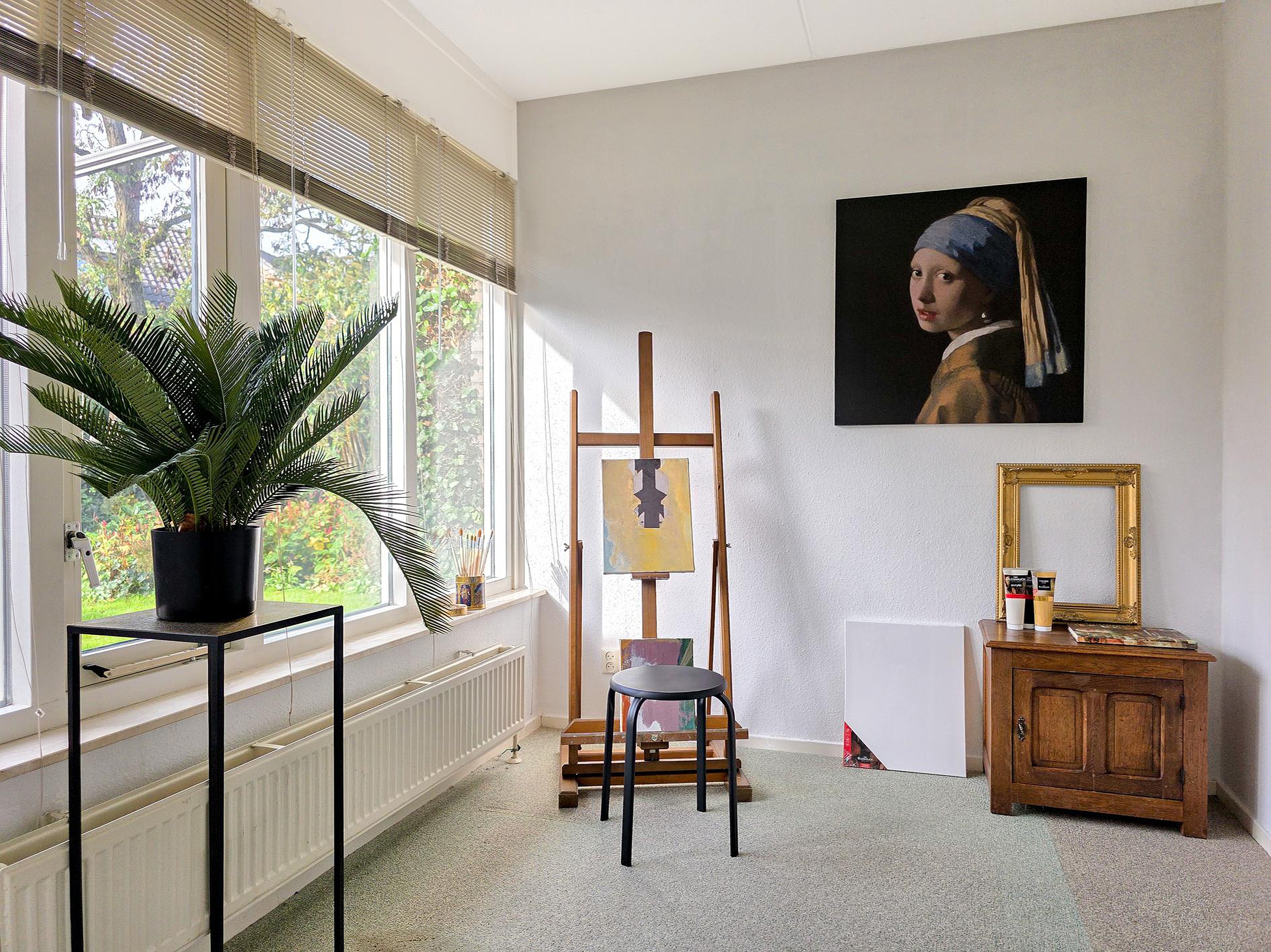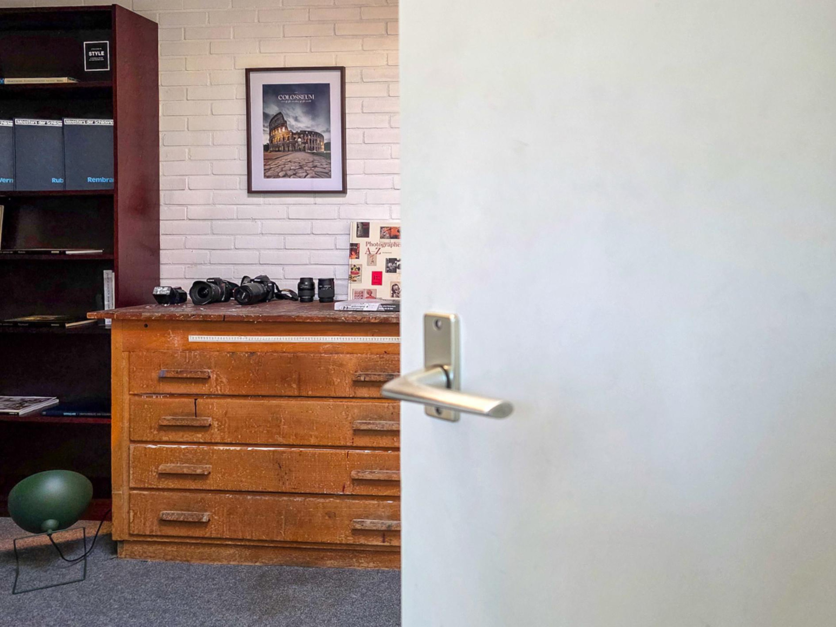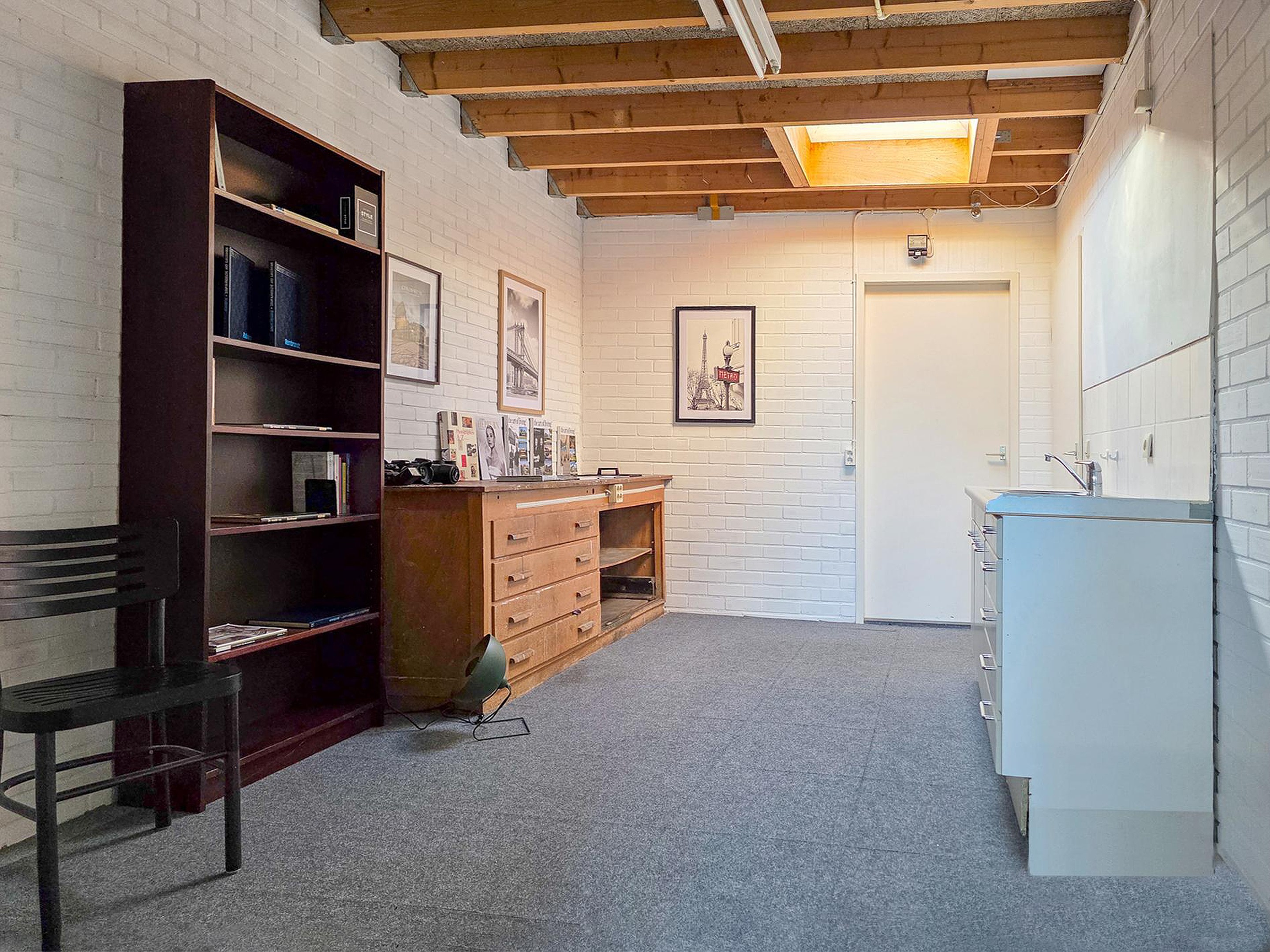 Vanuit de werkruimte te bereiken kantoorruimte. Ook de kantoorruimte heeft toegang tot de tuin.
