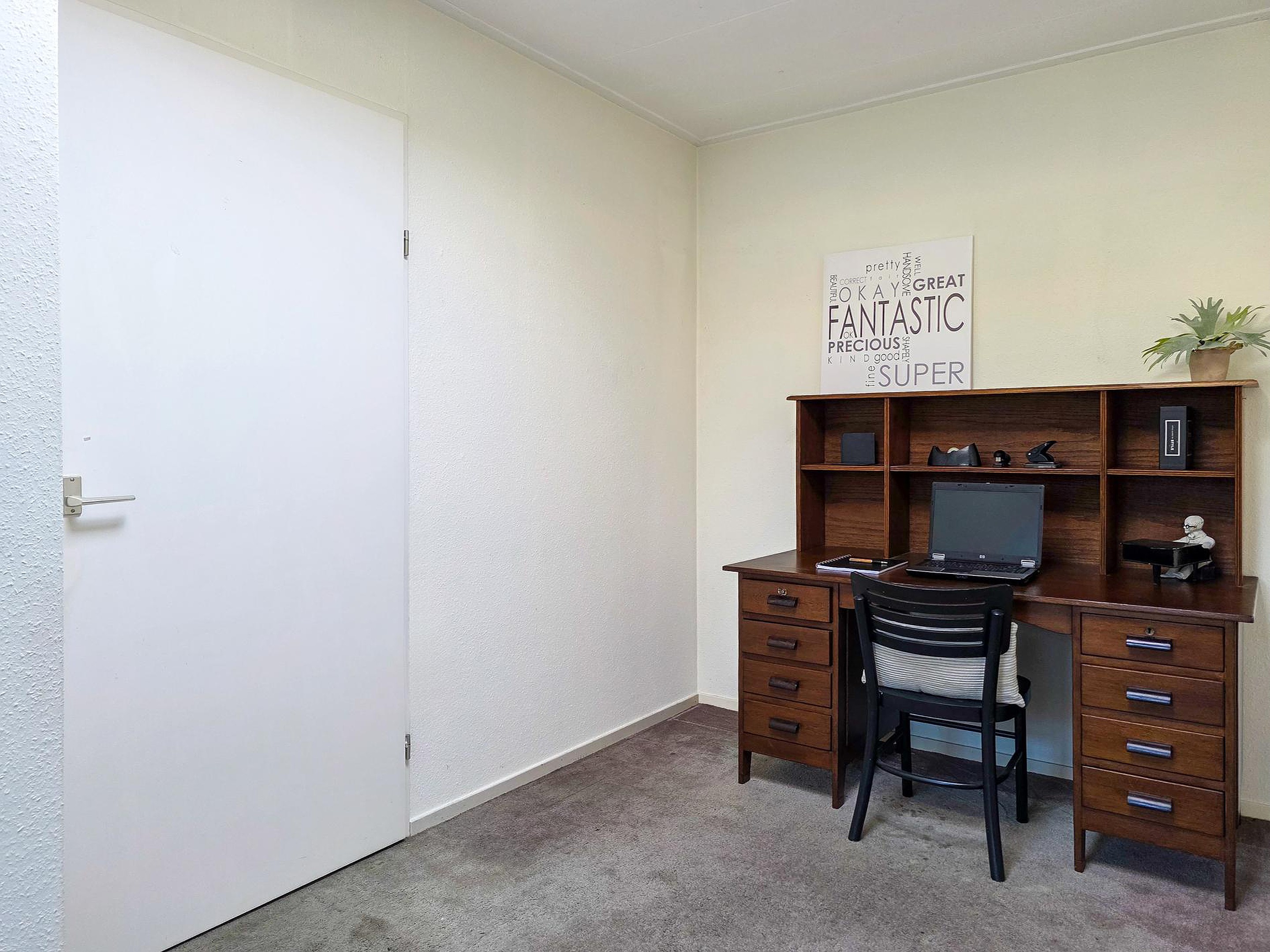 Aan de achterzijde bevindt zich nog een tweede kamer die gebruikt kan worden als werk- of studeerruimte. Of misschien wordt dit de slaapkamer of speelkamer voor de (klein)kinderen? Hier zijn werkelijk tal van opties denkbaar.
