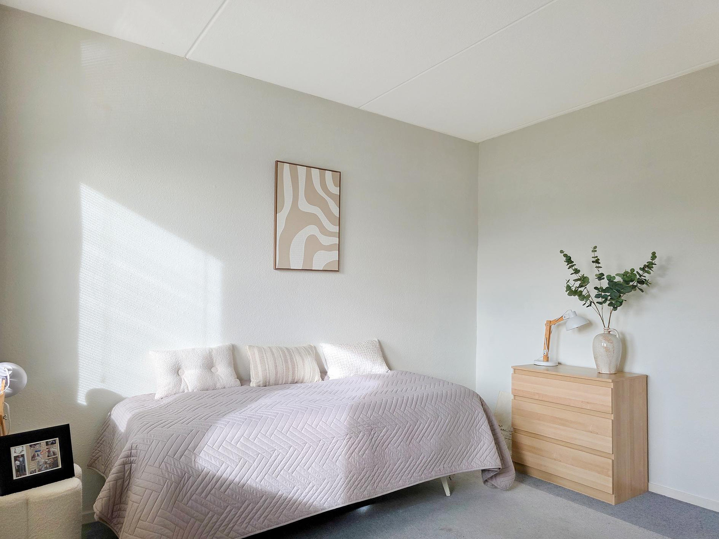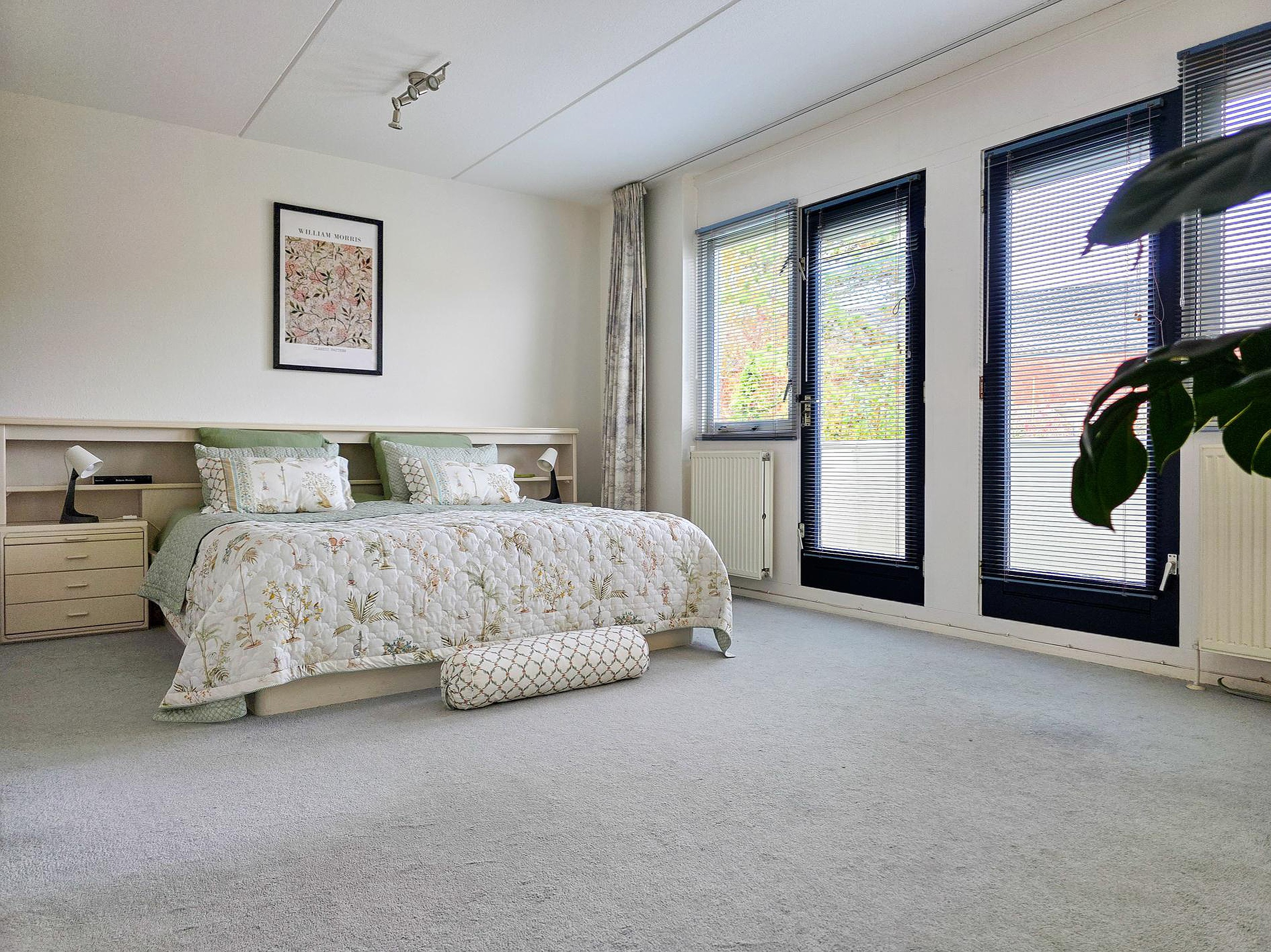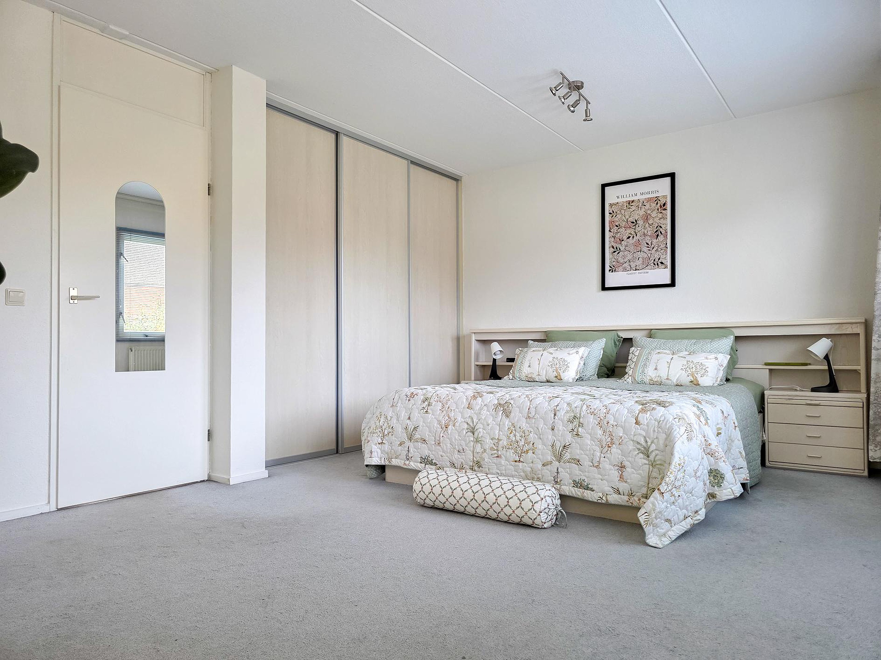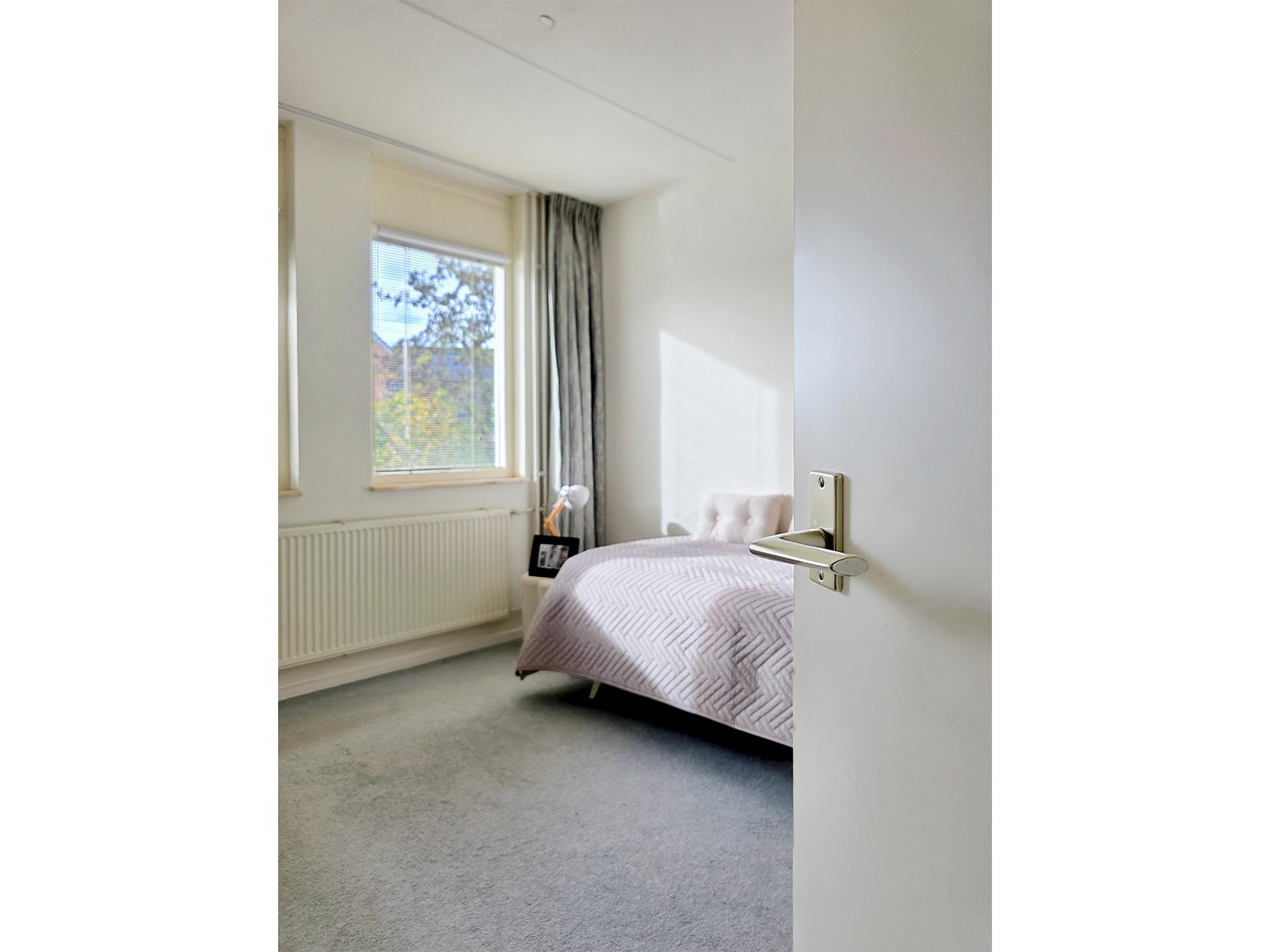 De slaapkamer aan de voorzijde kan op simpele wijze opgedeeld worden in de oorspronkelijke 2 slaapkamers.