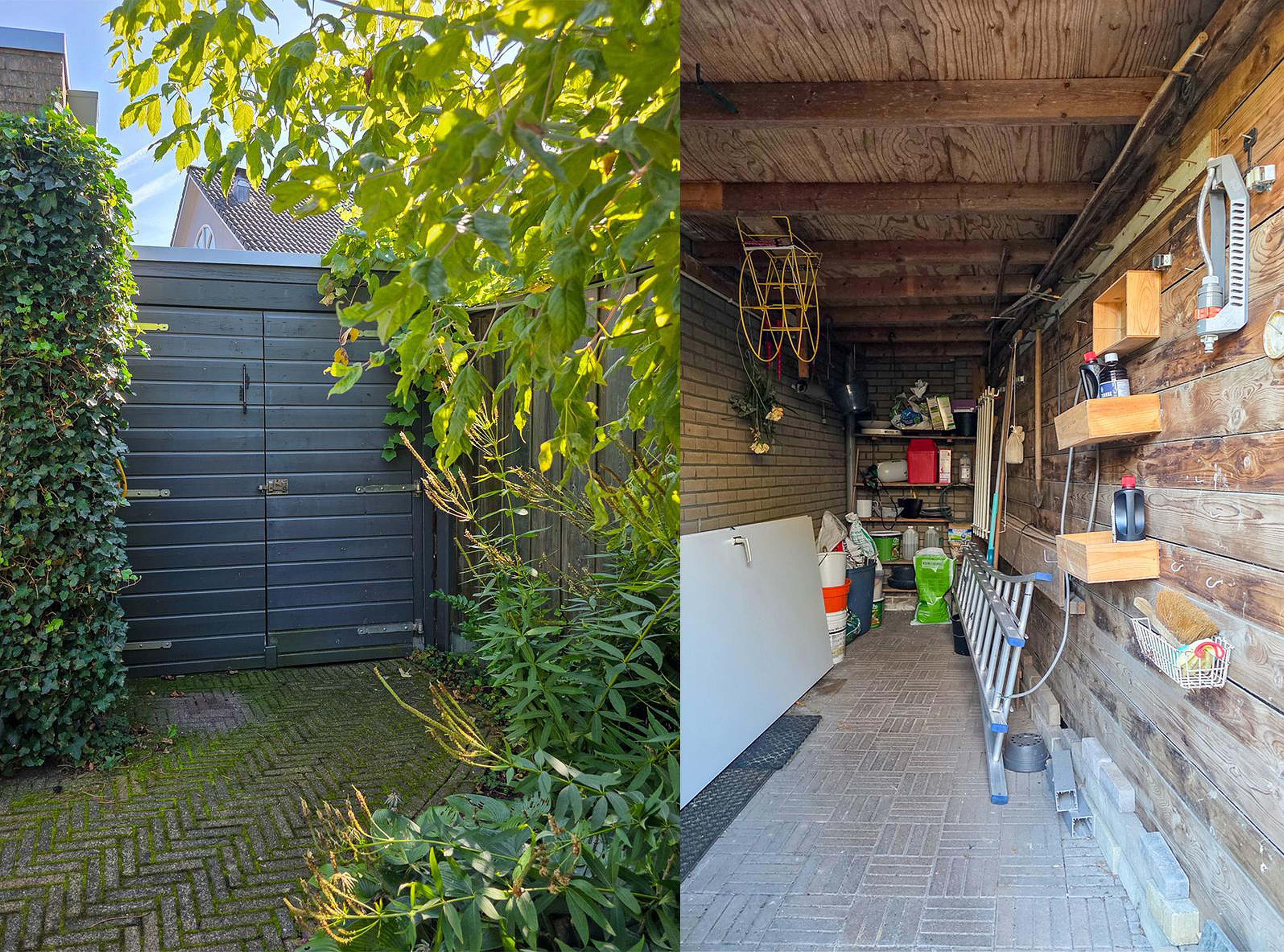 De garage is momenteel ingericht als praktische werkruimte en biedt volop gelegenheid om bijvoorbeeld een kantoor aan huis te realiseren. Door de ruime opzet is deze plek net zo goed geschikt voor praktijk aan huis of een mooie fitnessruimte.