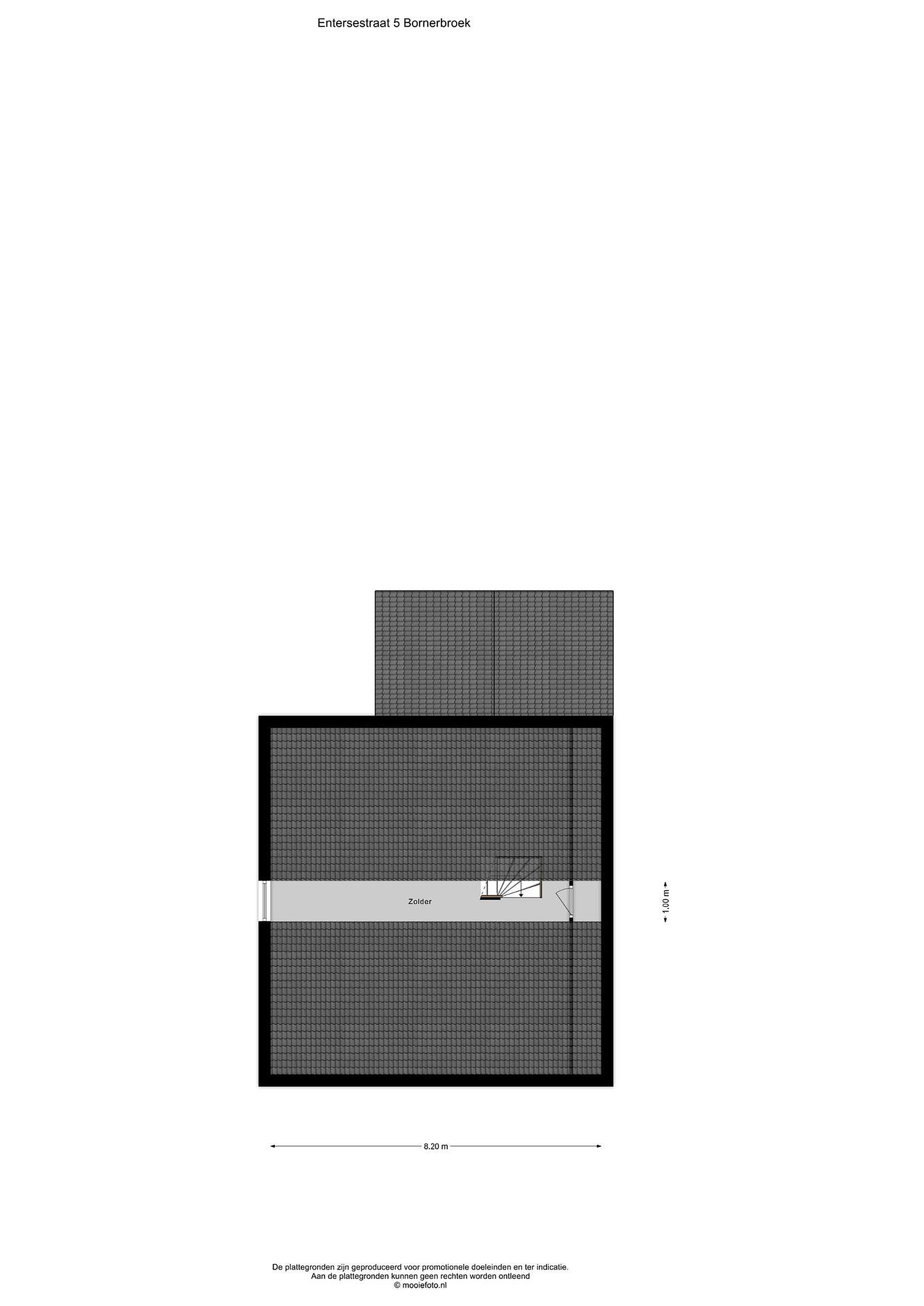 Middels vaste trap bereikbare bergzolder, welke voorzien is van een dakraam.