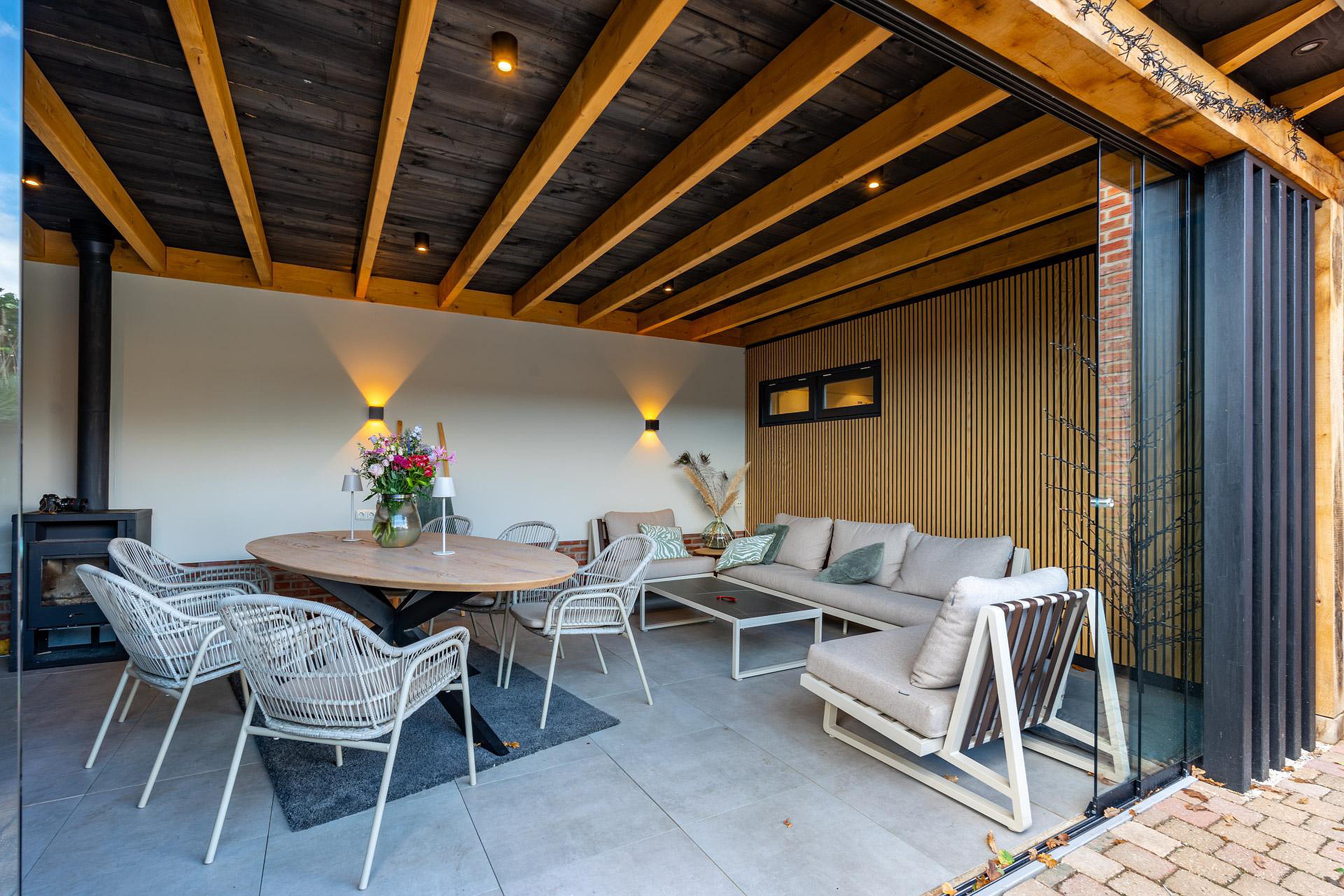 - Tuinkamer met houtkachel en elektra;