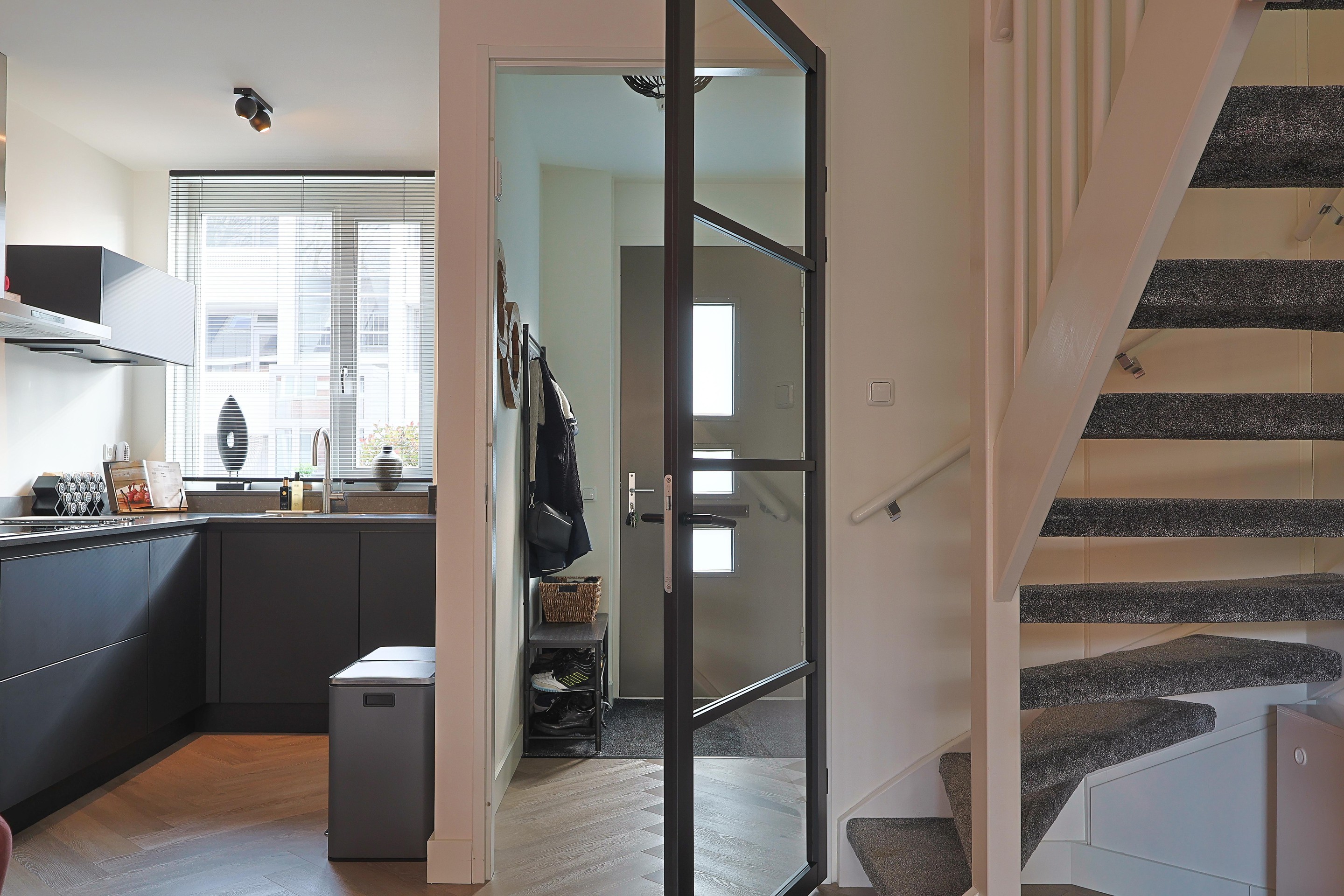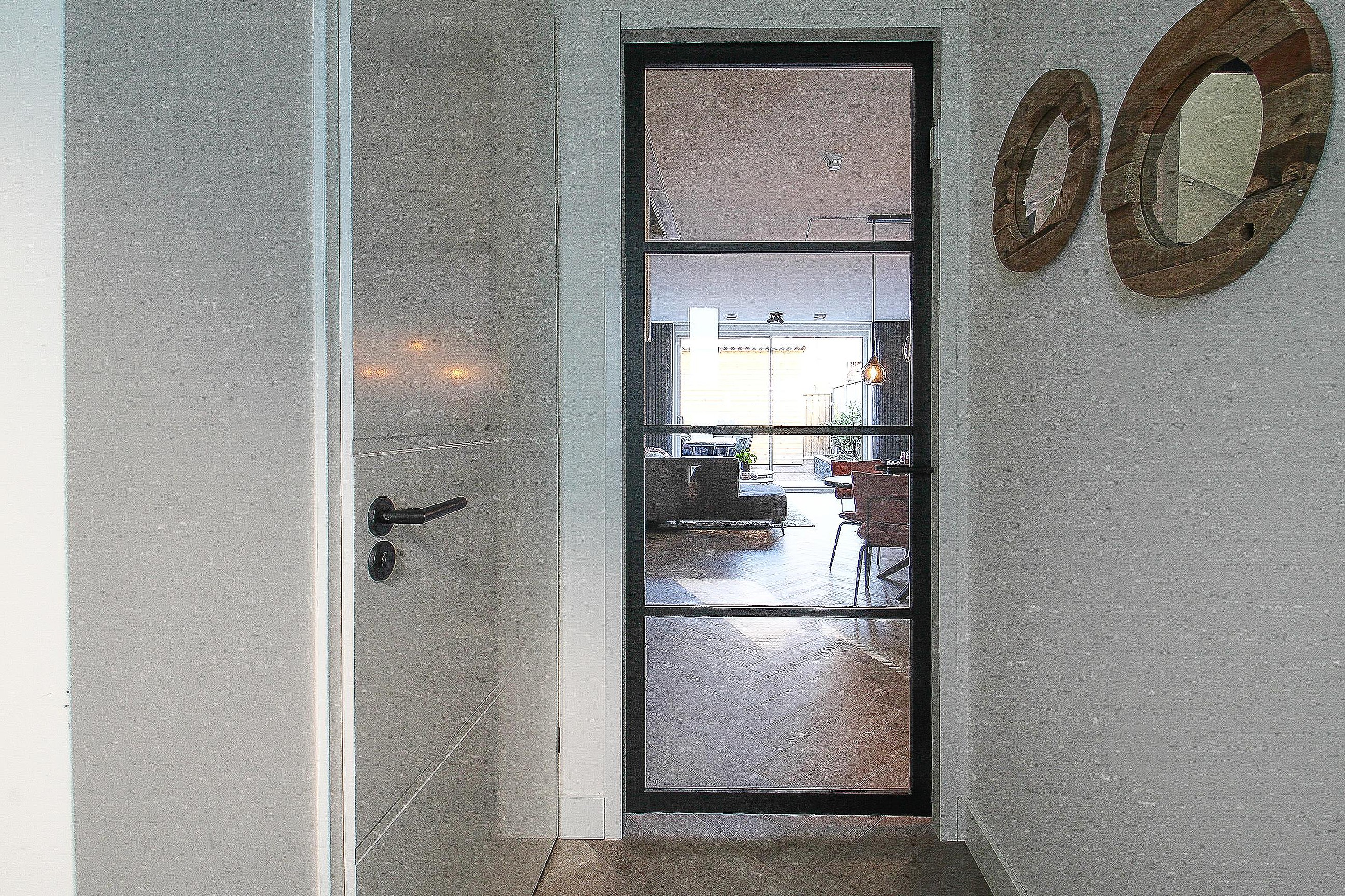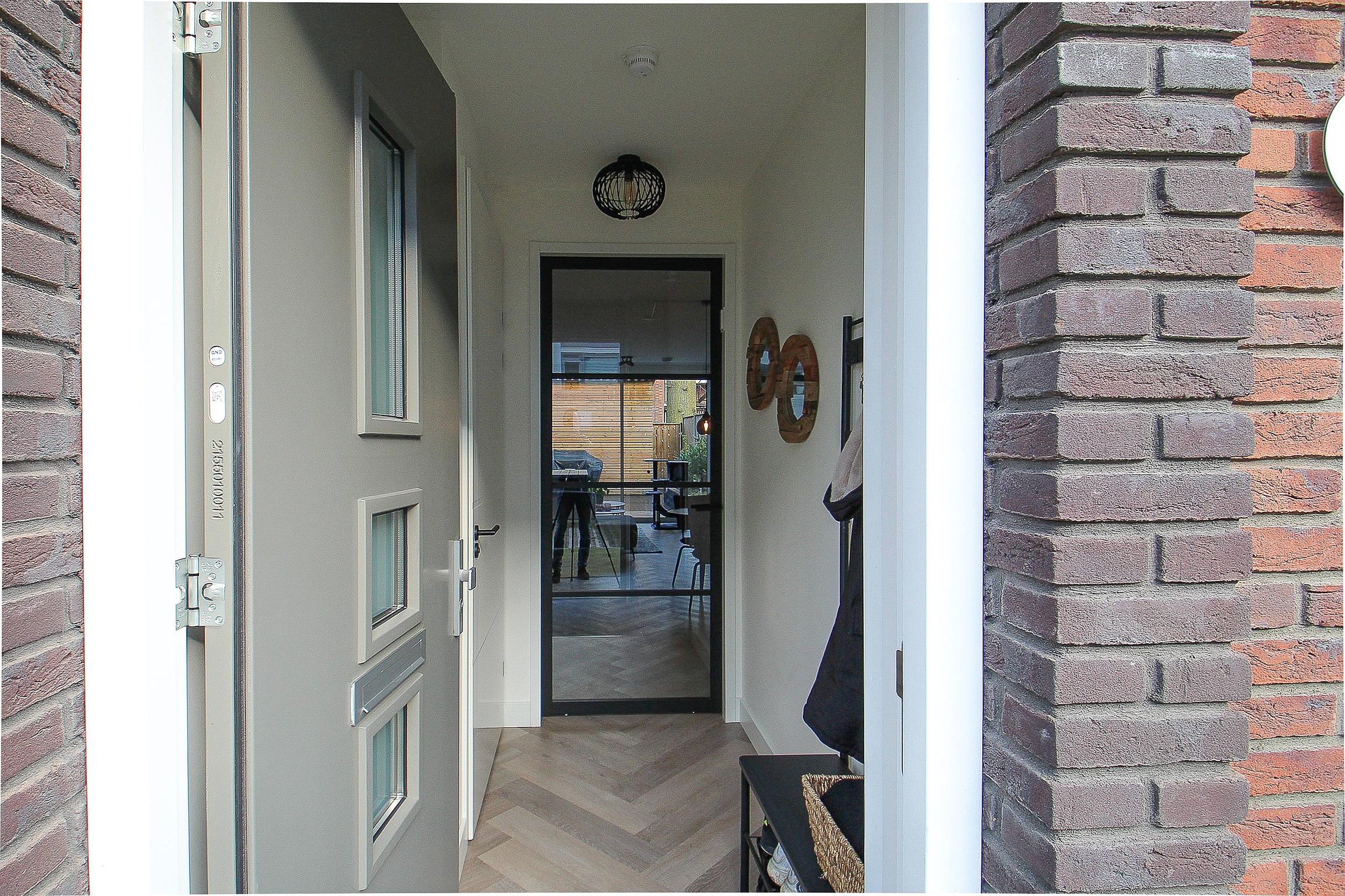 Begane grond Entree/hal met toiletruimte, meterkast en een mooie glazen deur naar de fijne, ruime woonkamer.