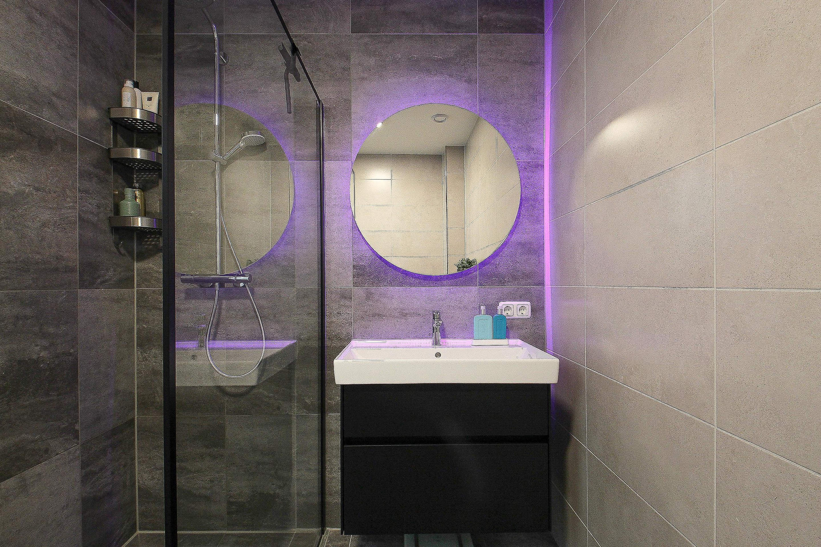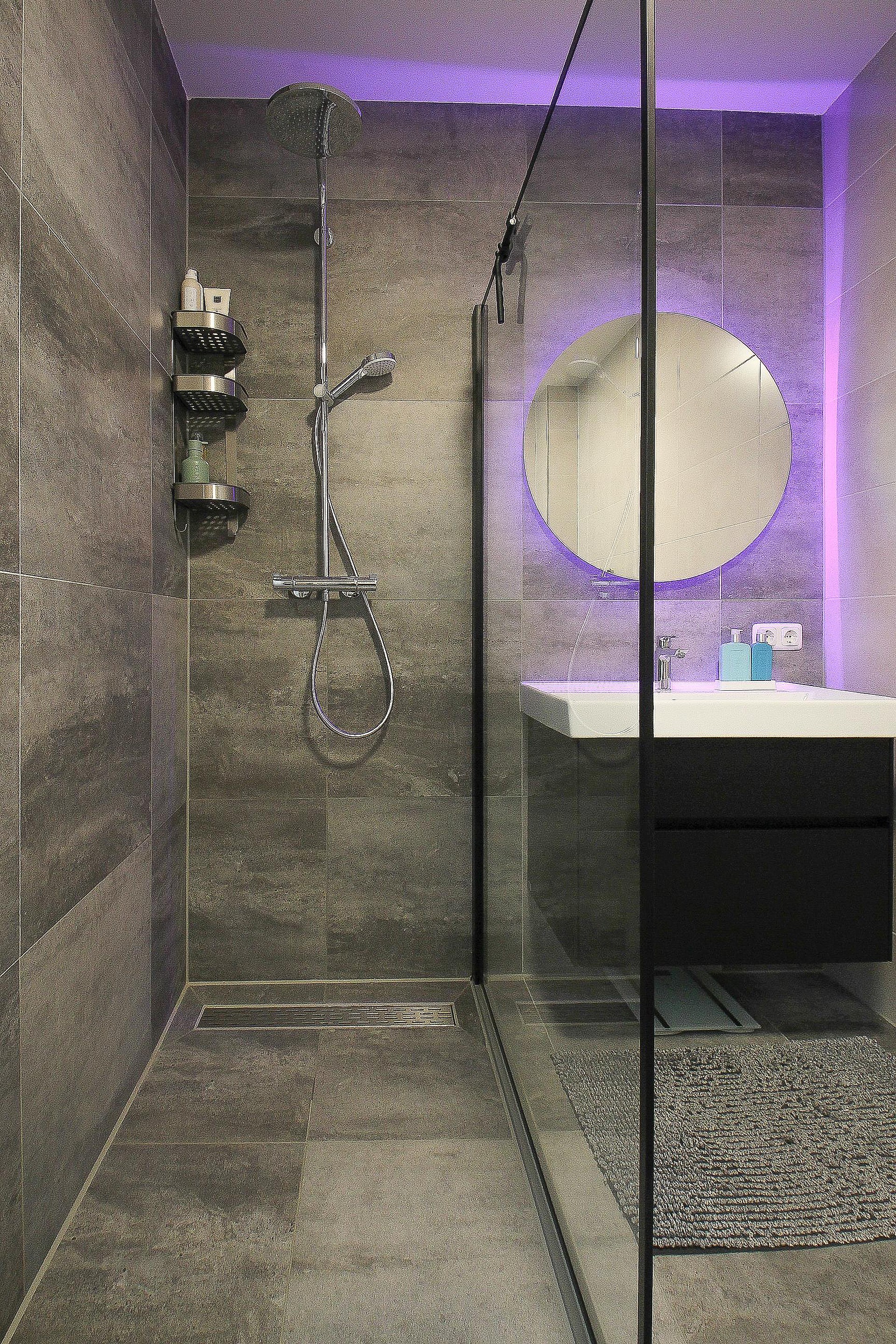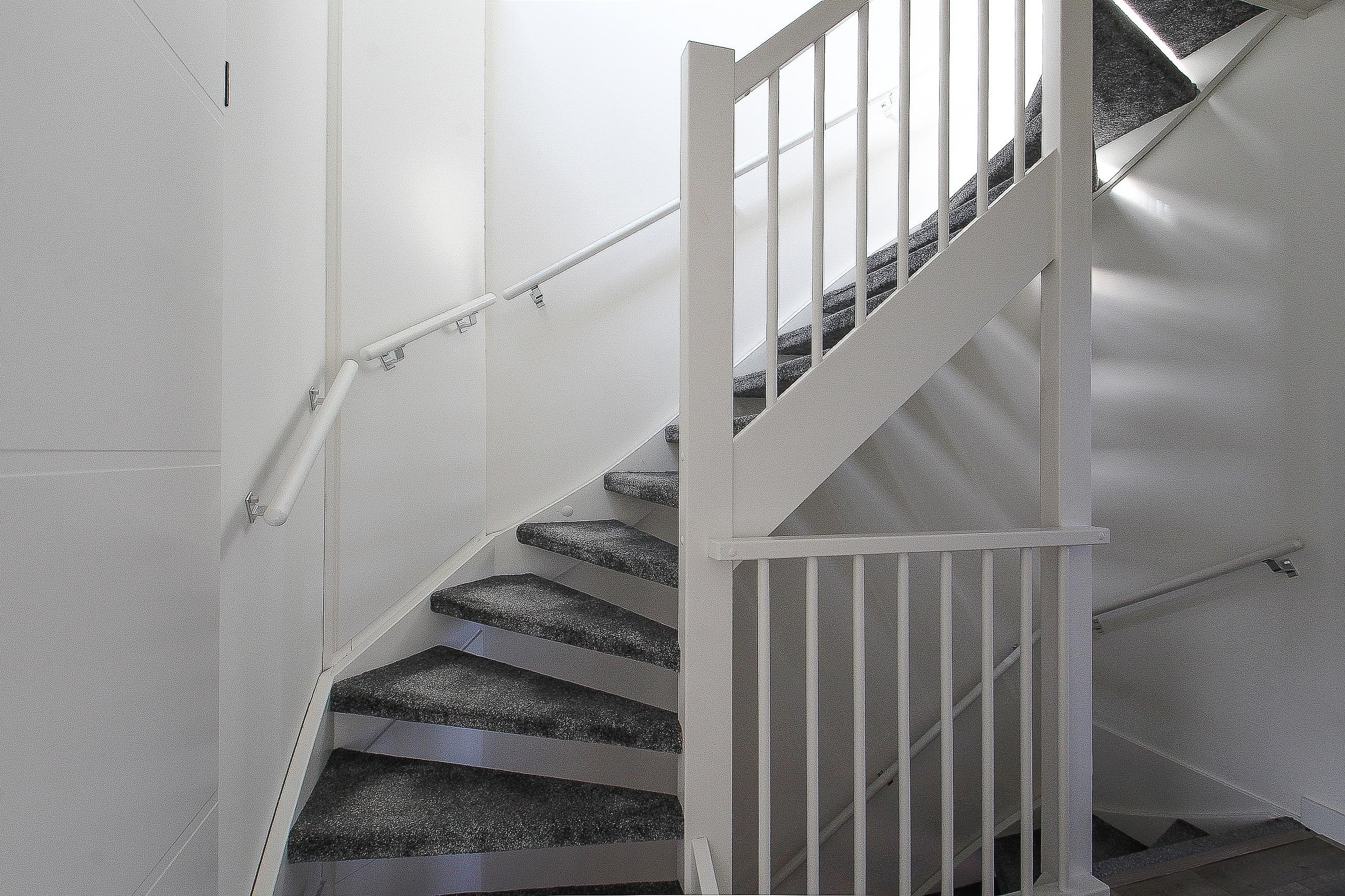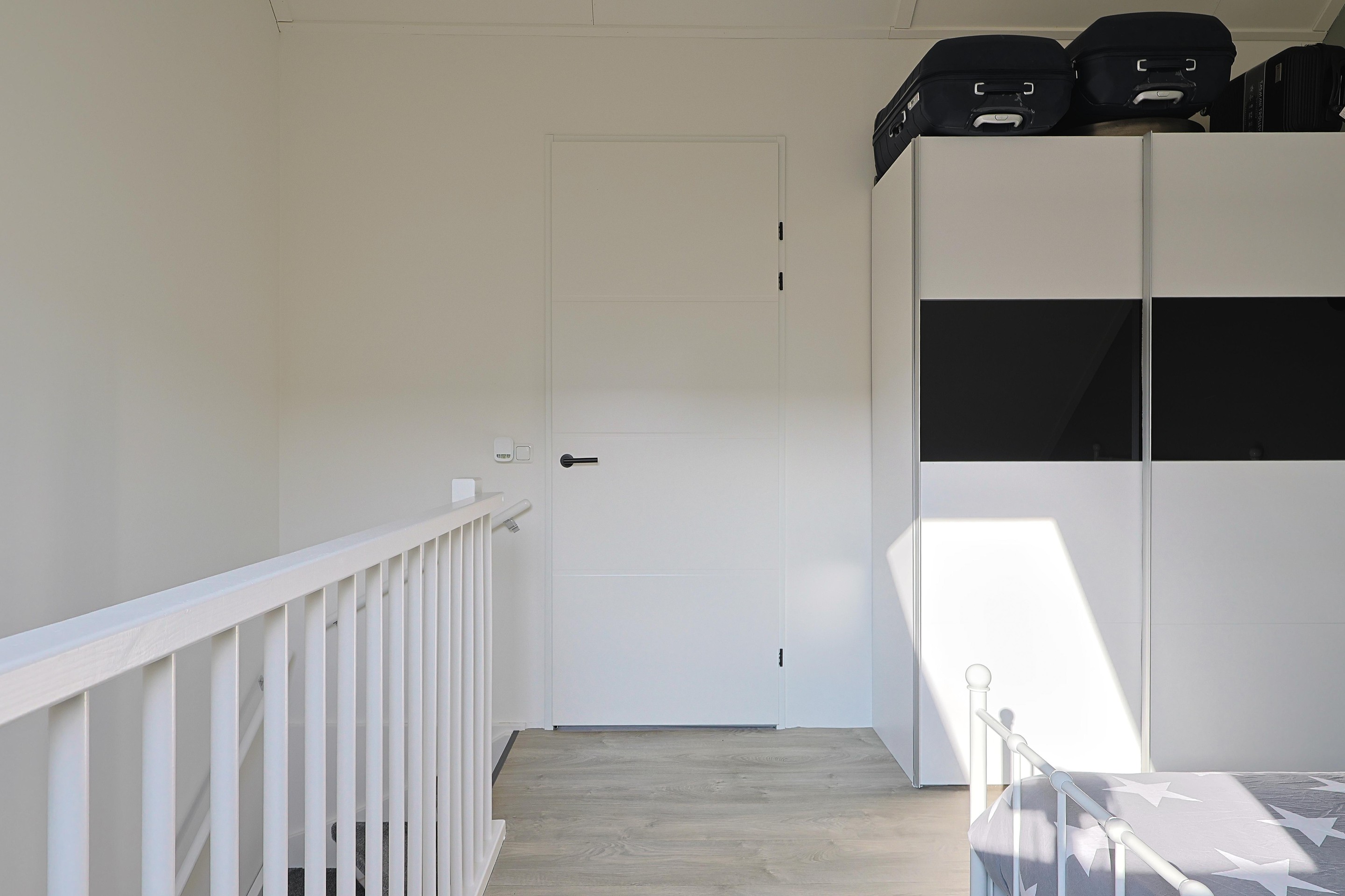 Eerste verdieping Overloop, drie slaapkamers en een moderne badkamer met design radiator, hangcloset, wastafel in meubel en comfortabele inloopdouche.