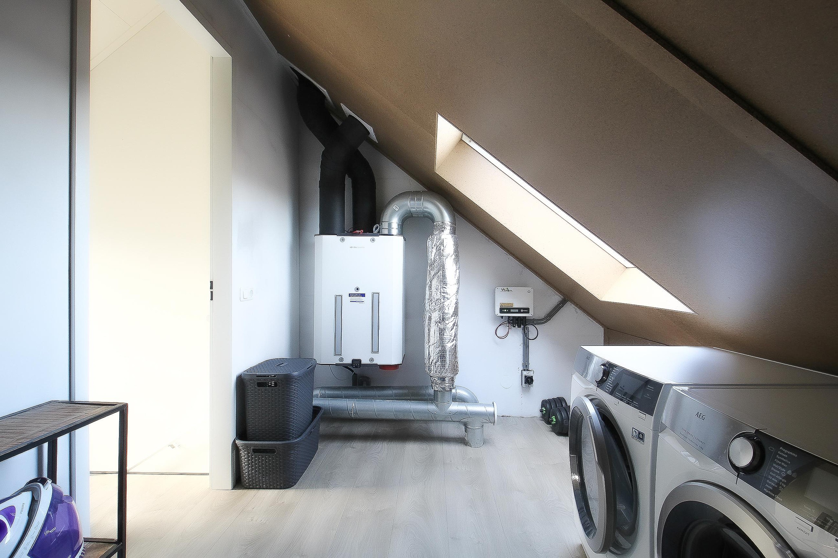 Tweede verdieping De tweede verdieping is voorzien van een open ruimte (vierde slaapkamer) met dakraam en een grote wasruimte met de boiler, warmte pomp, WTW installatie, witgoedaansluitingen en dakraam.