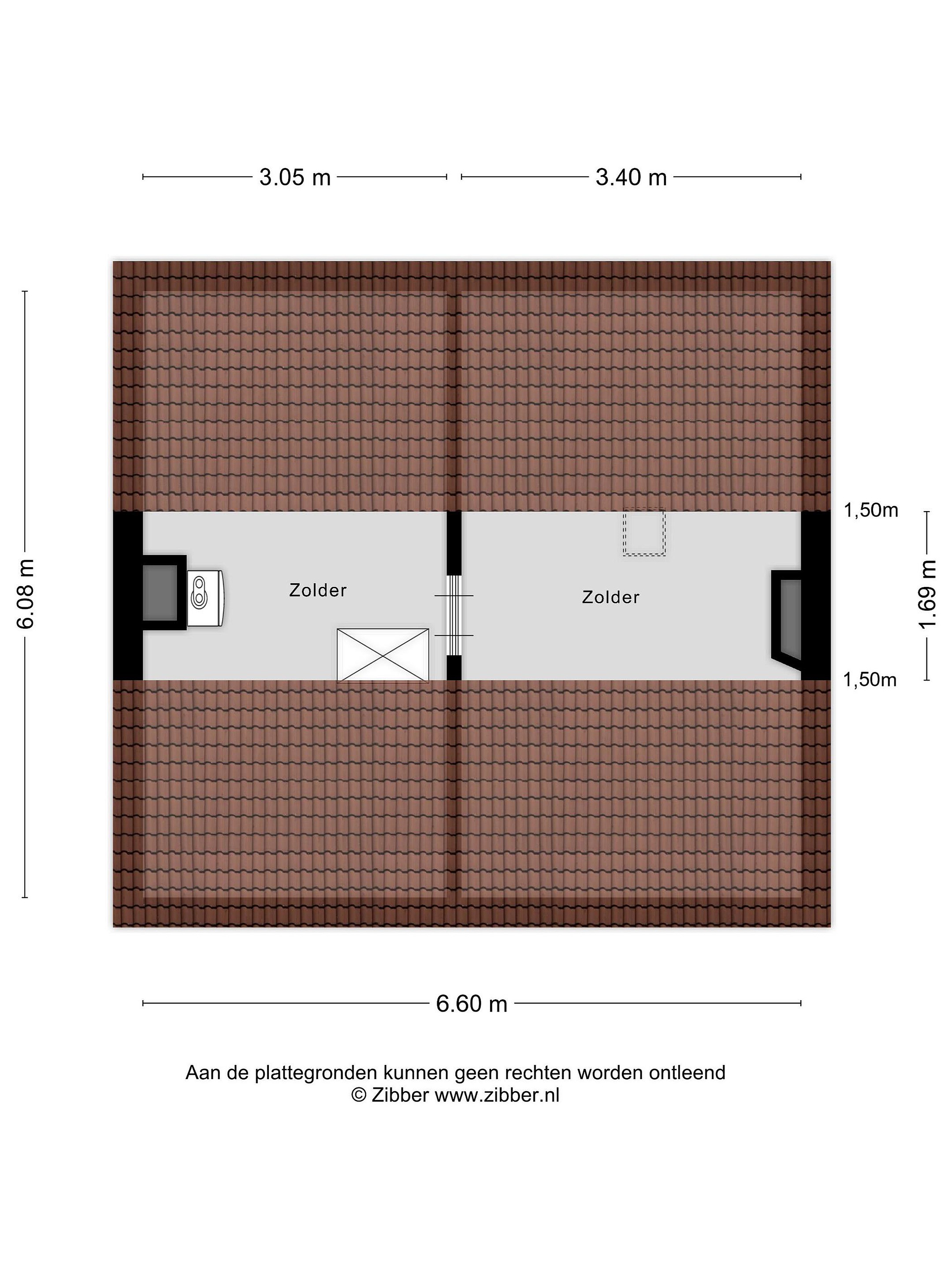 Via een vlizotrap bereikt u de voorzolder met cv-installatie. De achterzolder, momenteel in gebruik als bergzolder, beschikt over een dakraam en biedt mogelijkheden voor uitbreiding — bijvoorbeeld een extra slaapkamer na het plaatsen van een vaste trap en dakopbouw.