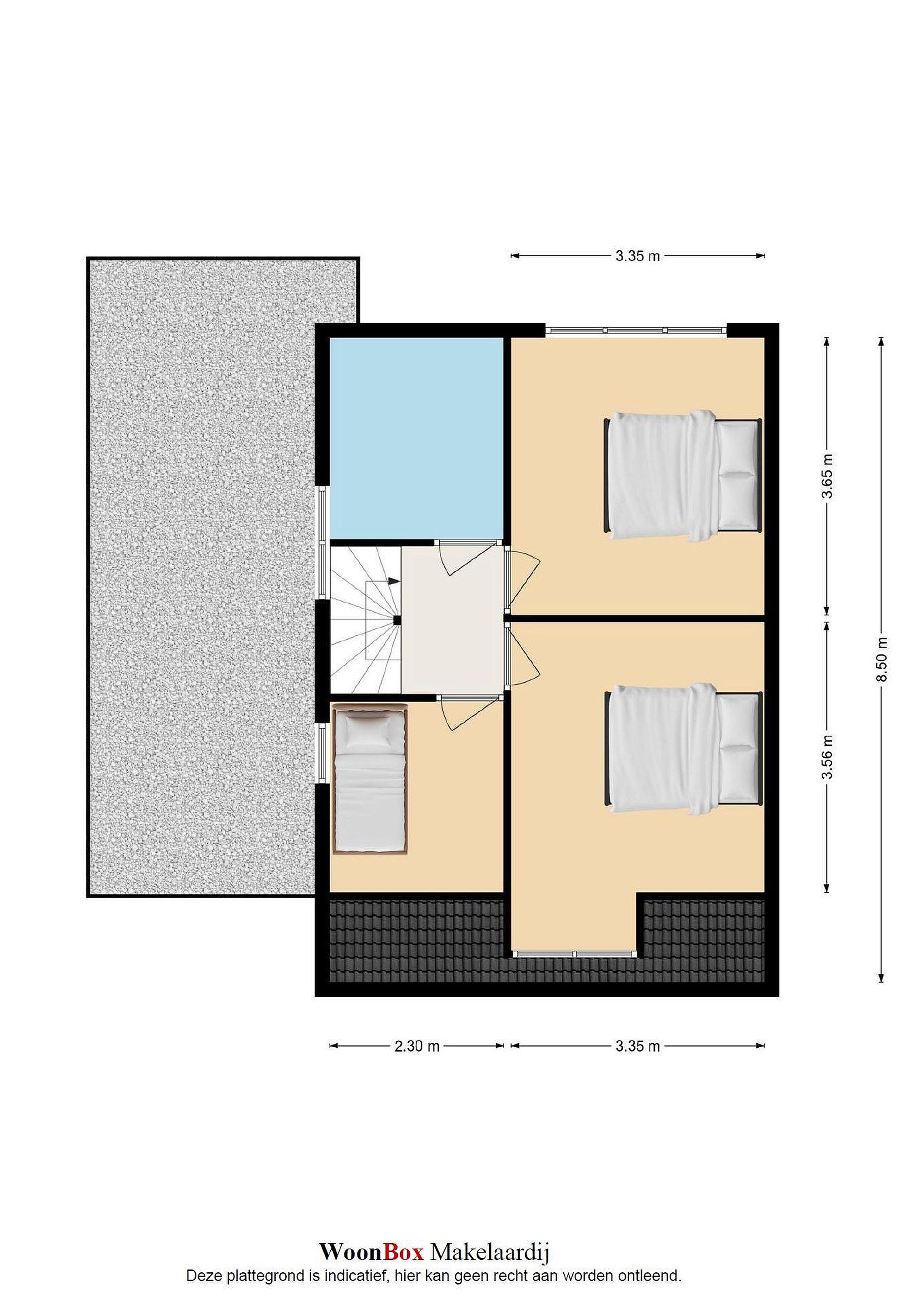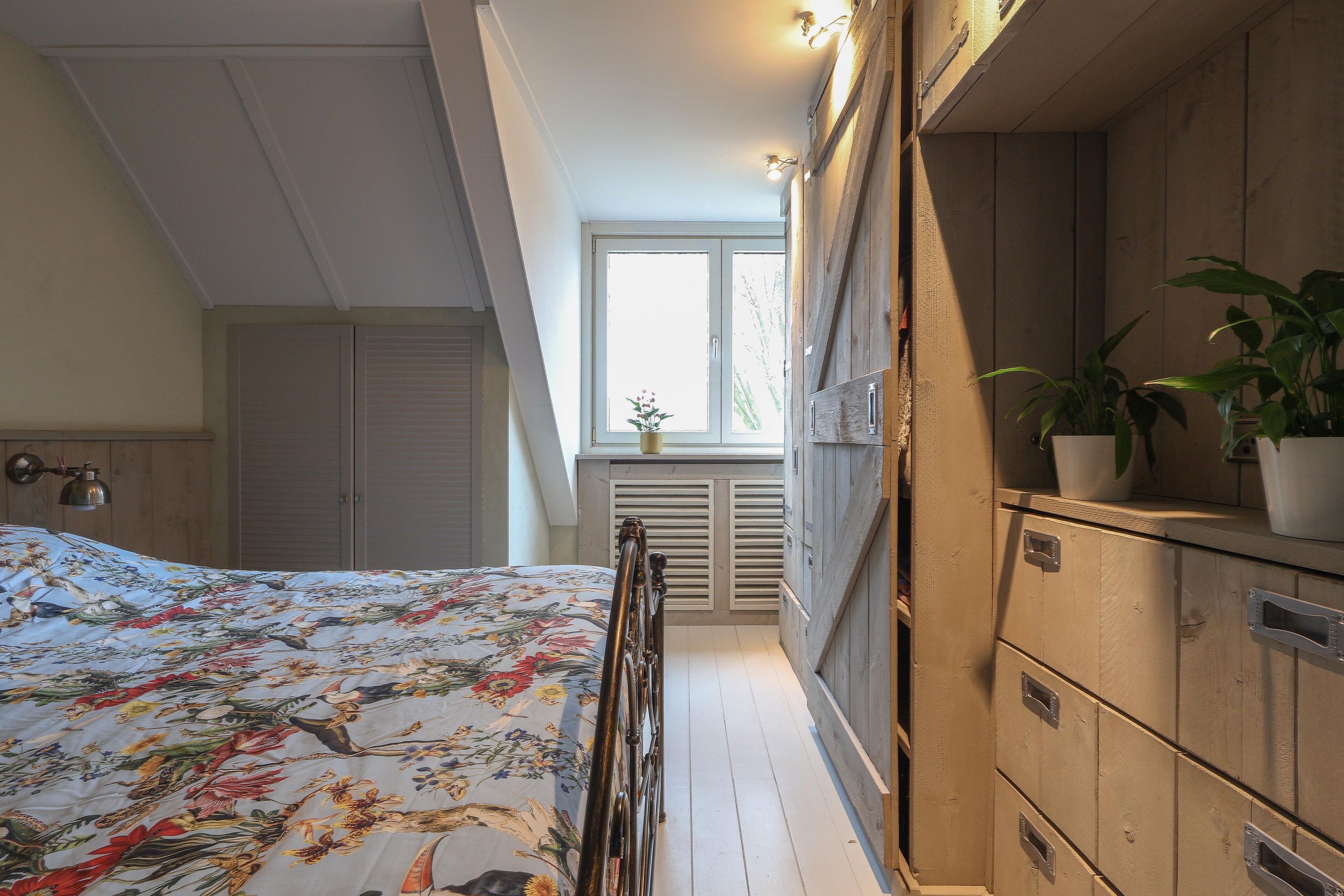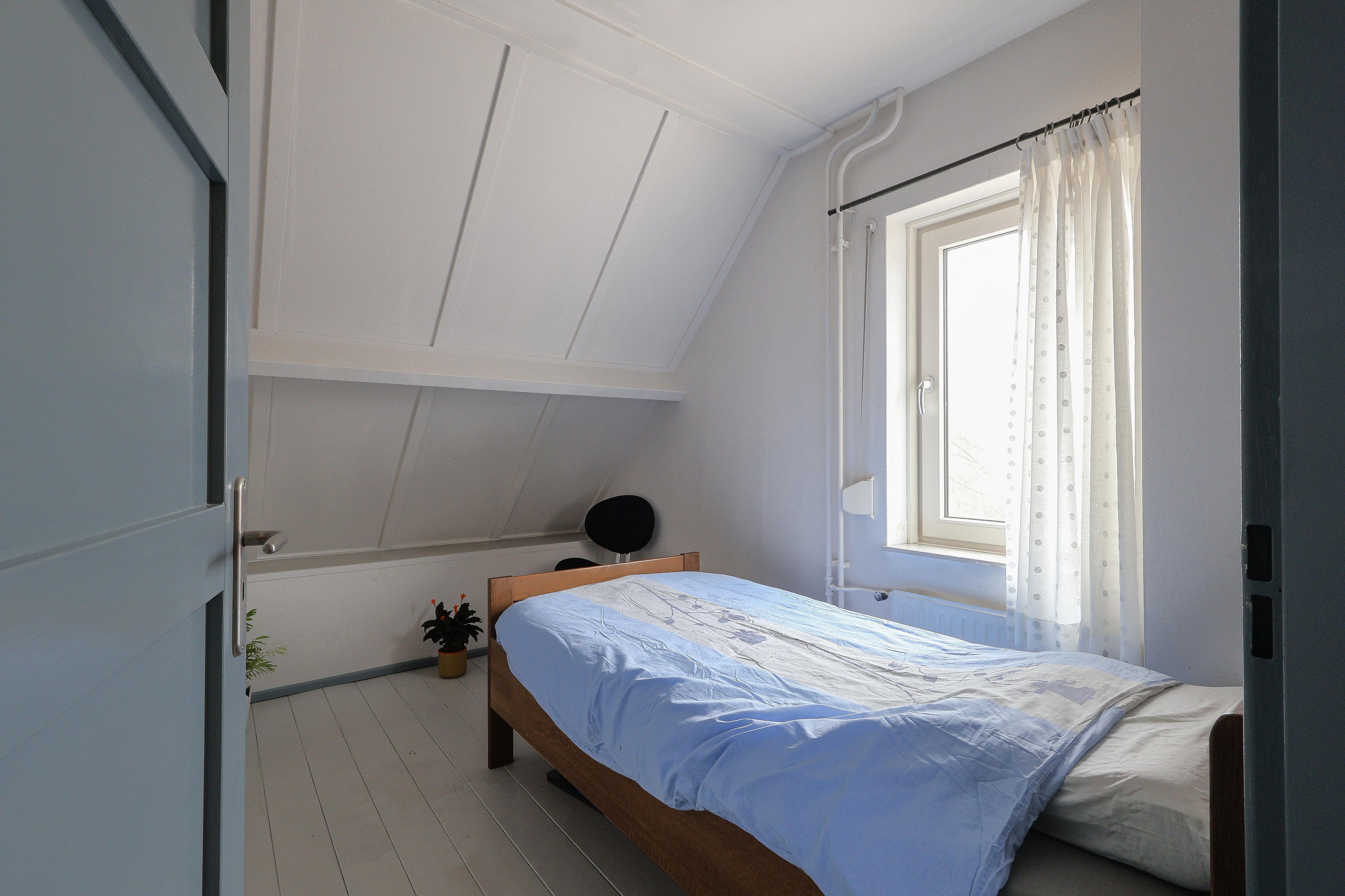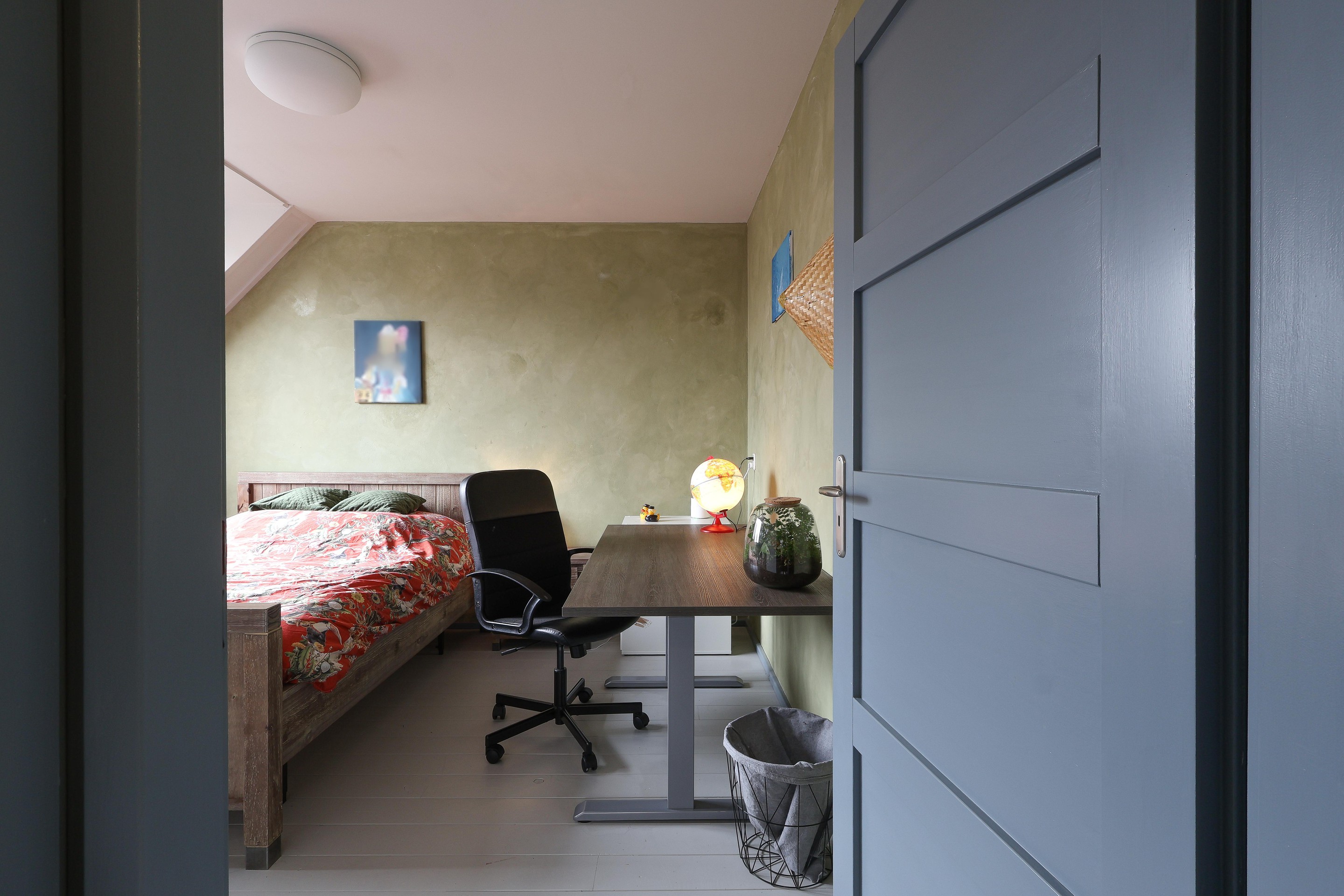 De verdieping is voorzien van twee Velux dakramen met horren, plissé gordijnen en verduistering.