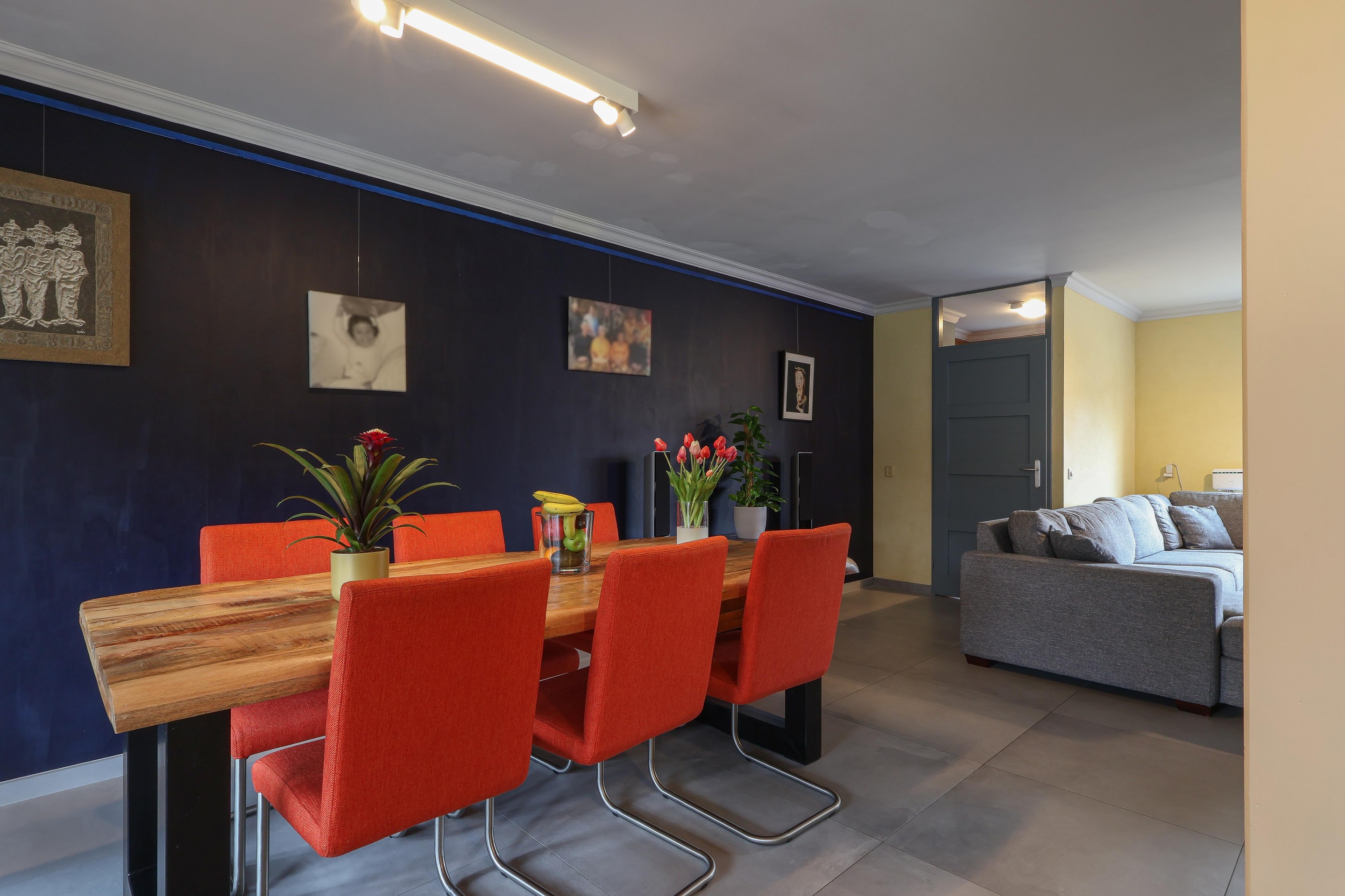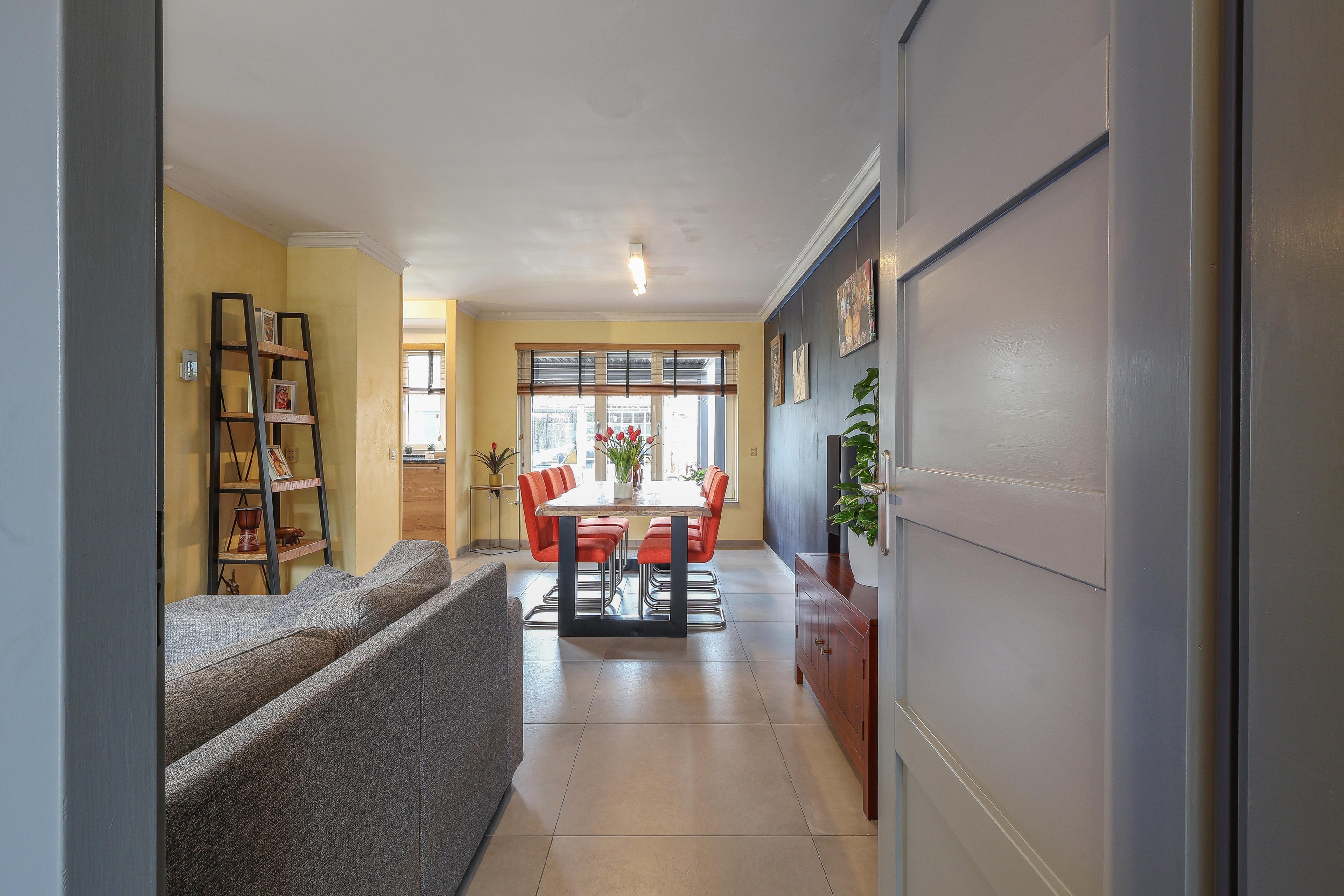 De ruime woonkamer heeft een zithoek aan de straatzijde. In het portaal bevinden zich de moderne toiletruimte en de opgaande trap. Aan de achterzijde ligt de eethoek met een vrije doorloop naar de keuken (2024), voorzien van een hardstenen werkblad, koffiecorner, koel-vriescombinatie, bar met uitzicht op de tuin en veel kastruimte.