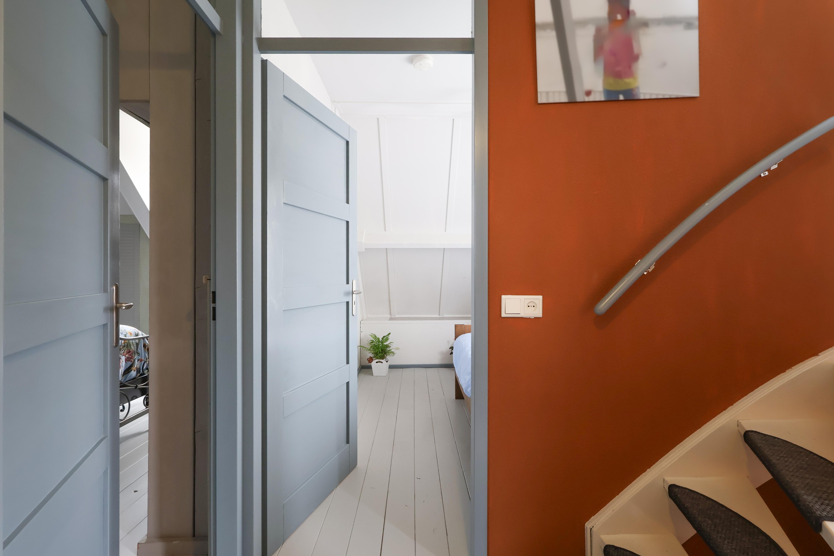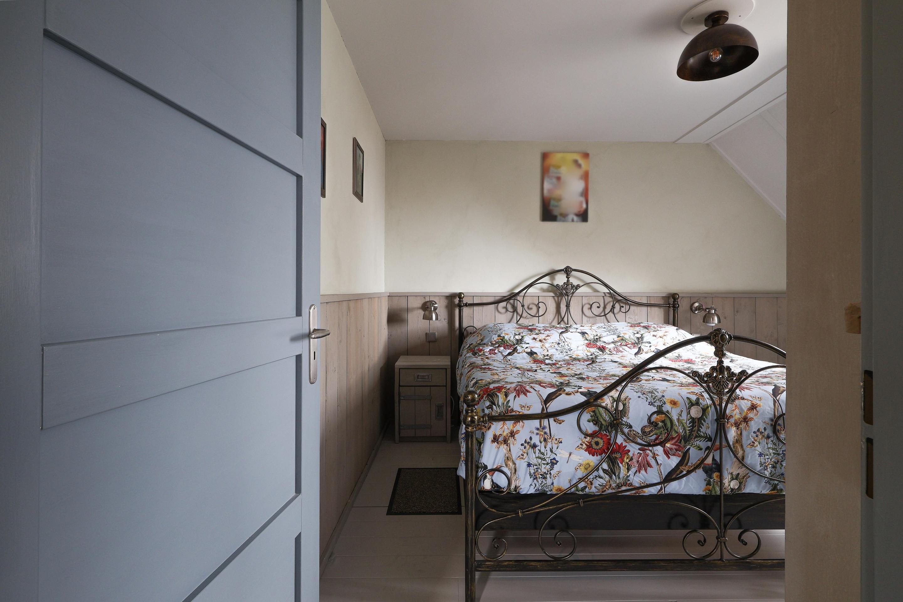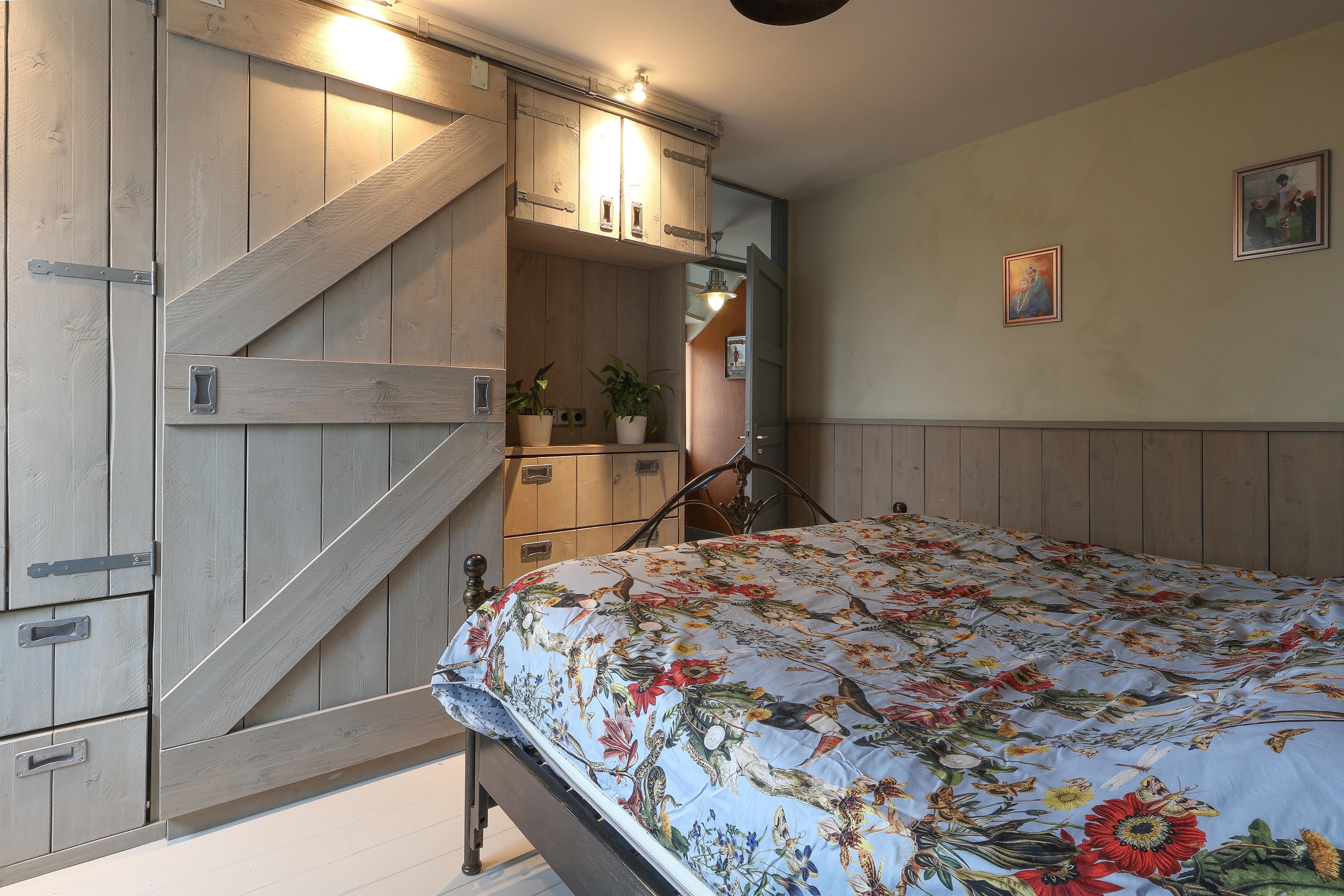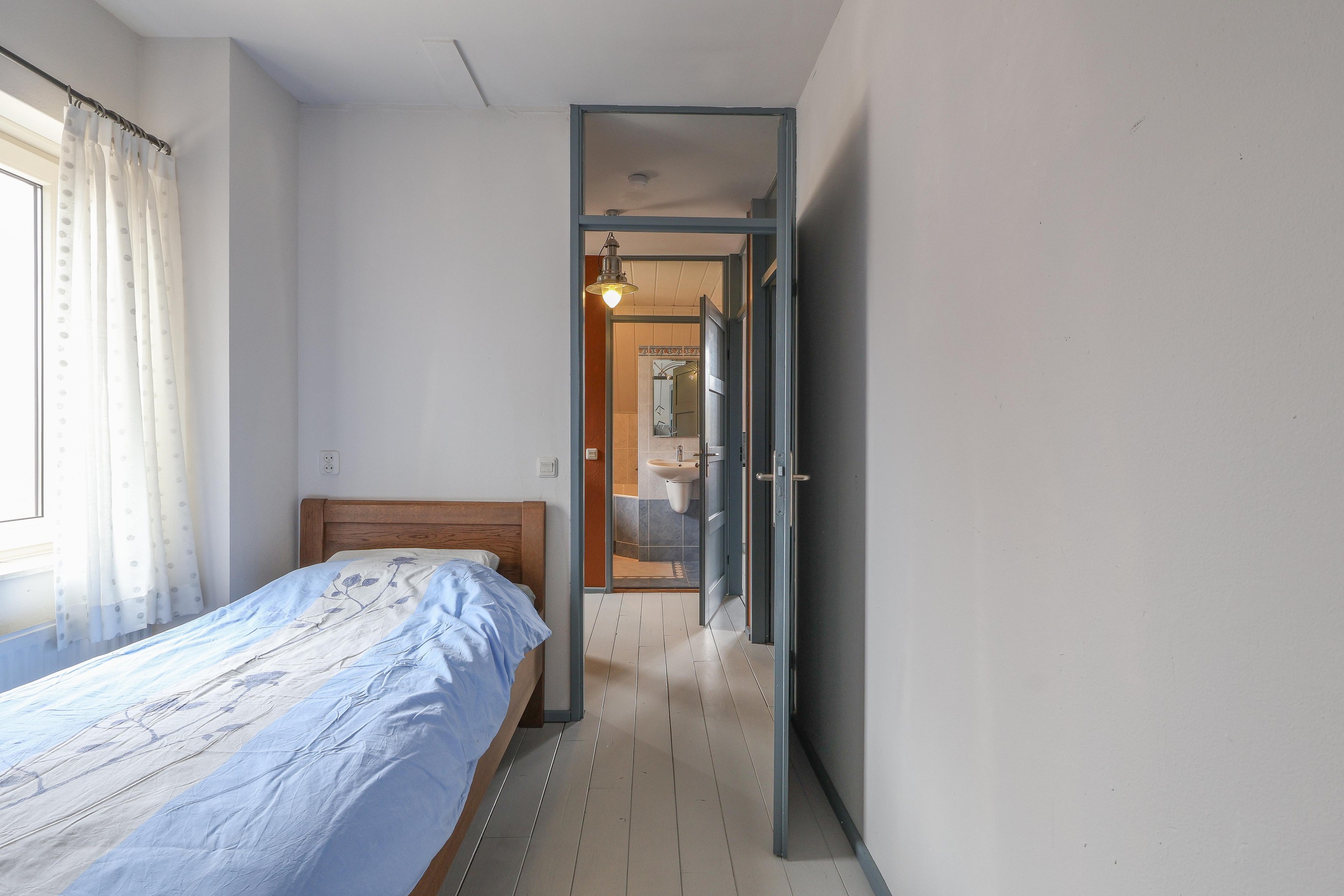 Eerste verdieping Ruime en lichte overloop met drie slaapkamers, waarvan de ouderslaapkamer is voorzien van lambrisering en een royaal wandmeubel.