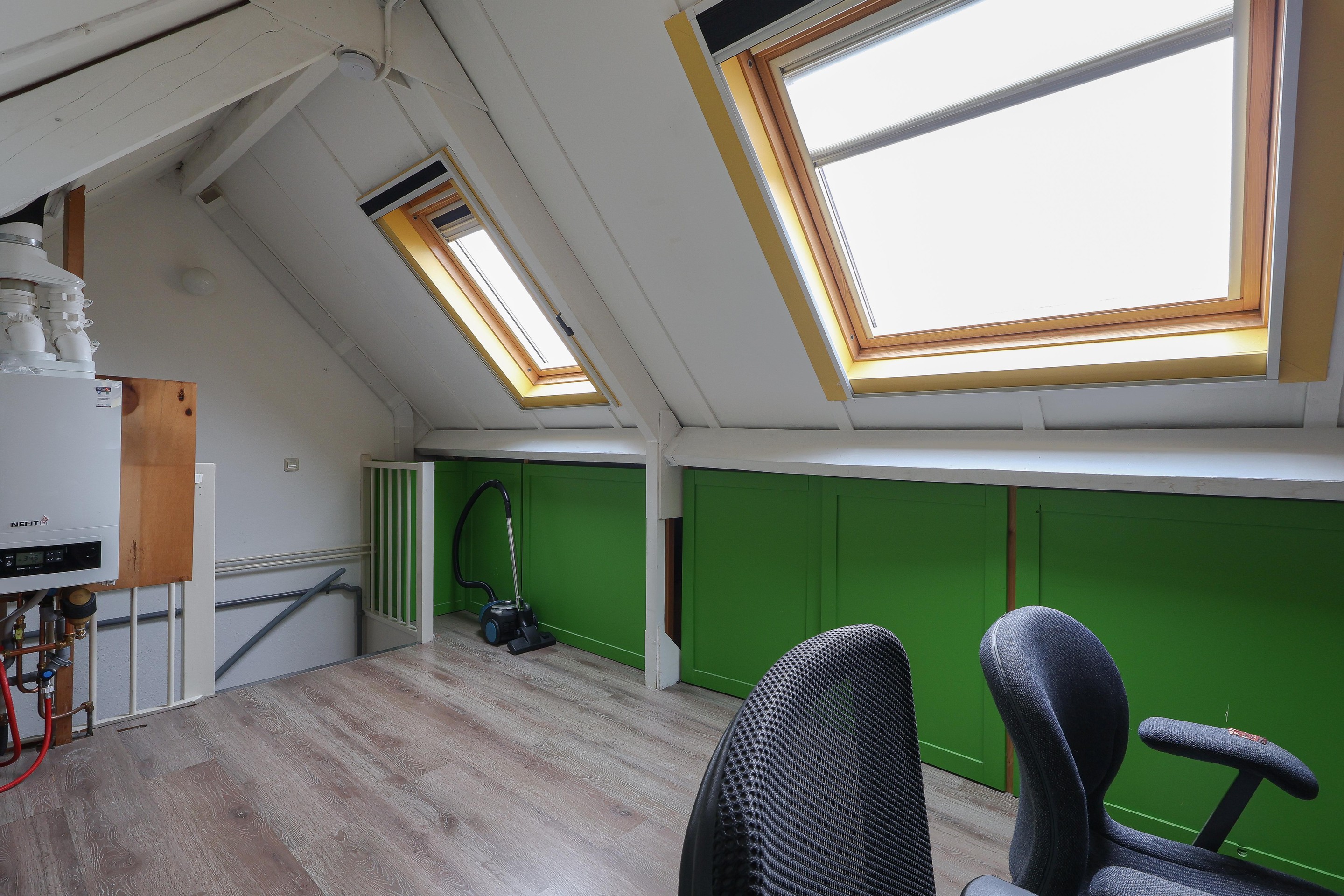 Tweede verdieping Ruime multifunctionele zolderverdieping, geschikt als extra slaapkamer of werkruimte, met bergruimte onder de schuine kap.