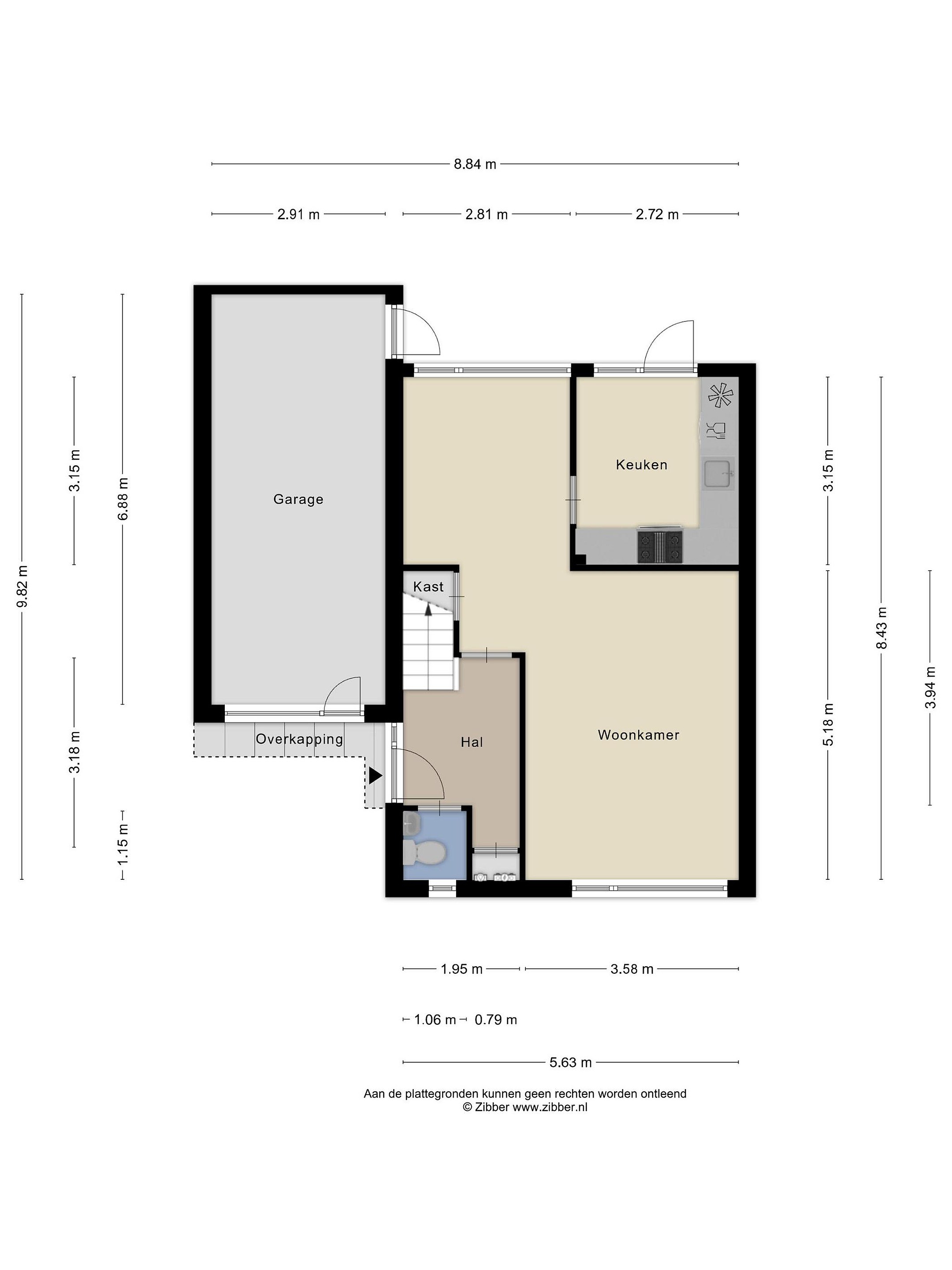 Begane grond Via de voordeur kom je in een ruime hal met meterkast, toilet en trapopgang naar de 1e verdieping.