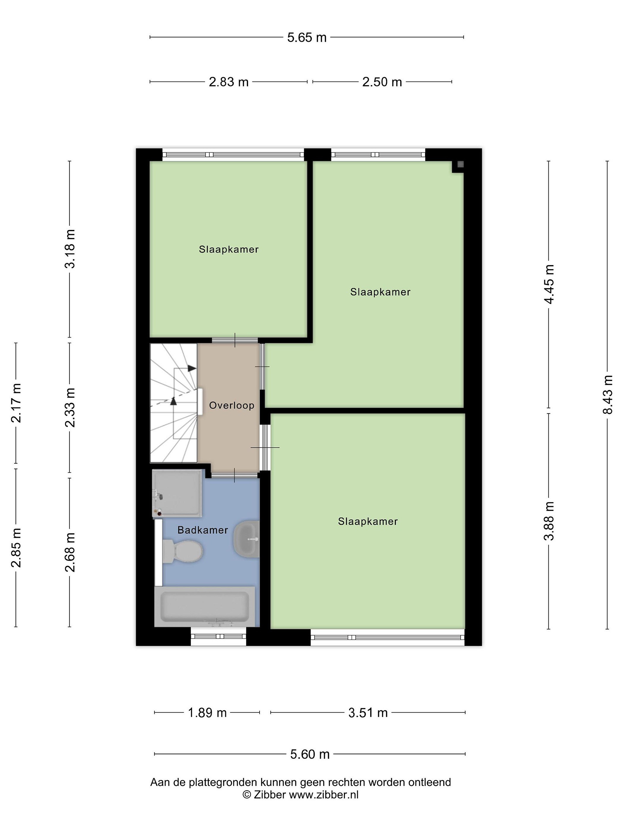 Eerste verdieping Op de eerste verdieping bevinden zich drie goed bemeten slaapkamers en een nette badkamer.