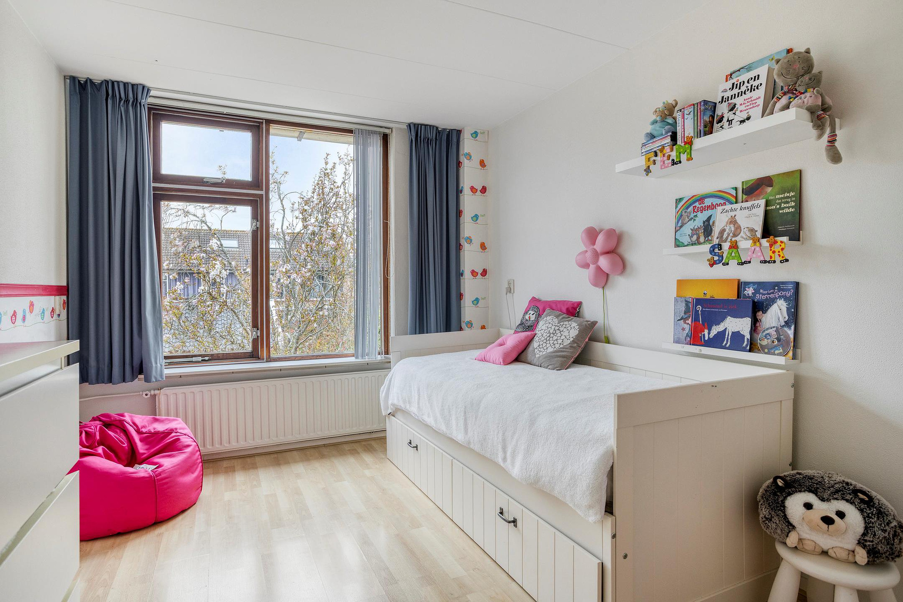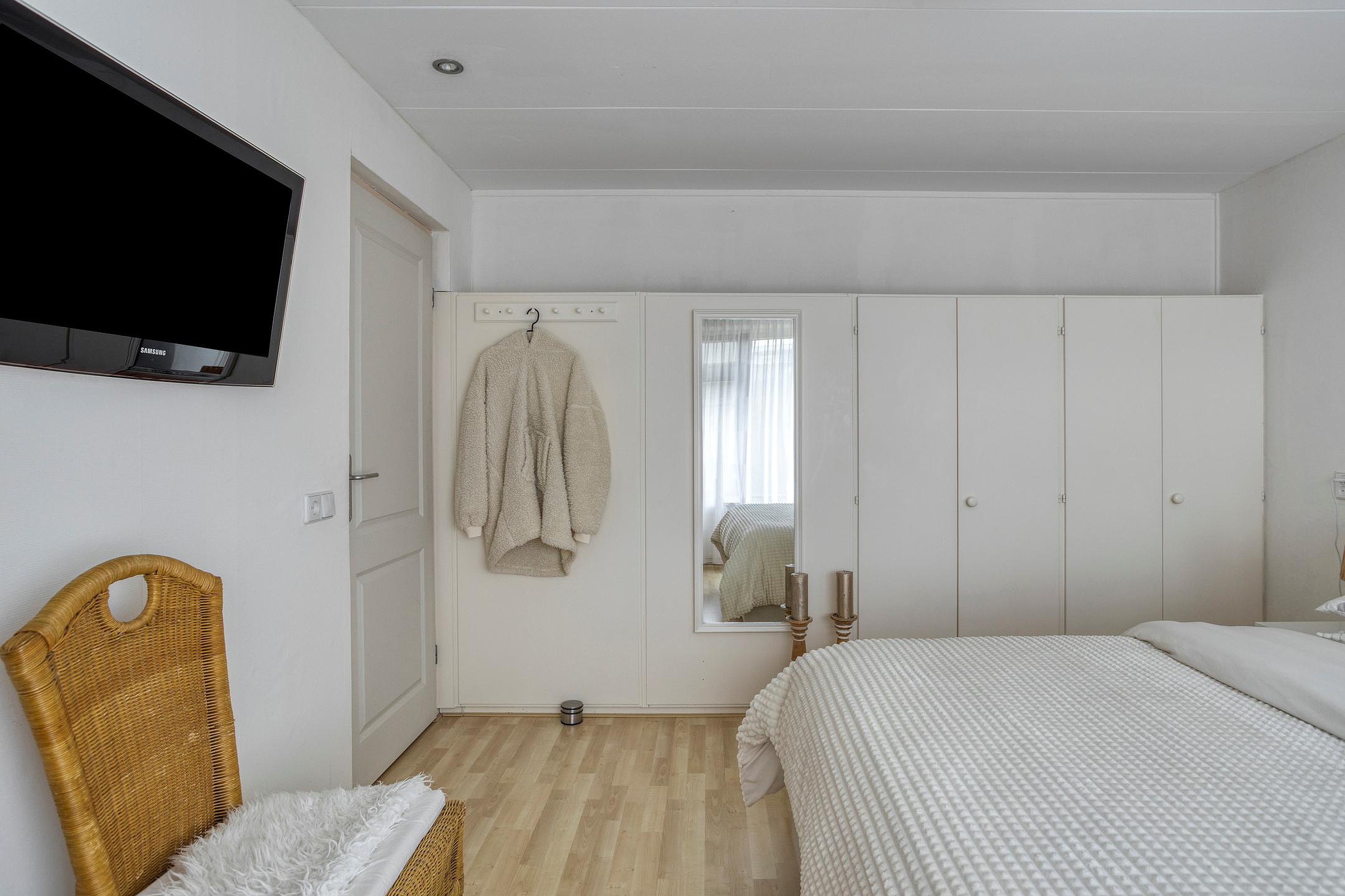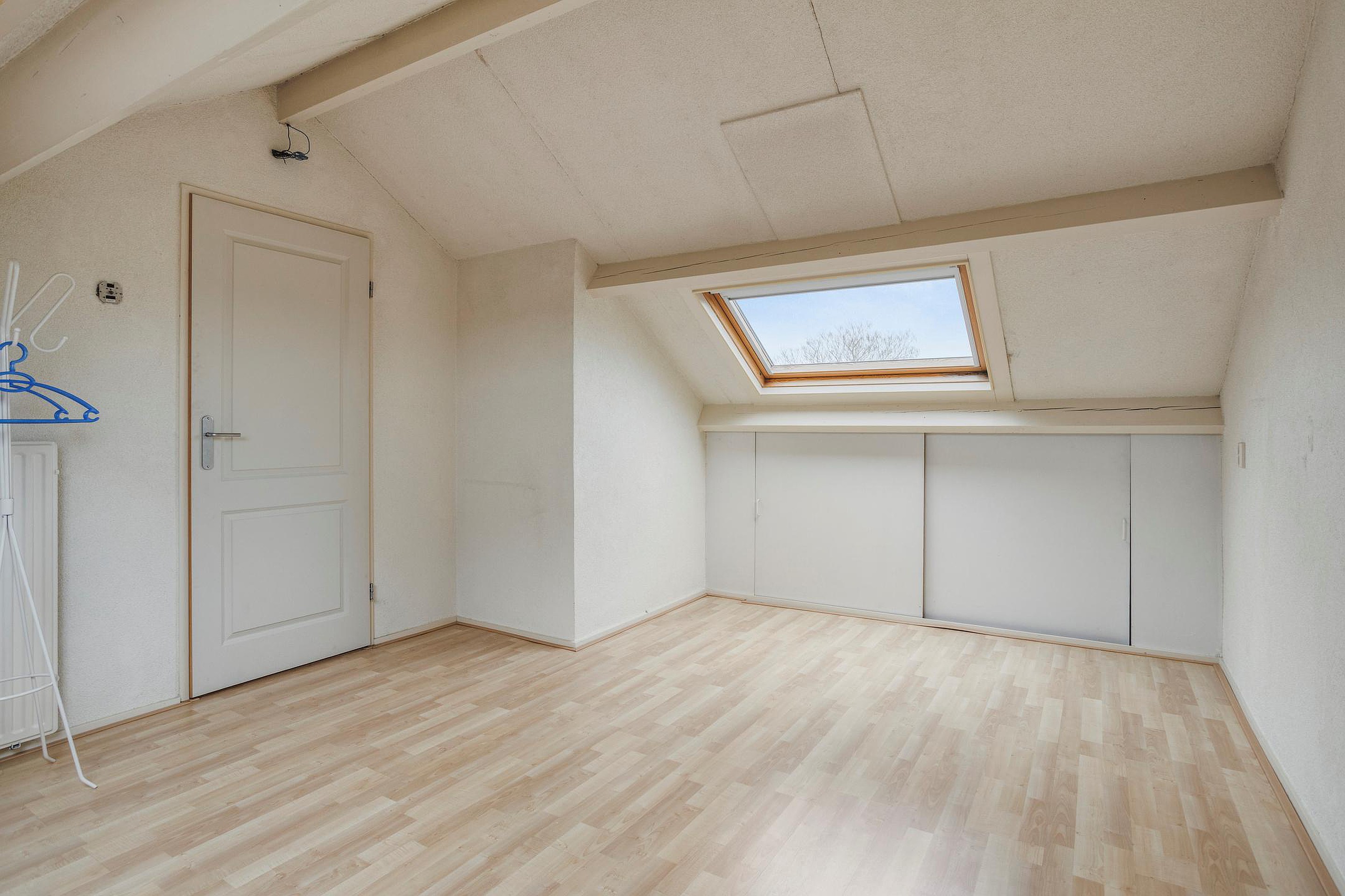 Daarnaast bevindt zich hier een ruime en lichte slaapkamer, voorzien van dakramen en bergruimte onder de schuine kanten.