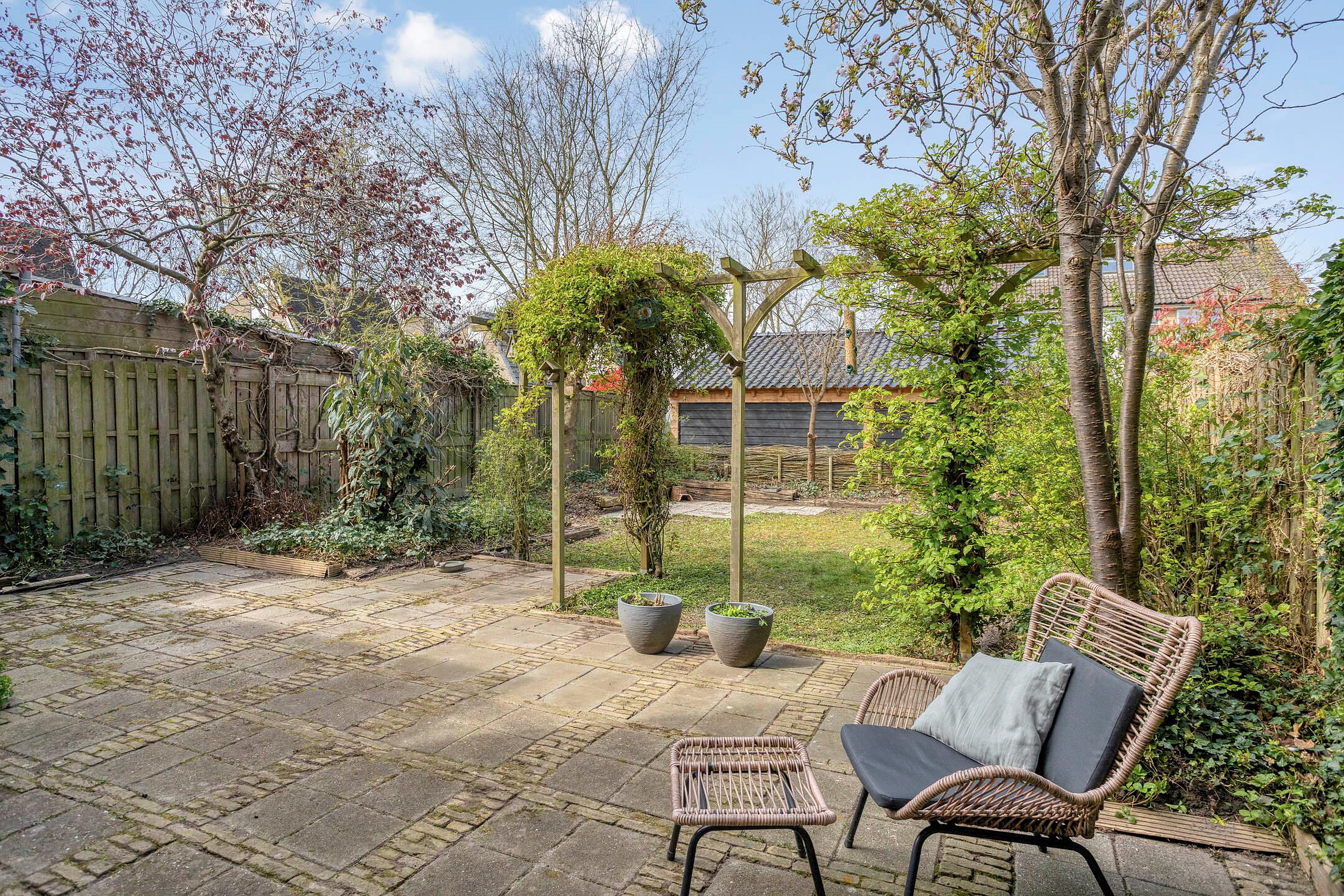 Tuin De woning beschikt over een diepe en zonnige achtertuin met voldoende privacy. Dankzij de rustige ligging aan het einde van een doodlopende straat is het hier heel prettig wonen!