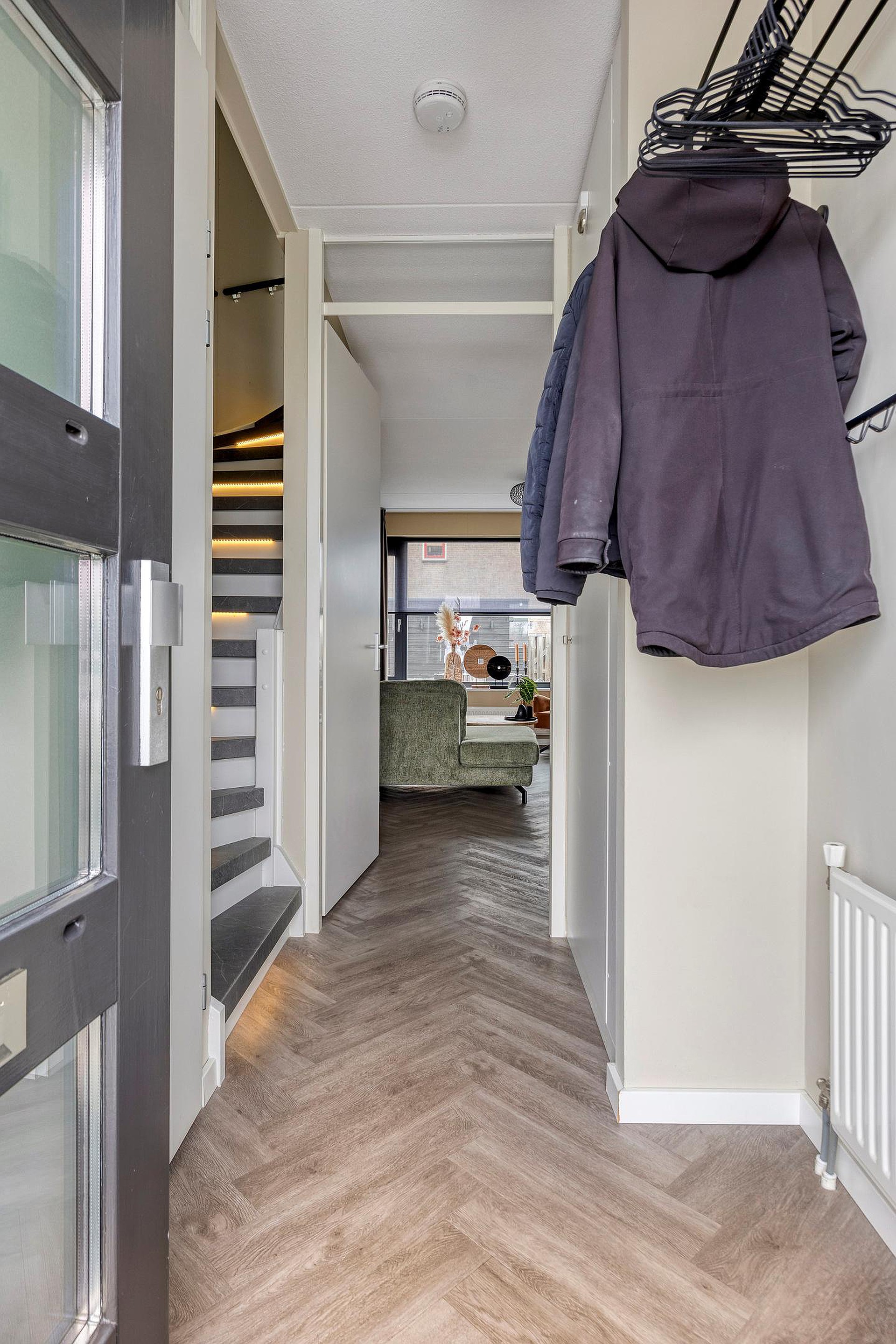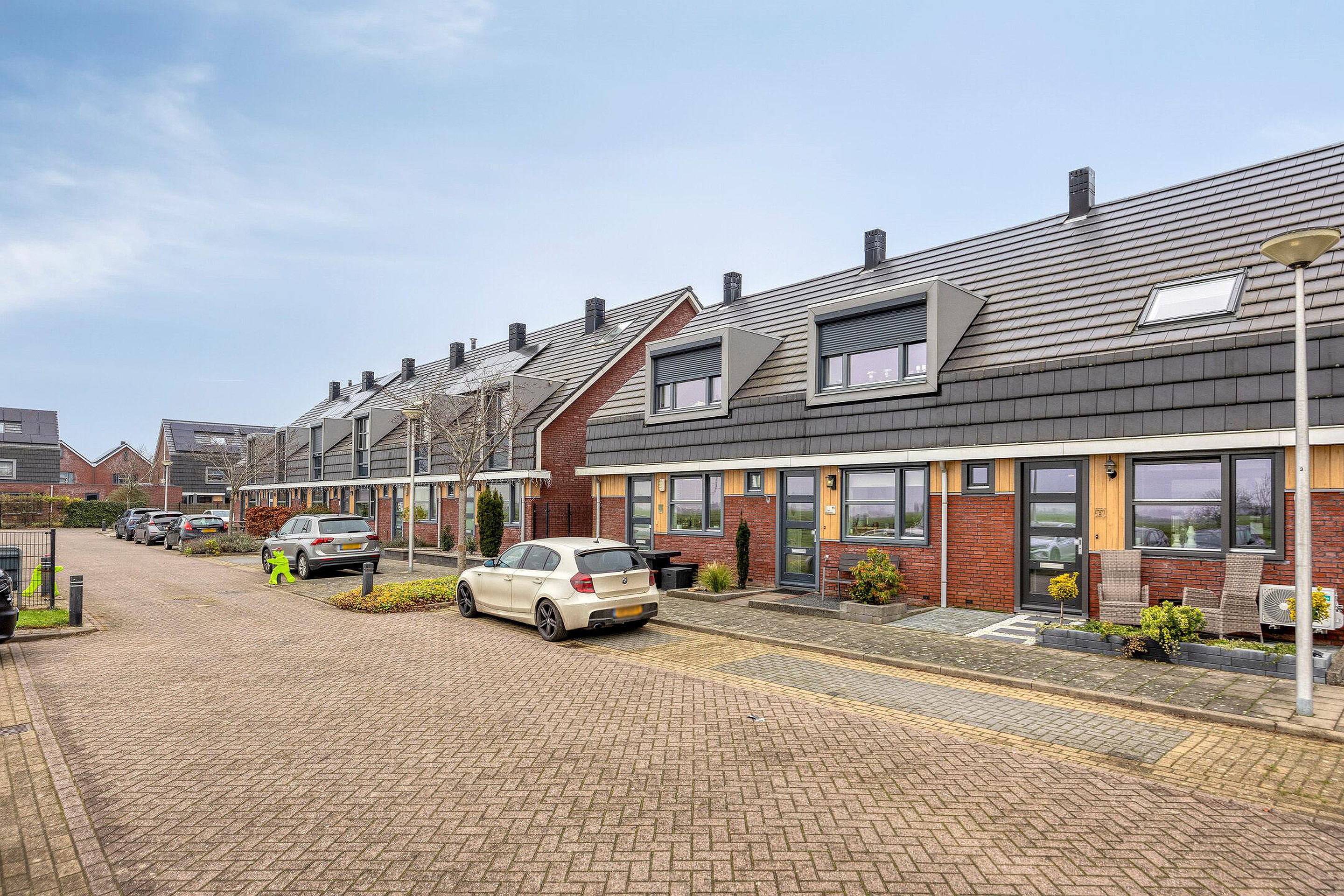 Deze mooie tussenwoning met zijn fraaie gevel ligt veilig afgescheiden van de straat door een parkeerstrook en een breed trottoir. Via de onderhoudsvriendelijke voortuin, van waar u mooi zicht heeft op de polder, komt u bij de frisse entree van de woning. Hier stapt u binnen in de lichte hal waar u plaats vindt voor de garderobe, de meterkast, een nette toiletruimte, de trap naar de verdieping en de entree naar de living.