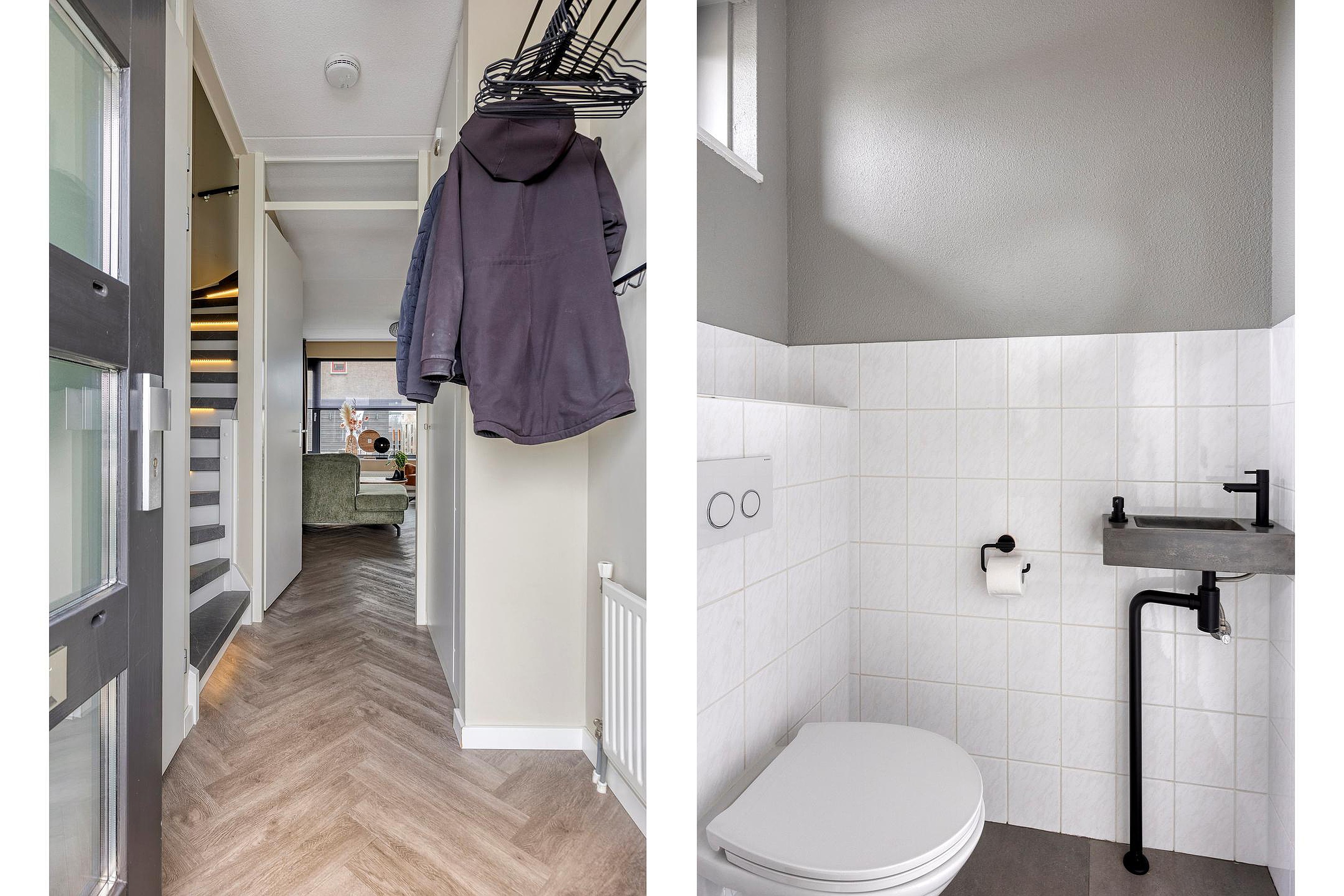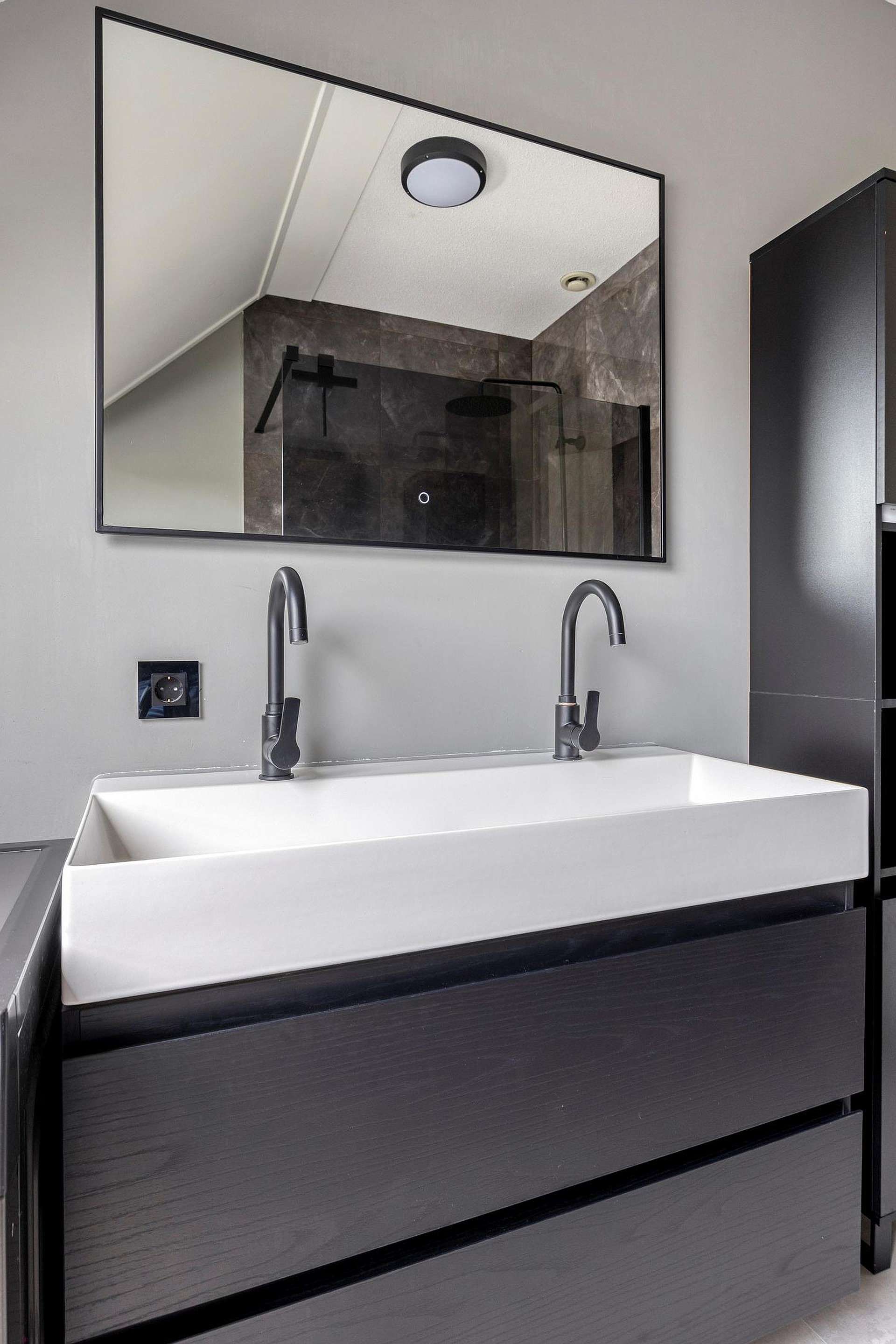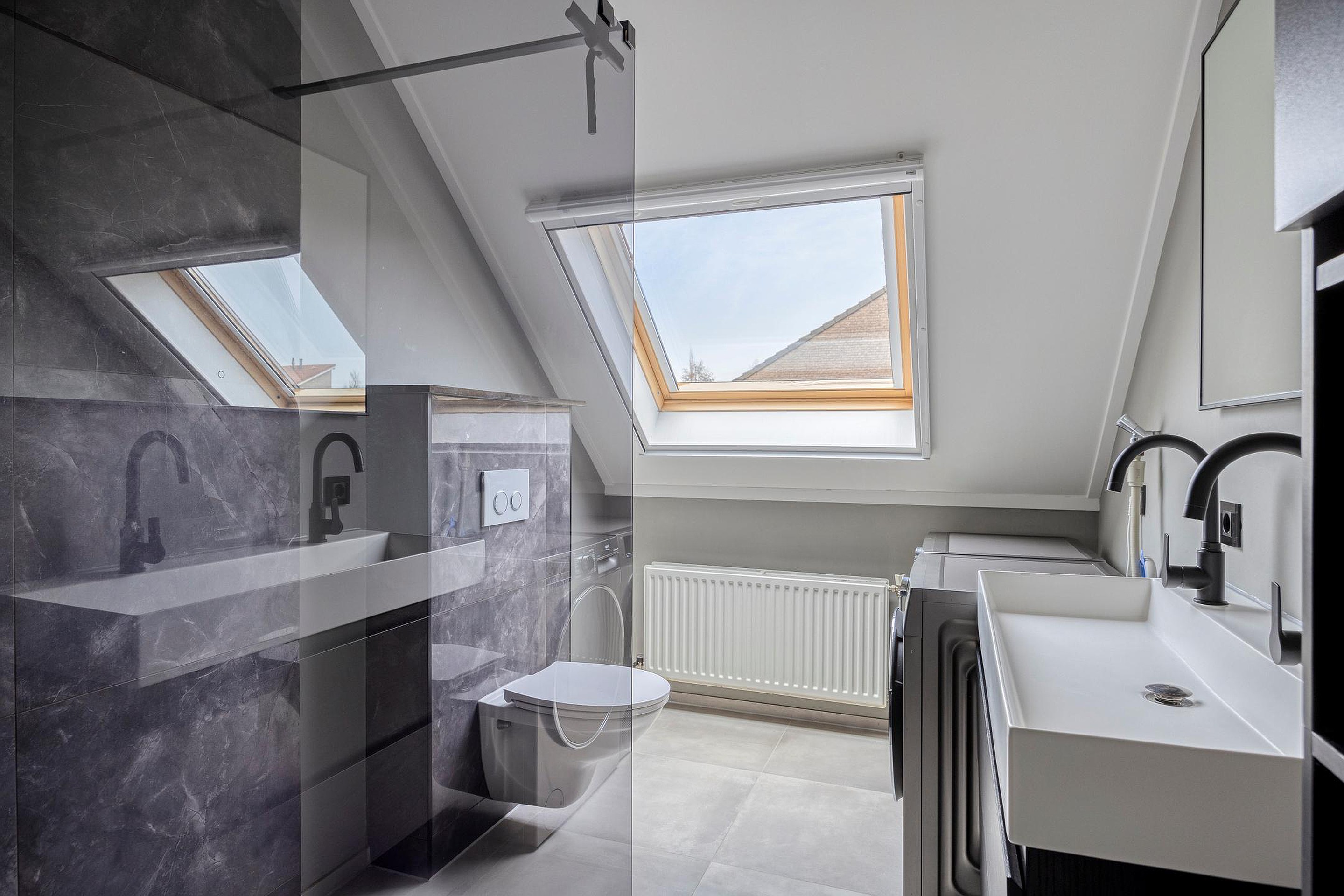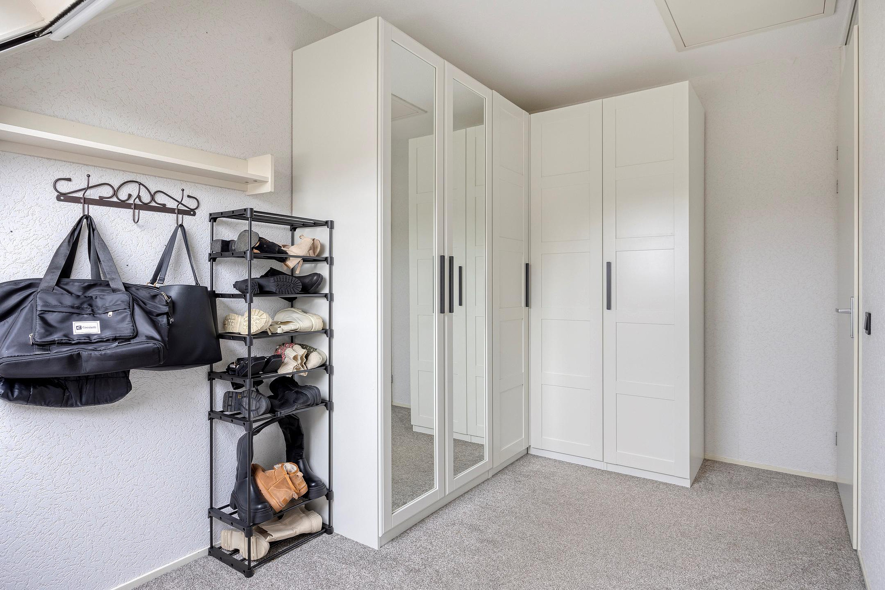 Via de vaste trap vanuit de hal komt u op de overloop op de 1e verdieping. Aangrenzend vindt u hier 2 slaapkamers en de badkamer. Beide slaapkamers zijn royaal van formaat en hebben een fijne lichtinval door de grote ramen. De kamers zijn netjes afgewerkt met strakke wanden en plafonds en voorzien van heerlijk zachte vloerbedekking. De grootste slaapkamer is tevens voorzien van een praktische inbouwkast en een airco-systeem welke de gehele verdieping koel houdt in de zomermaanden. Vanuit de andere slaapkamer is er via een luik met vlizotrap toegang naar de ruime bergzolder waar u tevens de cv-opstelling vindt. De royale badkamer uit 2021 is luxe afgewerkt in een moderne stijl met strakke wanden en plafonds en voorzien van mooie wand- en vloertegels. U heeft hier beschikking over een grote doucheruimte met glazen wand, een dubbele wastafel met bergkast en spiegel, een hangend toilet, een groot kantelraam met zonwering, een radiator en tevens vindt u hier de aansluitingen voor het witgoed.