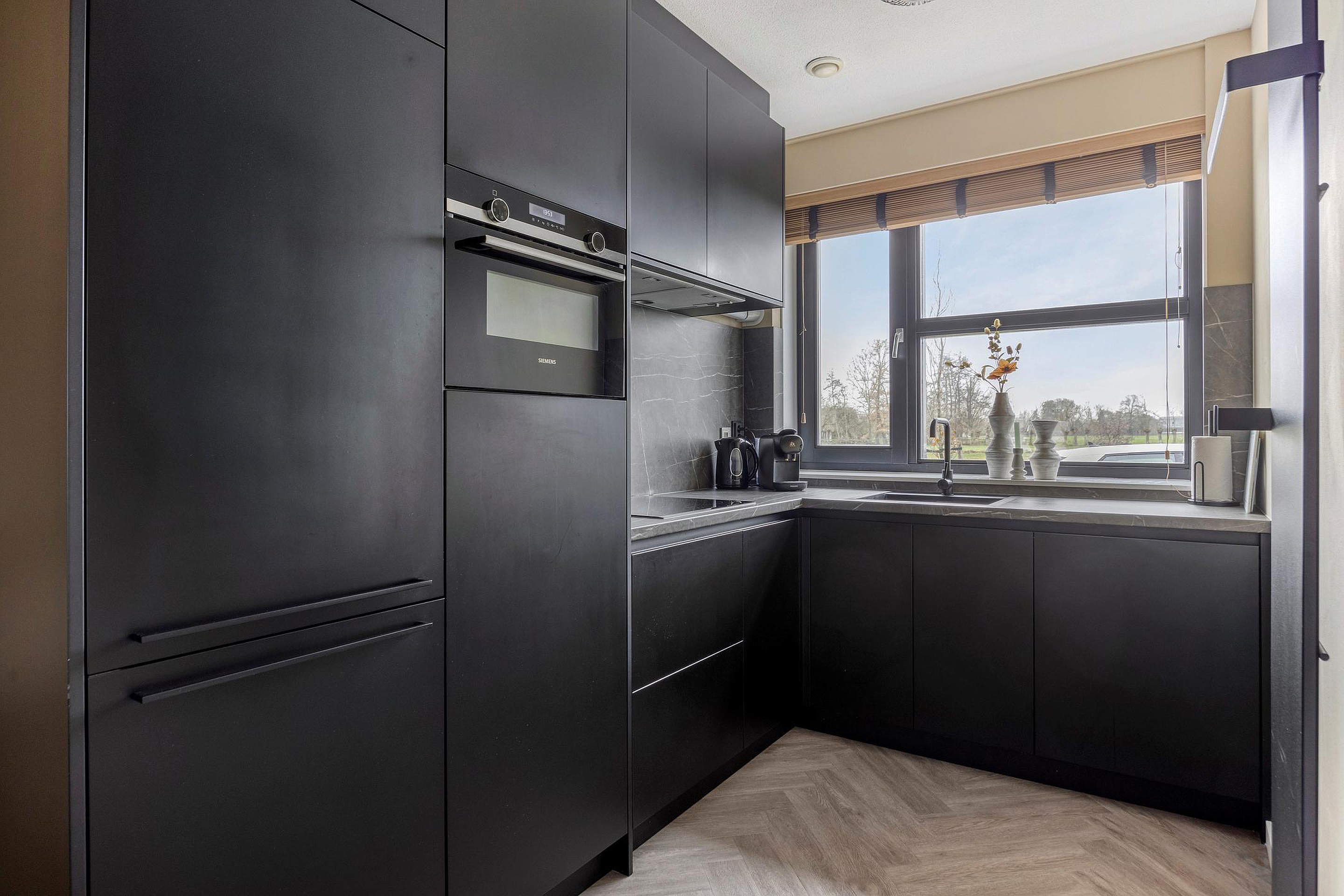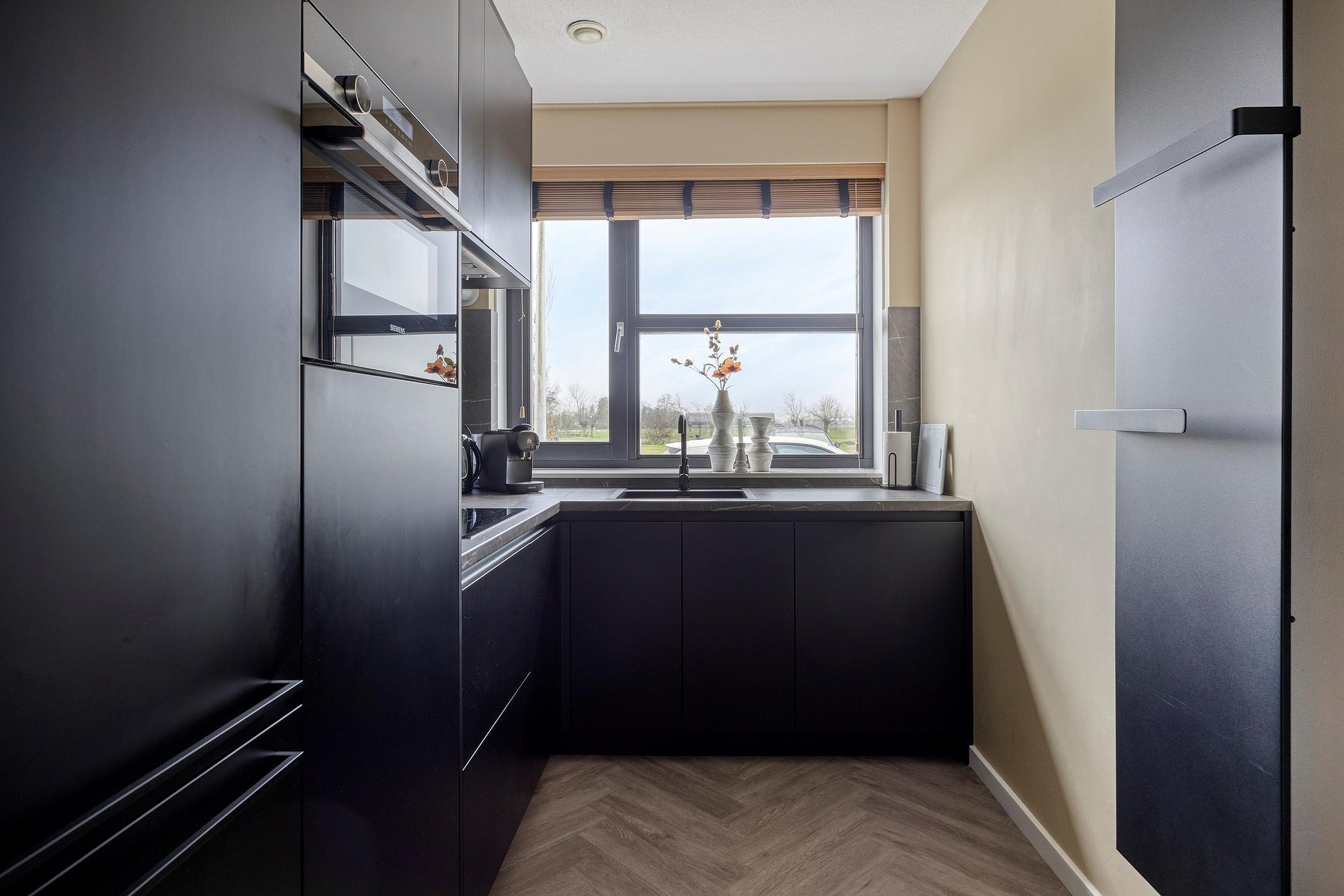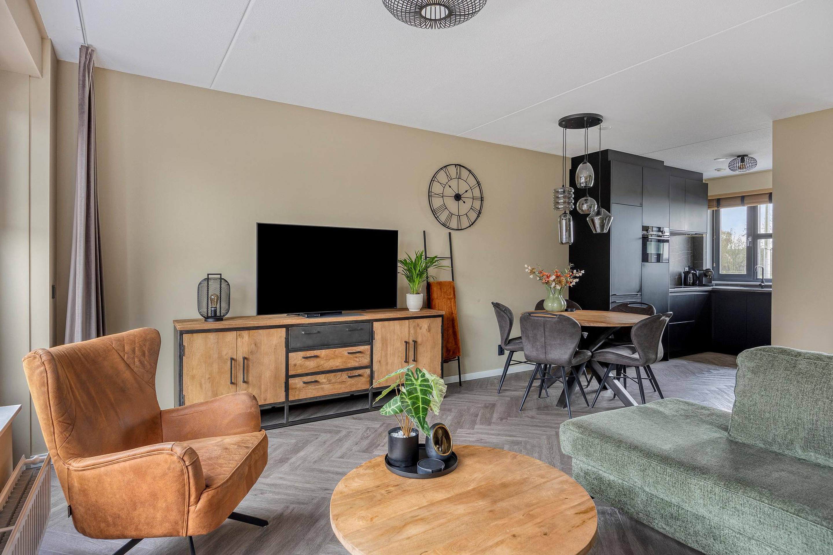De ruime woonkamer is heerlijk licht door de grote ramen aan weerszijden van de woning en de glazen deur naar de achtertuin. De living is in 2021 nog volledig gemoderniseerd en voorzien van strakke wanden en plafonds en een mooie PVC-vloer. Er is ruim plaats voor een grote lounge aan de achterzijde waar u zicht heeft op de achtertuin. Aan de voorzijde vindt u de strakke keuken uit 2021. Deze is uitgevoerd in een moderne robuuste stijl met luxe keukenapparatuur van Siemens, een mooi werkblad en veel werk- en bergruimte. Voor nog meer bergruimte kunt u terecht in de grote kast onder de trap. Naast de keuken is er plaats voor een grote tafel om gezellig met familie en vrienden te kunnen eten.