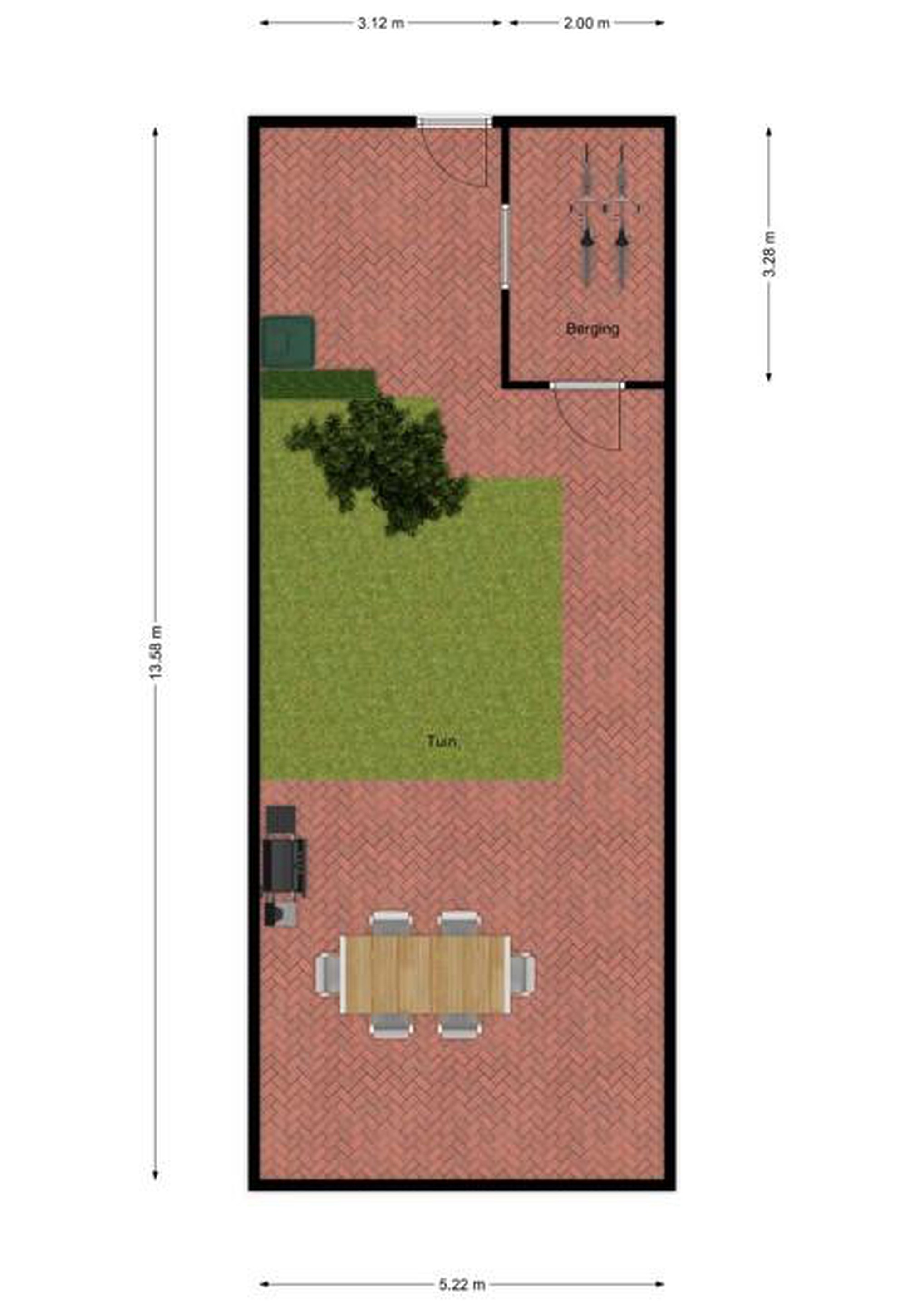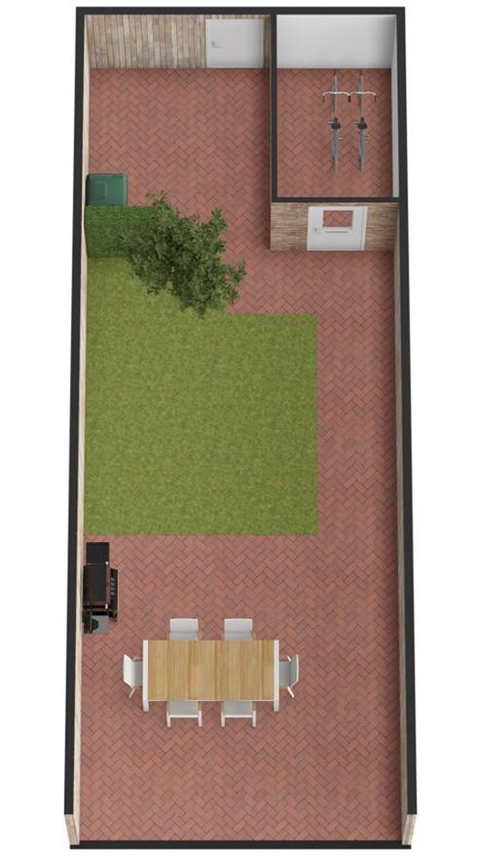 Tuin De zonnige tuin welke op het noorden gesitueerd is, is voorzien van sierbestrating, buitenverlichting, stroomvoorziening en achterom. De tuin biedt veel privacy doordat deze vrij is gelegen aan de achterzijde;